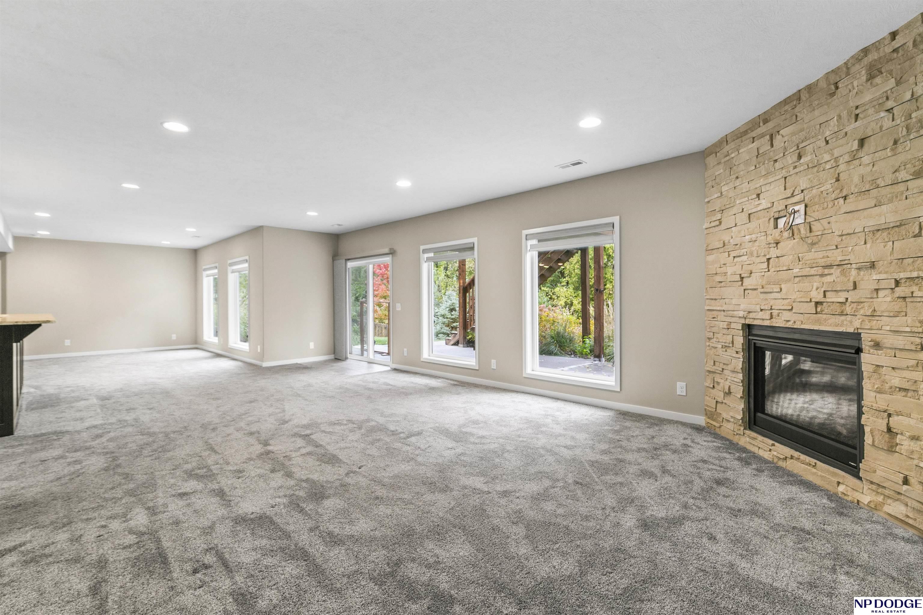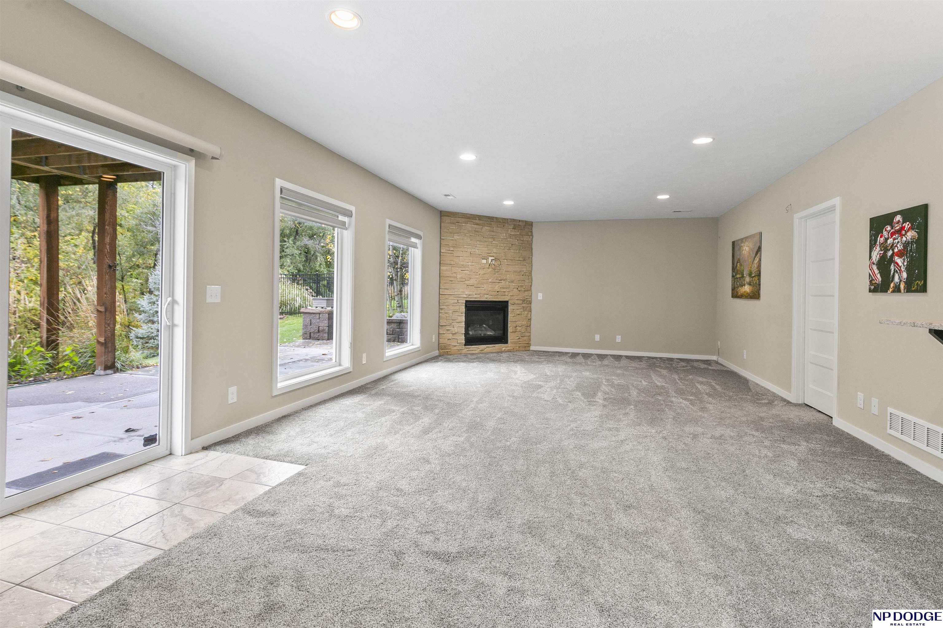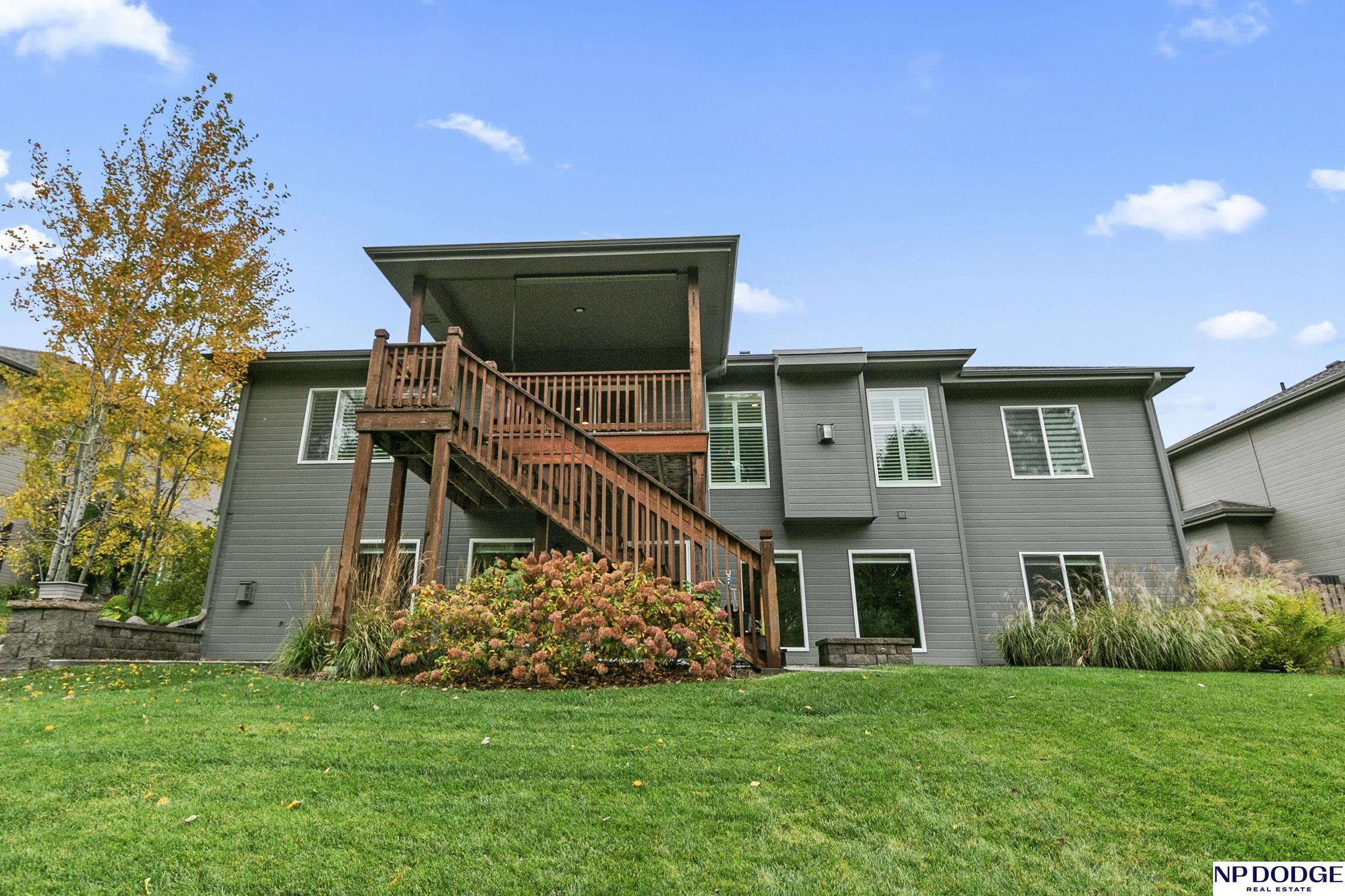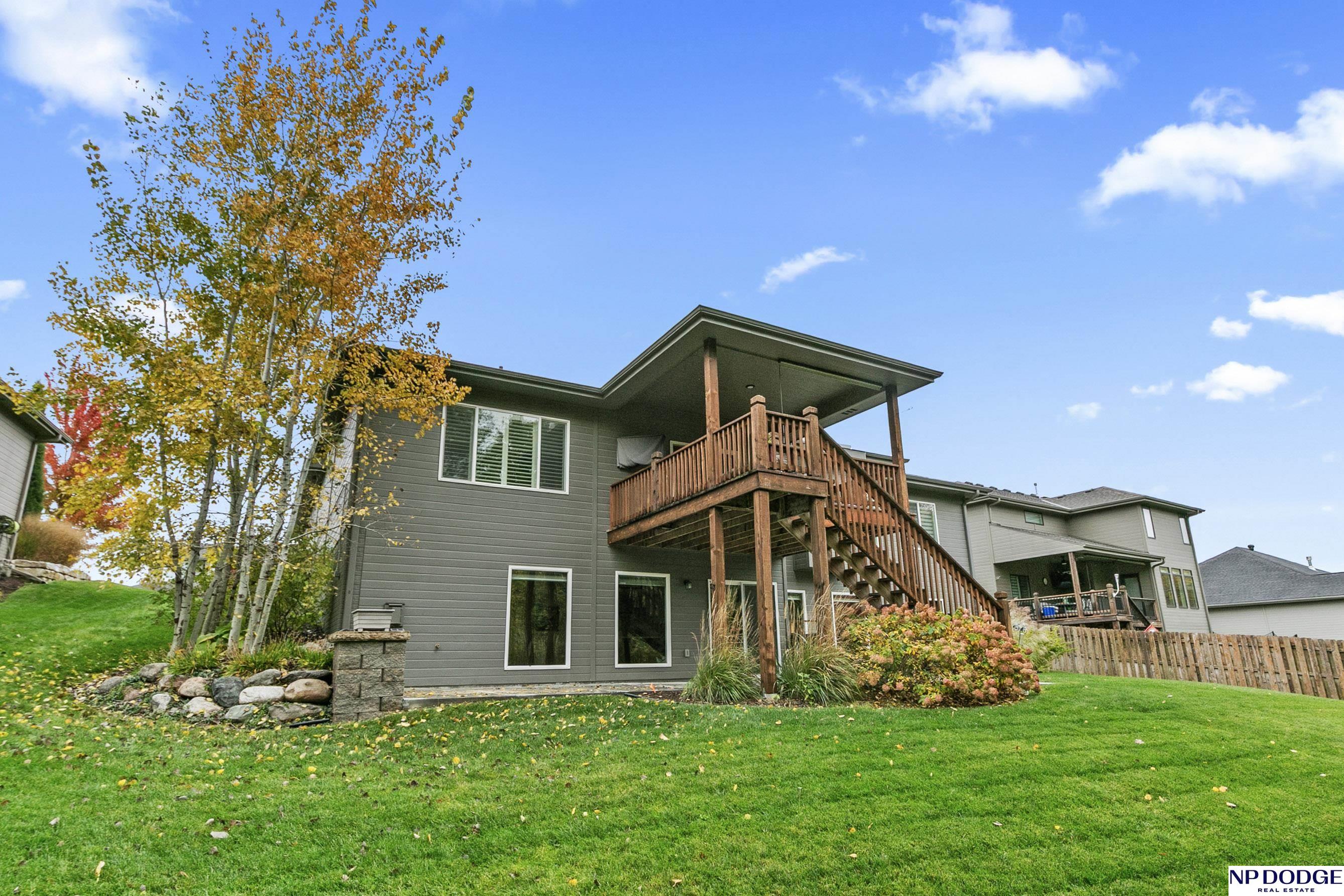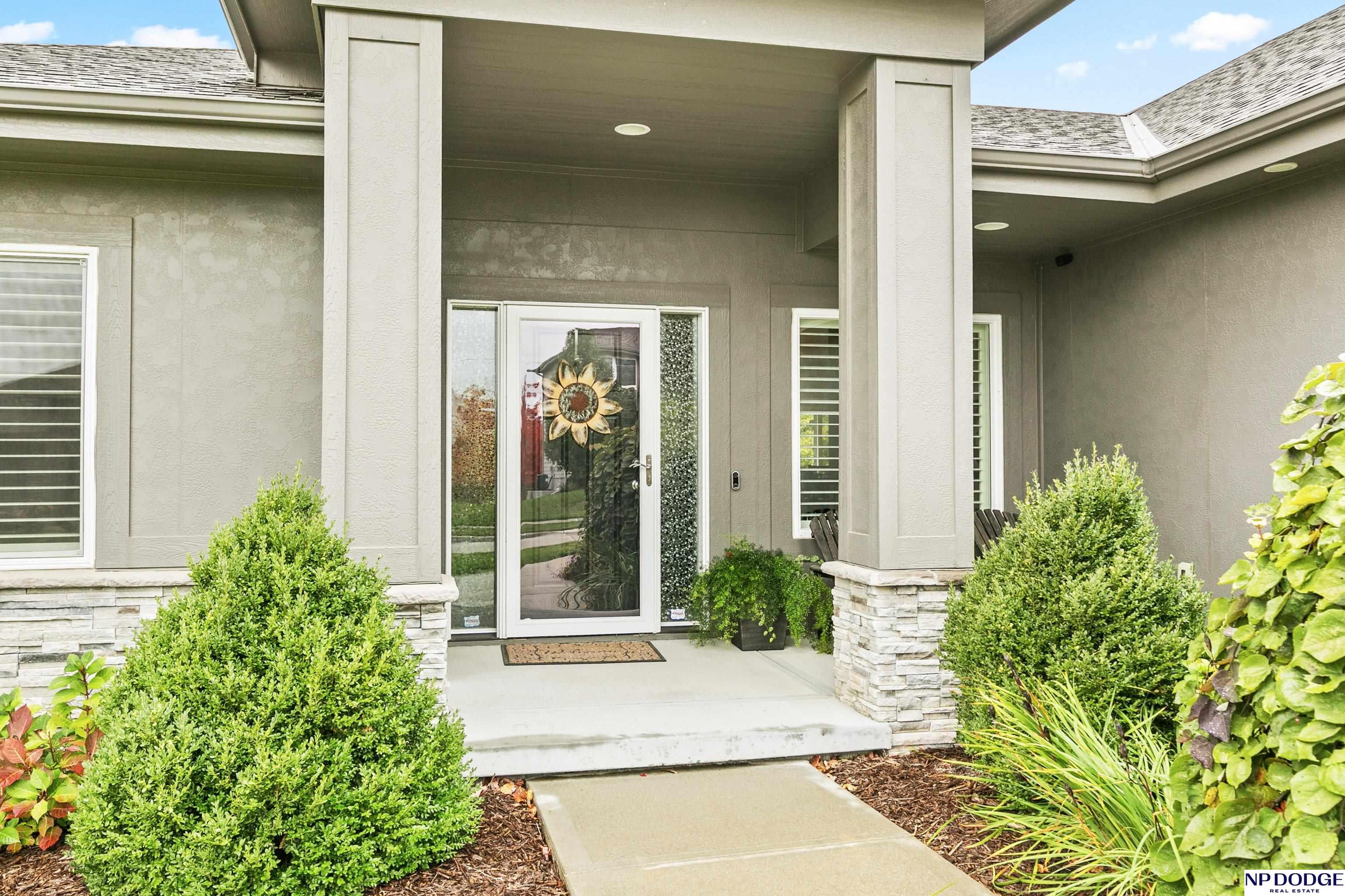 Wonderful ranch on a premium lot in Blondo Ridges. You'll rule out new construction after you tour this like-new home on one of the best lots in the area. Very versatile floorplan with split bedrooms on the main floor and an open concept with stylish colors and finishes. Primary suite overlooks the treed back yard with large windows and features a walk-in shower and large closet passing through to the laundry area/drop zone. Expansive, finished lower level has two additional bedrooms, bar area and 2nd stone fireplace. Walk out to the patio area that has been expanded as well as enhanced with a relaxing fire pit where you can entertain your guests or just enjoy some peace and quiet. Professional grade landscaping and garage epoxy, smart lawn irrigation system and more. Your next home awaits in Elkhorn North.