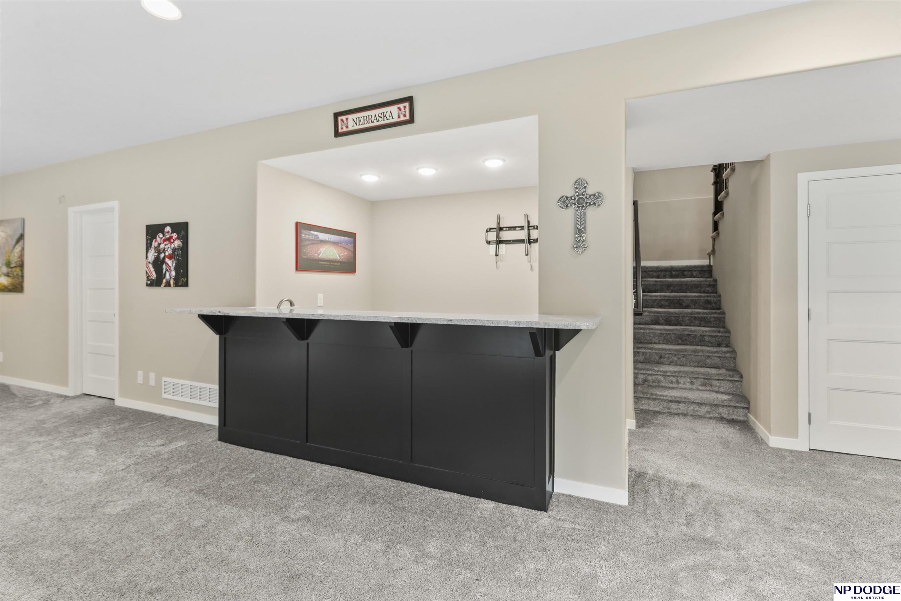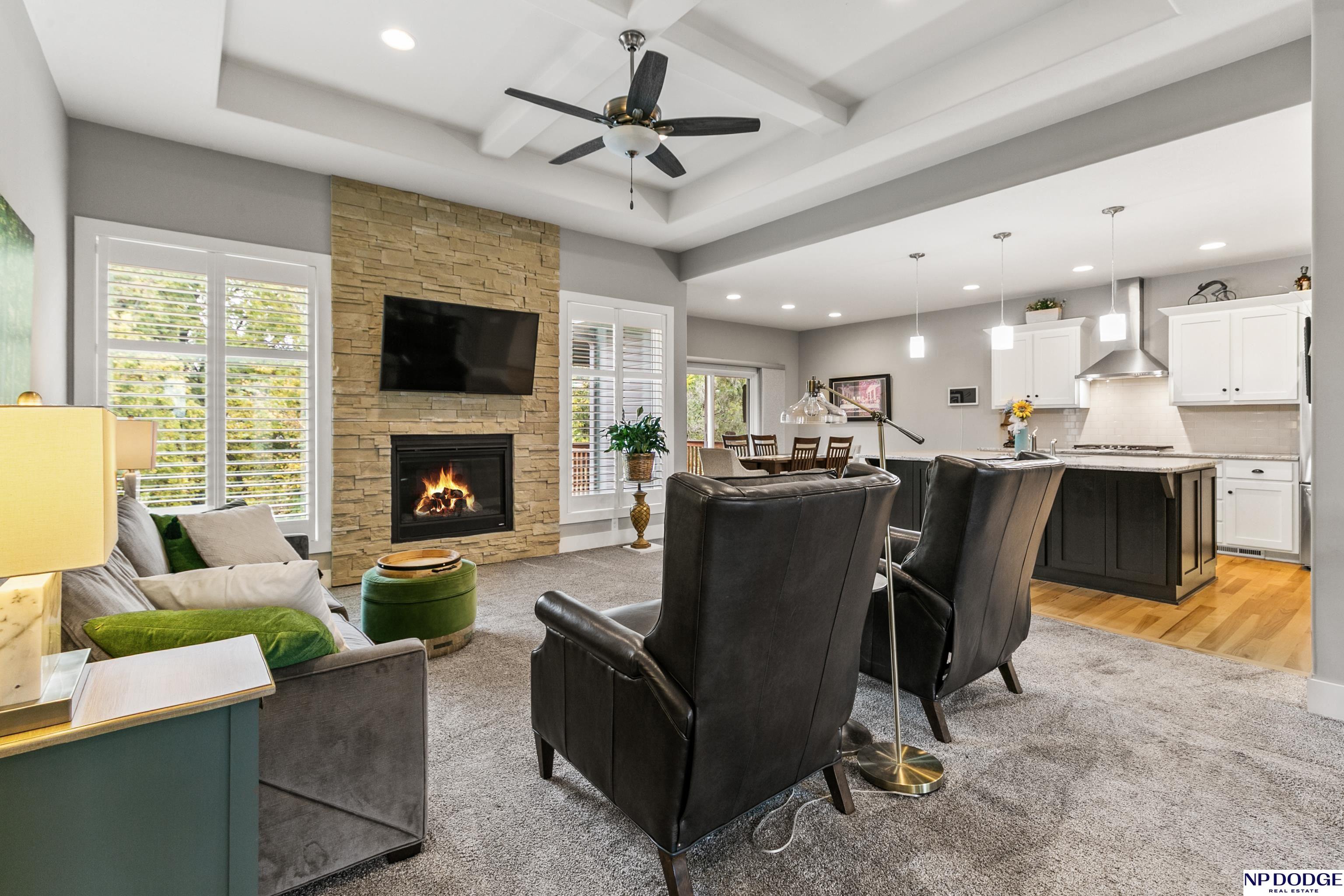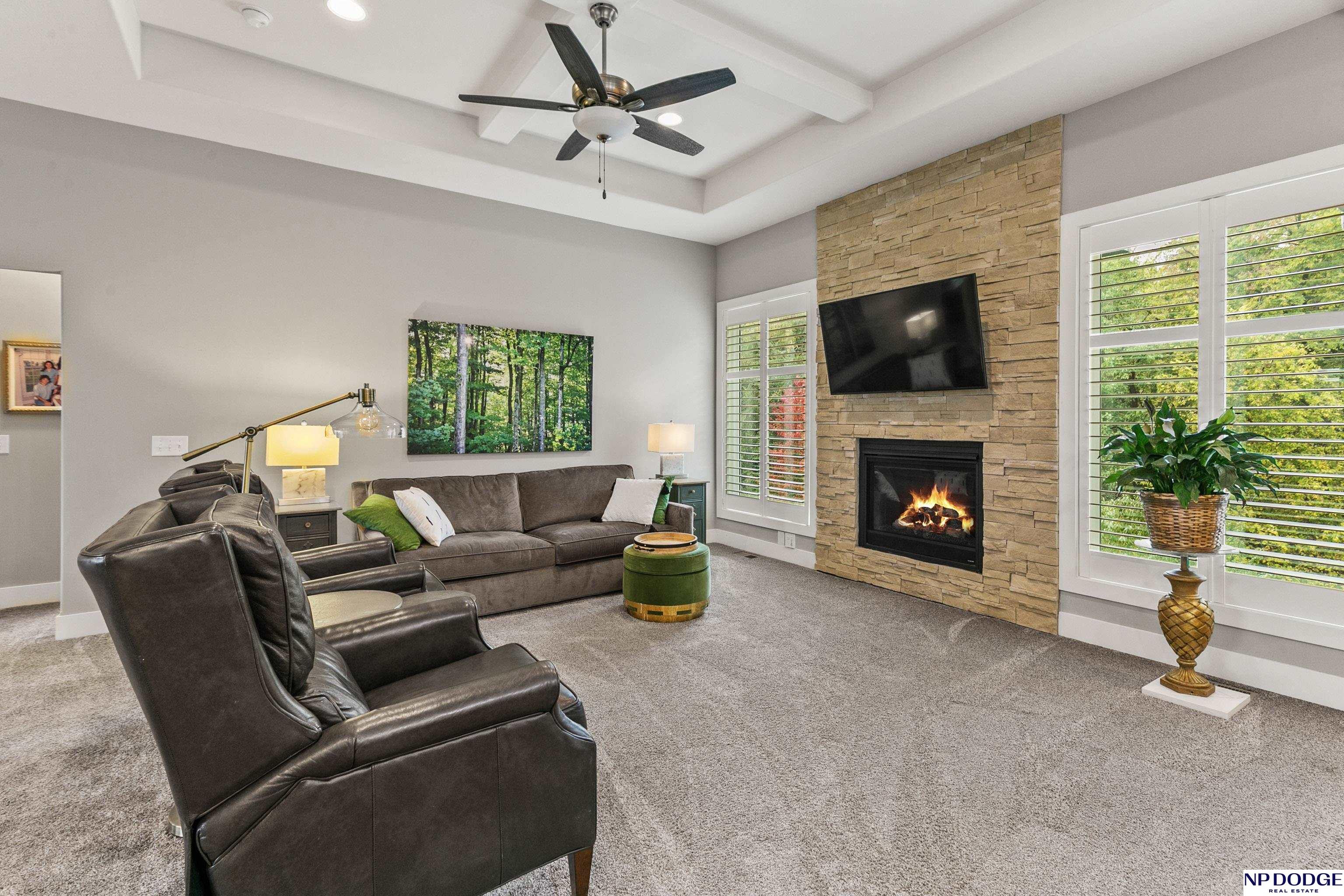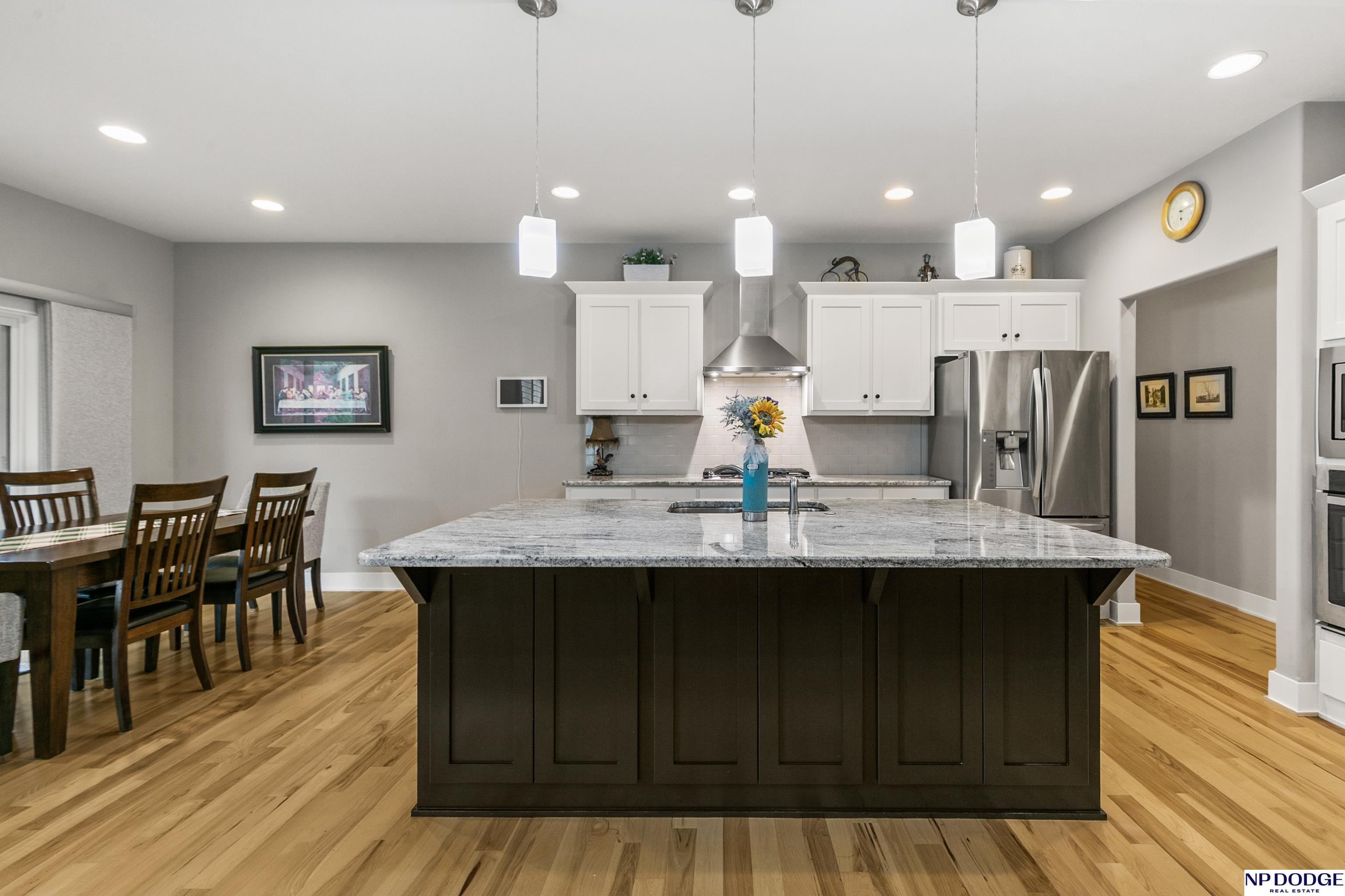 Wonderful ranch on a premium lot in Blondo Ridges. You'll rule out new construction after you tour this like-new home on one of the best lots in the area. Very versatile floorplan with split bedrooms on the main floor and an open concept with stylish colors and finishes. Primary suite overlooks the treed back yard with large windows and features a walk-in shower and large closet passing through to the laundry area/drop zone. Expansive, finished lower level has two additional bedrooms, bar area and 2nd stone fireplace. Walk out to the patio area that has been expanded as well as enhanced with a relaxing fire pit where you can entertain your guests or just enjoy some peace and quiet. Professional grade landscaping and garage epoxy, smart lawn irrigation system and more. Your next home awaits in Elkhorn North.