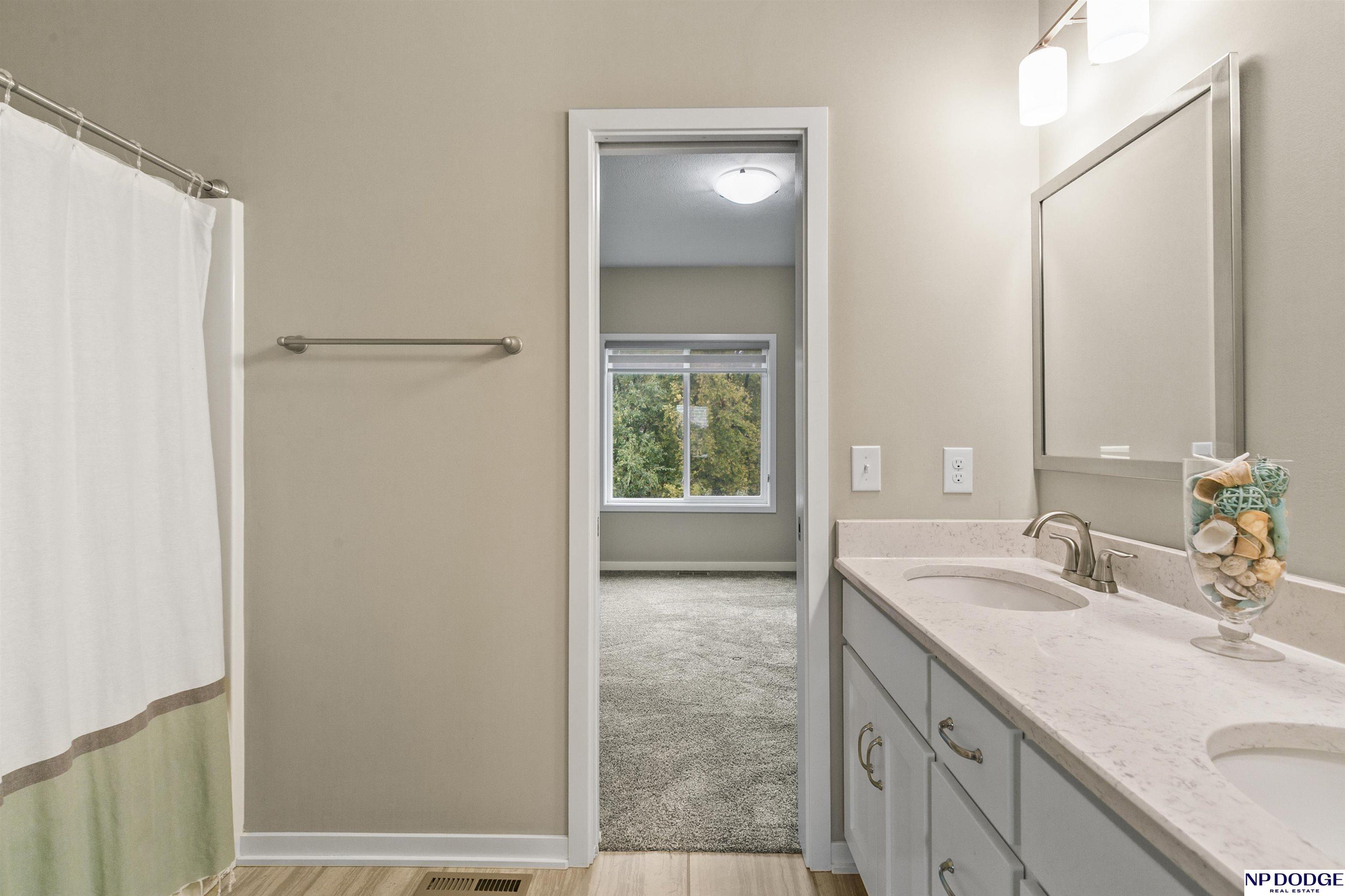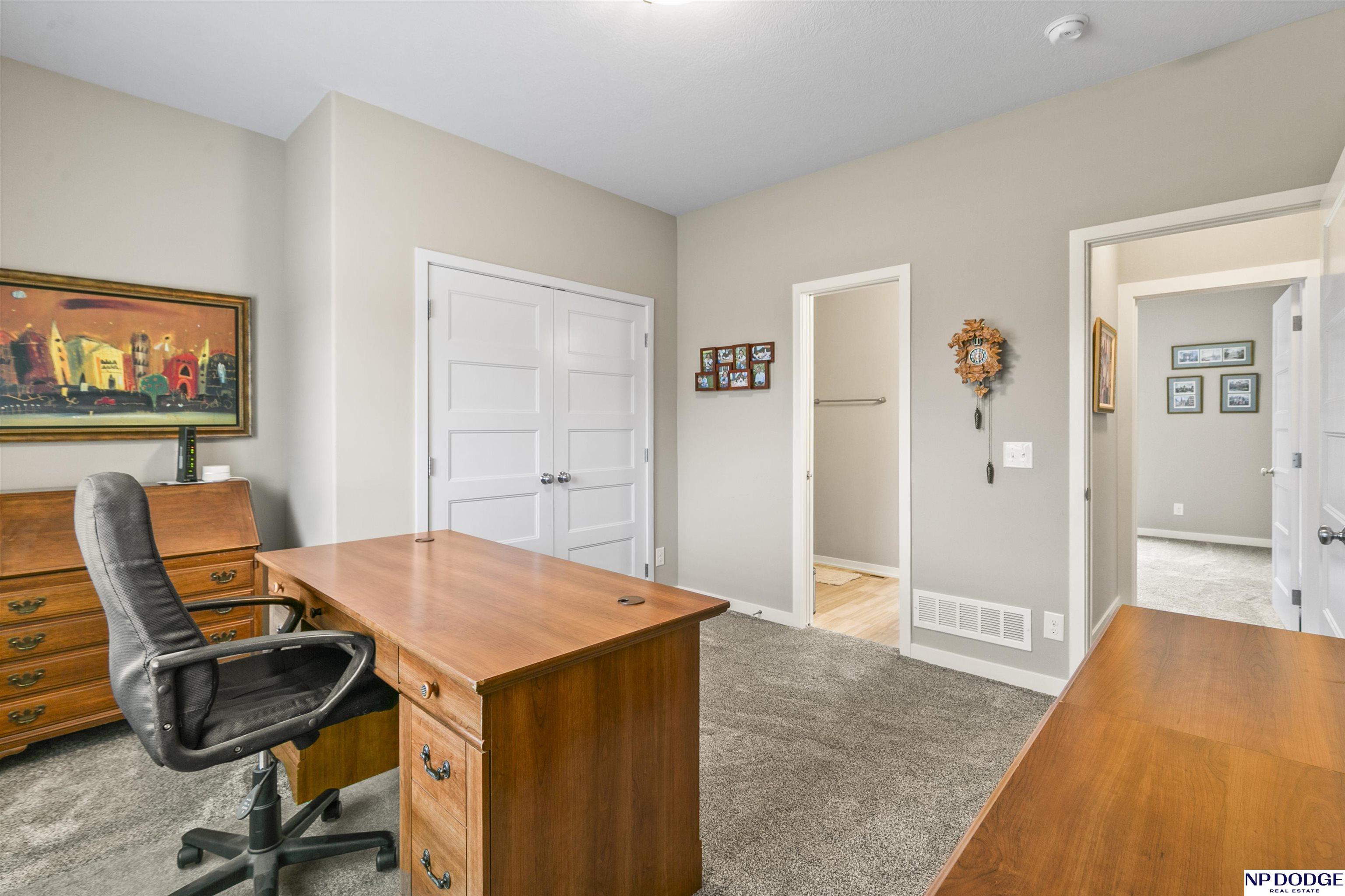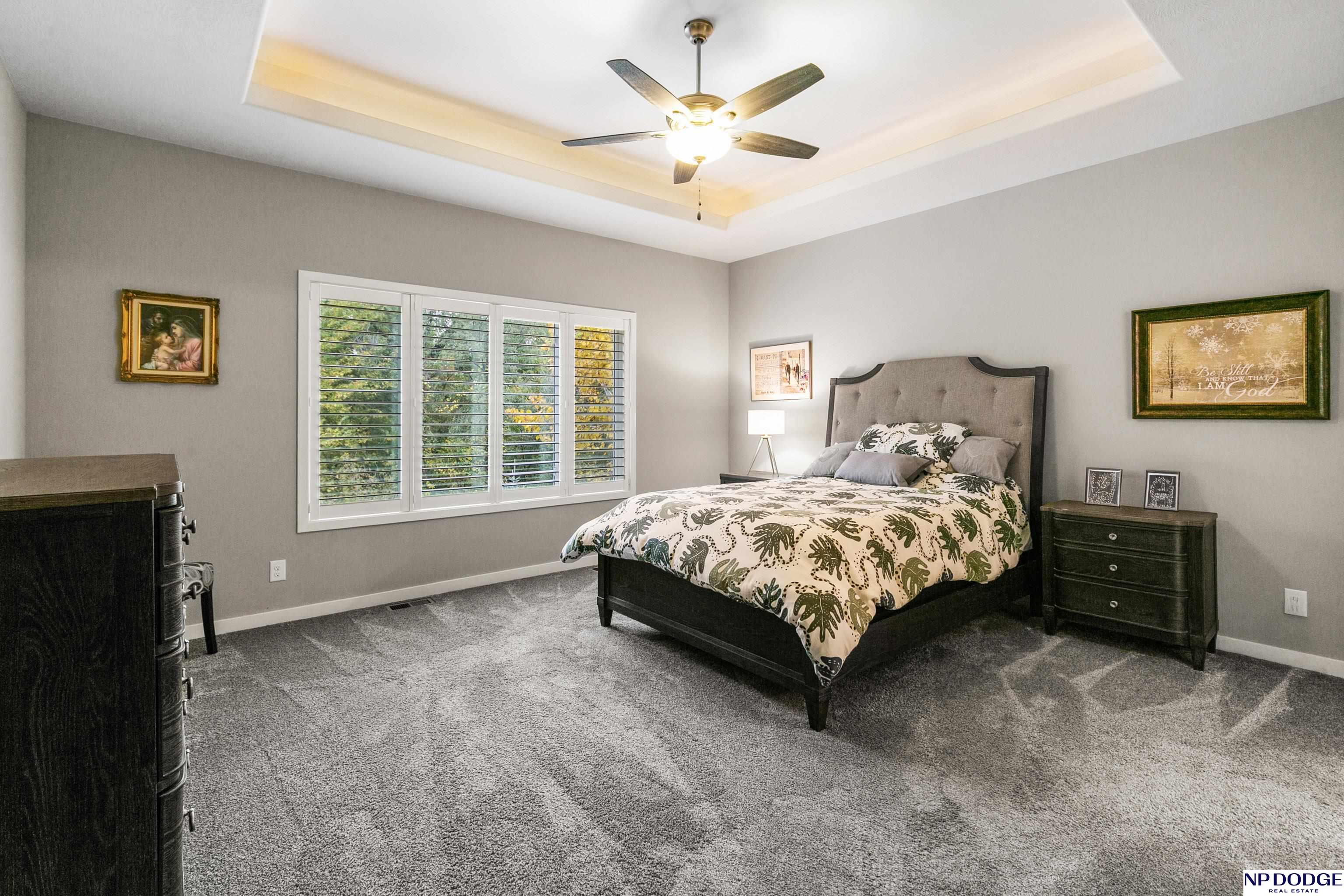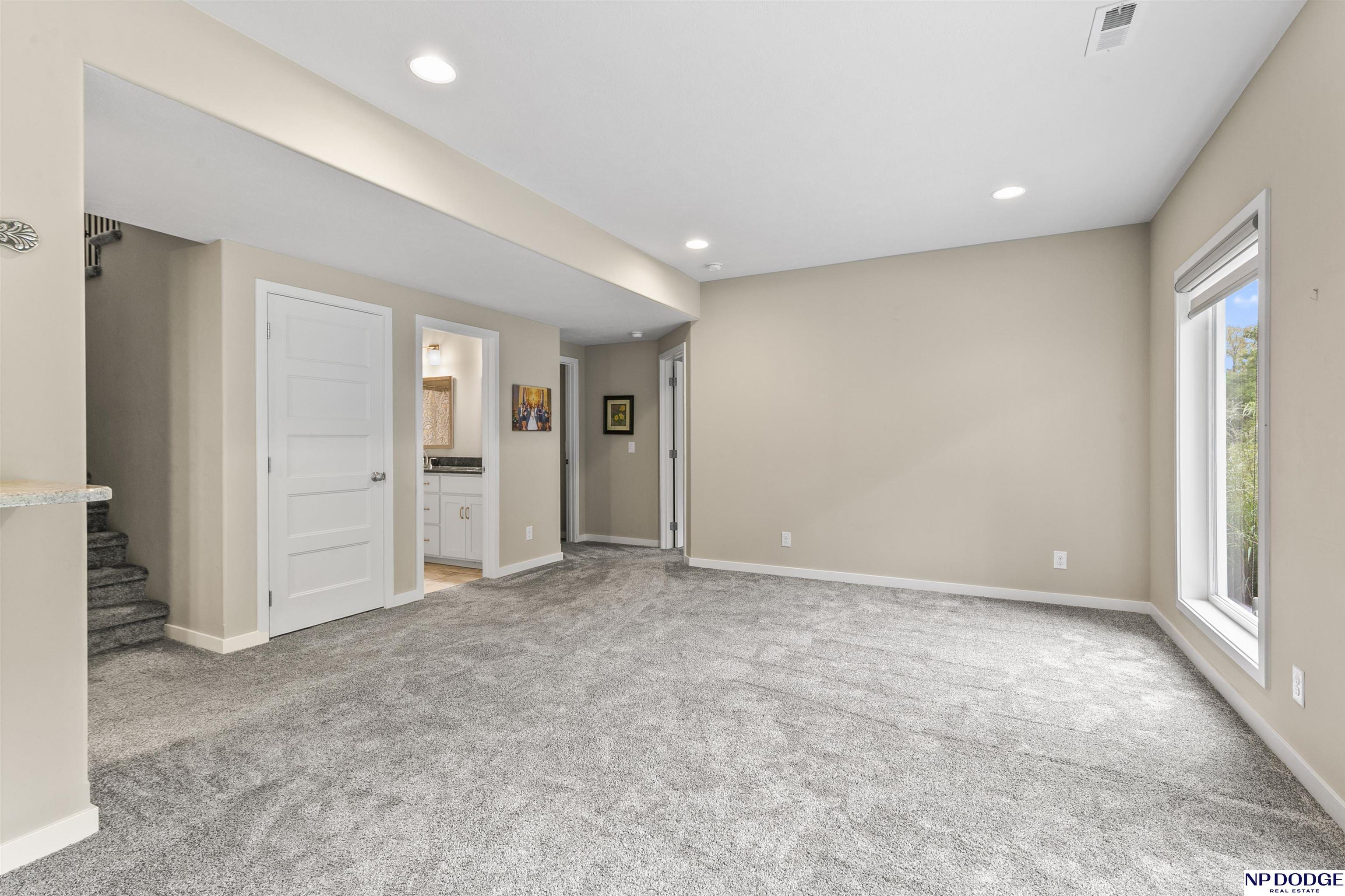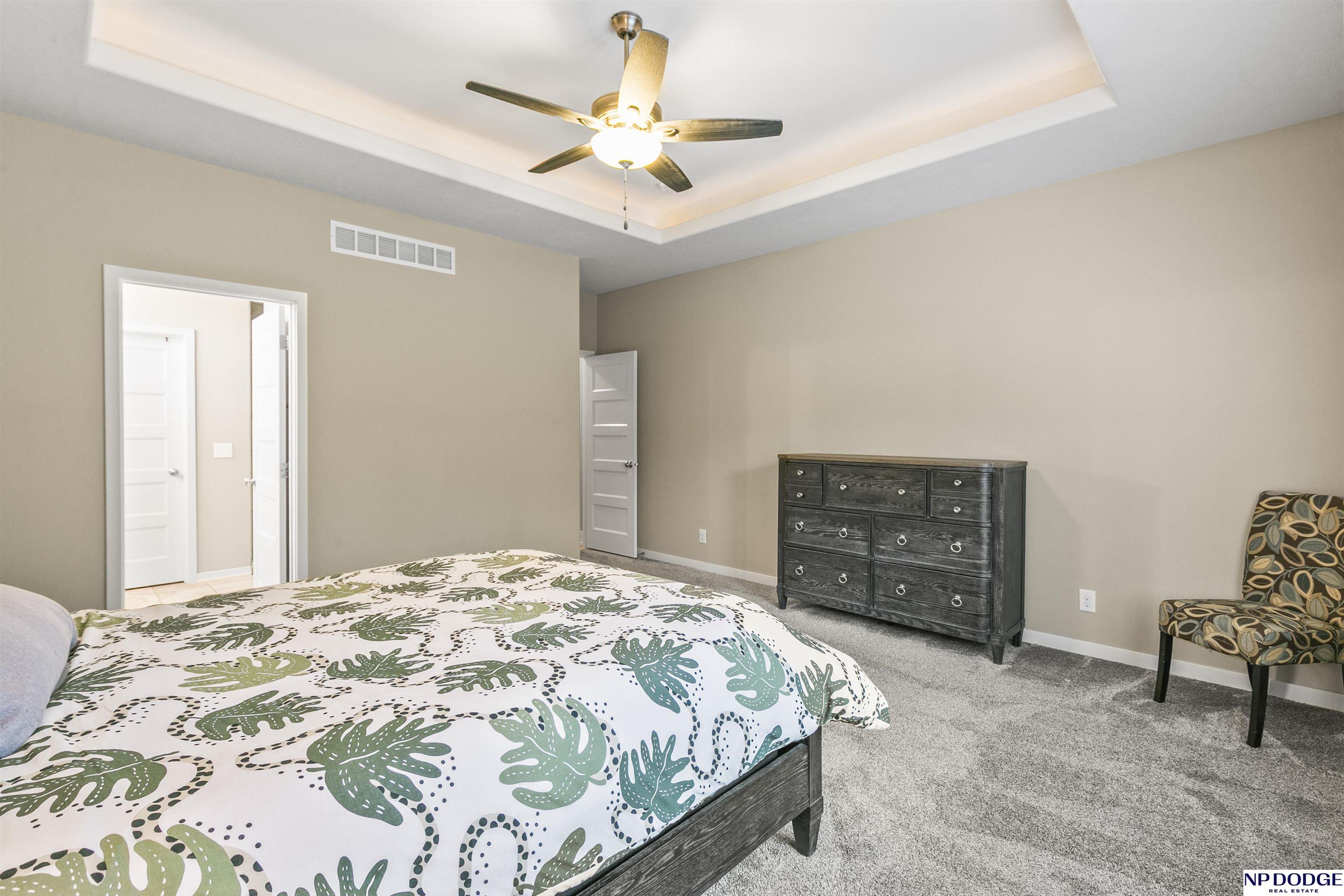Wonderful ranch on a premium lot in Blondo Ridges. You'll rule out new construction after you tour this like-new home on one of the best lots in the area. Very versatile floorplan with split bedrooms on the main floor and an open concept with stylish colors and finishes. Primary suite overlooks the treed back yard with large windows and features a walk-in shower and large closet passing through to the laundry area/drop zone. Expansive, finished lower level has two additional bedrooms, bar area and 2nd stone fireplace. Walk out to the patio area that has been expanded as well as enhanced with a relaxing fire pit where you can entertain your guests or just enjoy some peace and quiet. Professional grade landscaping and garage epoxy, smart lawn irrigation system and more. Your next home awaits in Elkhorn North.