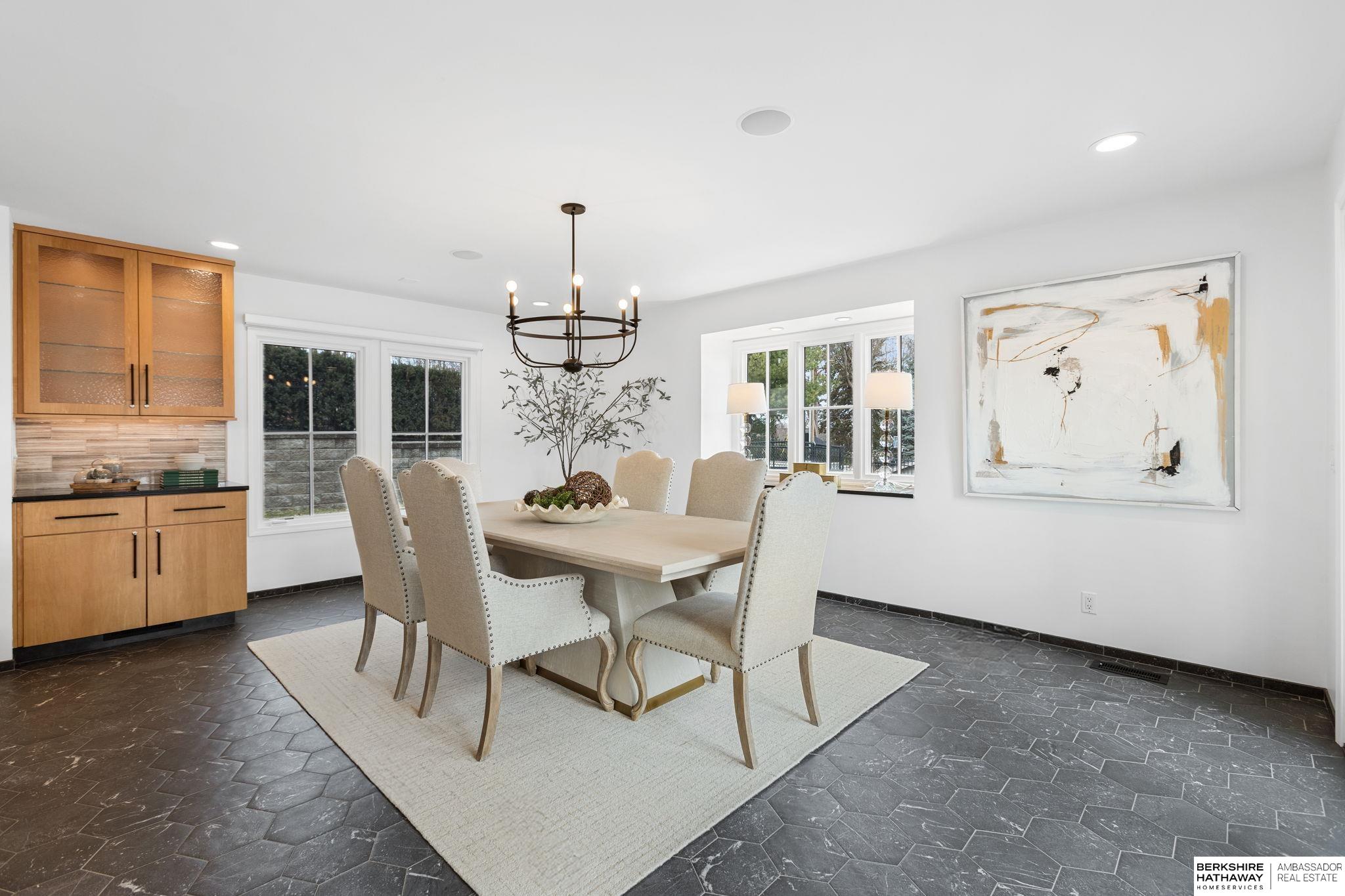Open Sat & Sun 12 - 2 Designed by AIA architect D. Haddock, this exceptional residence blends modern luxury w timeless craftsmanship. Located in coveted Rockbrook on a picturesque street, the home sits high & sightly w views of Happy Hollow Country Club. The chef’s kitchen is a showpiece, featuring dual ovens & sinks, an induction cooktop, commercial appliances and a dramatic 16-foot island—perfect for entertaining. A custom stained-glass feature window adds a distinctive artistic touch. The entire third level is devoted to a private primary retreat, complete w dual walk-in closets, a spa-inspired wet bath & private deck w stunning views. An elevator ensures seamless accessibility - w ability to age in place, while a heated driveway and walkway provide year-round convenience. Thoughtfully curated with custom finishes throughout, plus a newer roof and windows, this home offers refined living at every level. Over 200K in recent updates & improvements and pre-inspected for piece of mind.