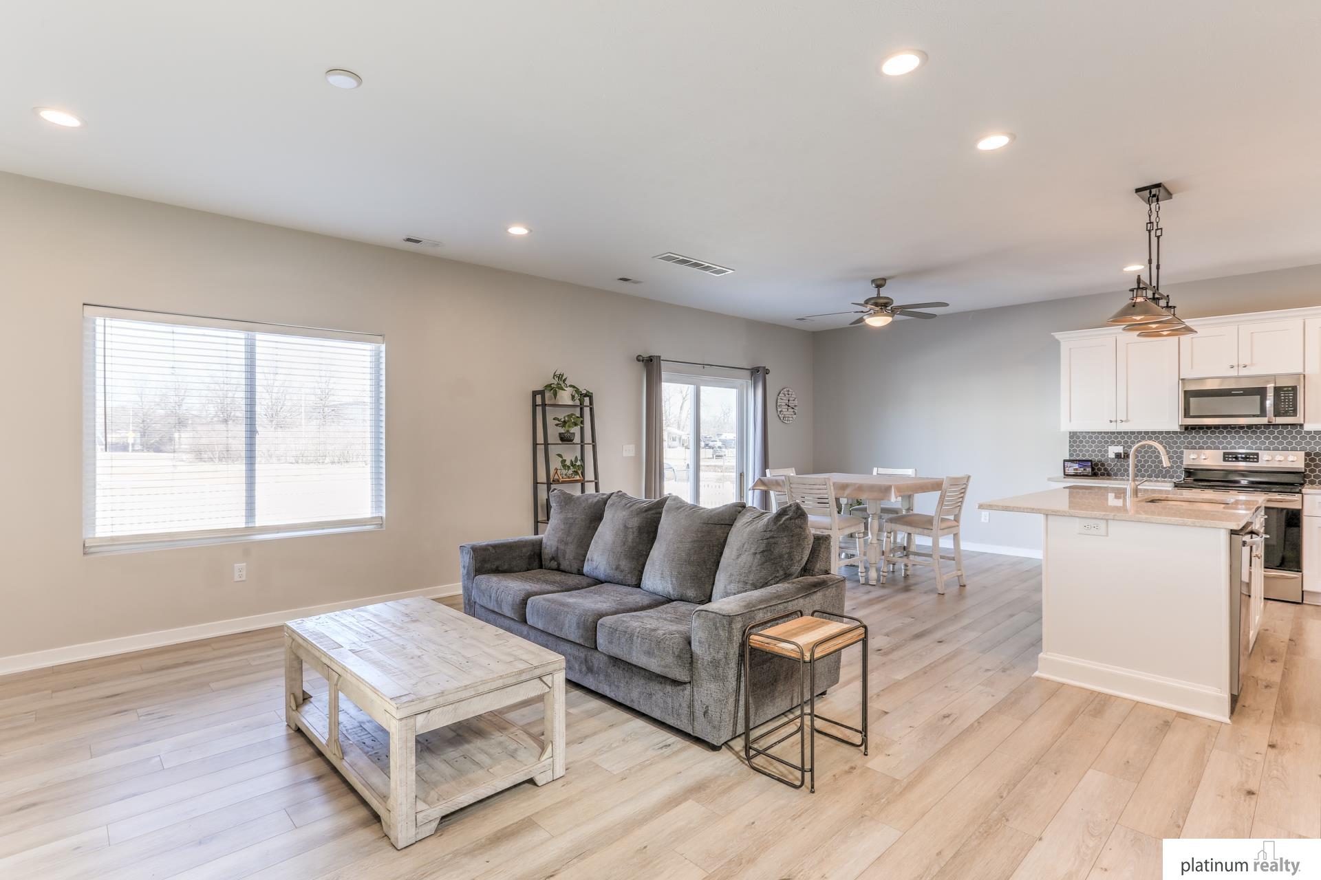 Stunning Modern Townhome! This move-in ready townhome features an open-concept layout with a chic kitchen, stainless steel appliances and a large center island. Enjoy stylish finishes, luxury vinyl flooring and an attached 2 car garage. Upstairs you'll find comfortable bedrooms to fit your needs. Enjoy the benefits of low-maintenance townhome living while still having the feel of a single family home just an arms stretch from Omaha. *Assumable 2.87 Loan available*