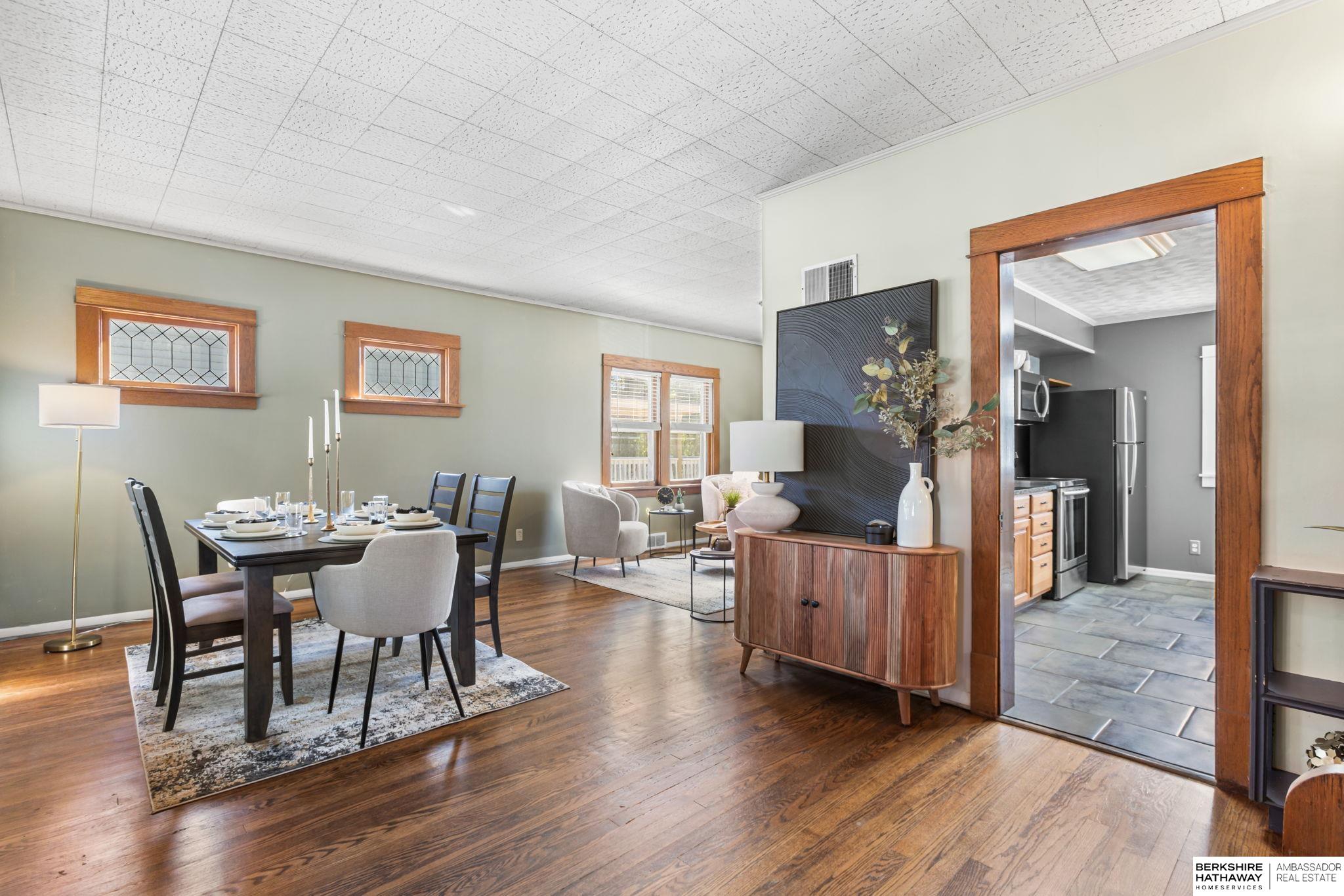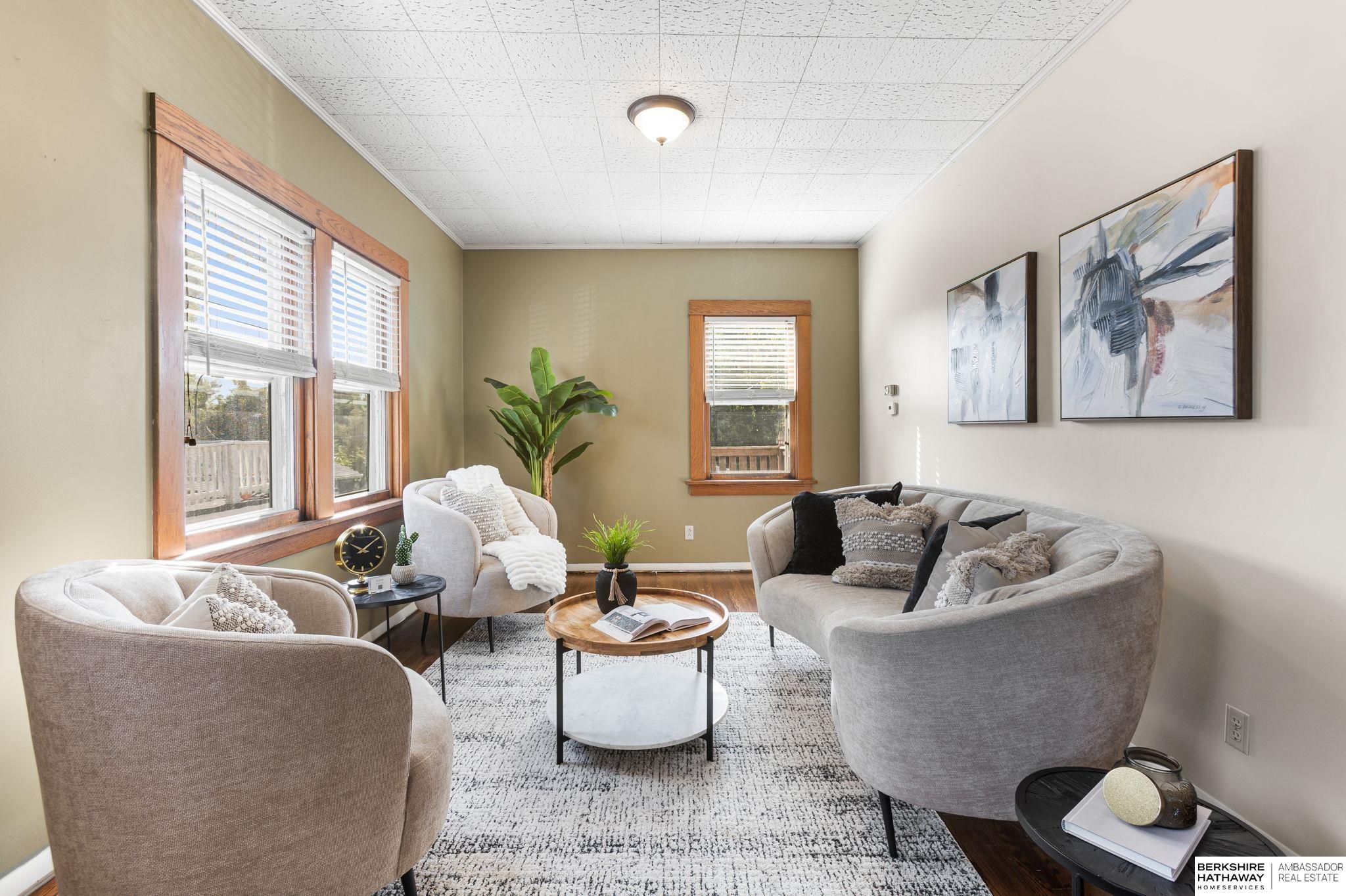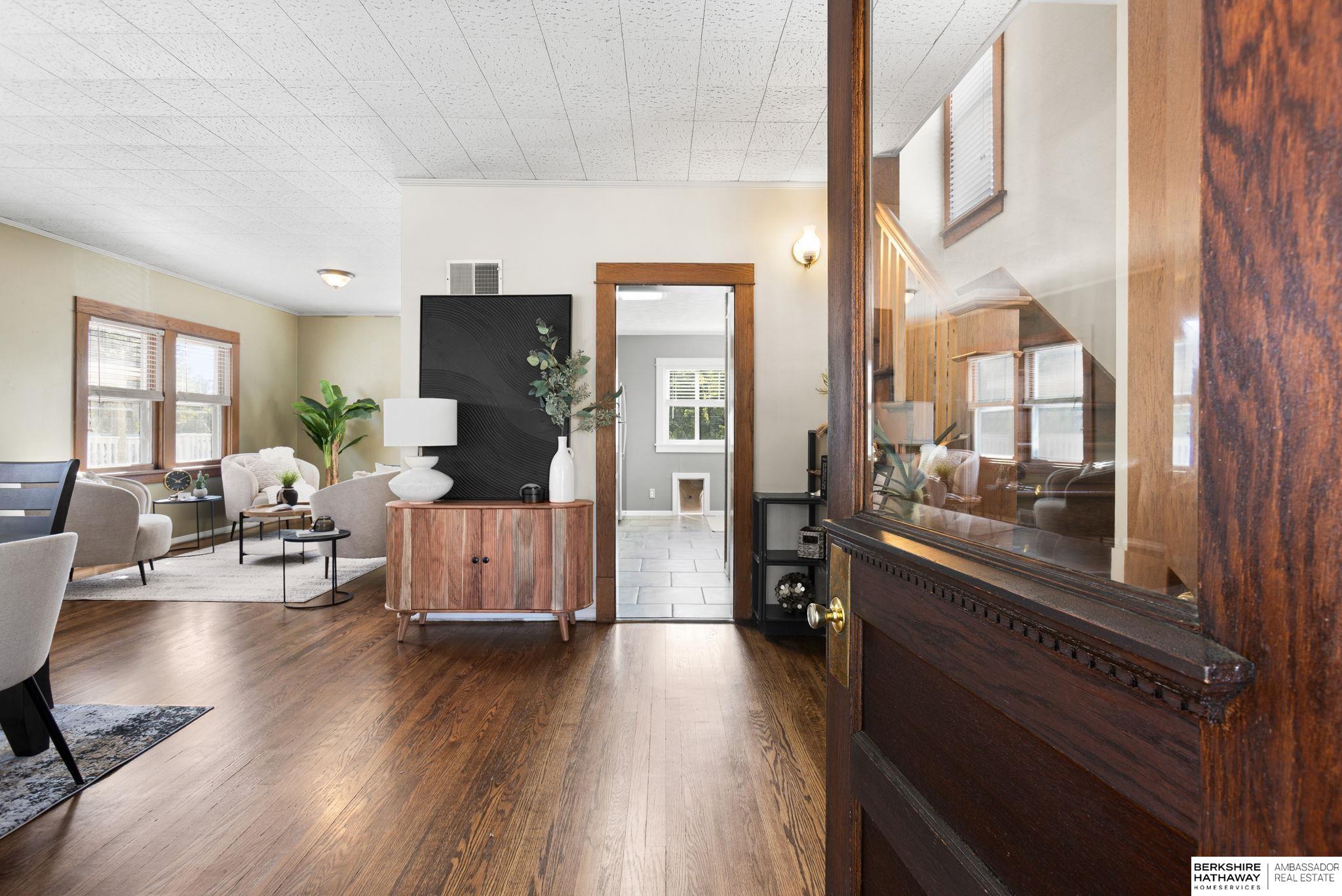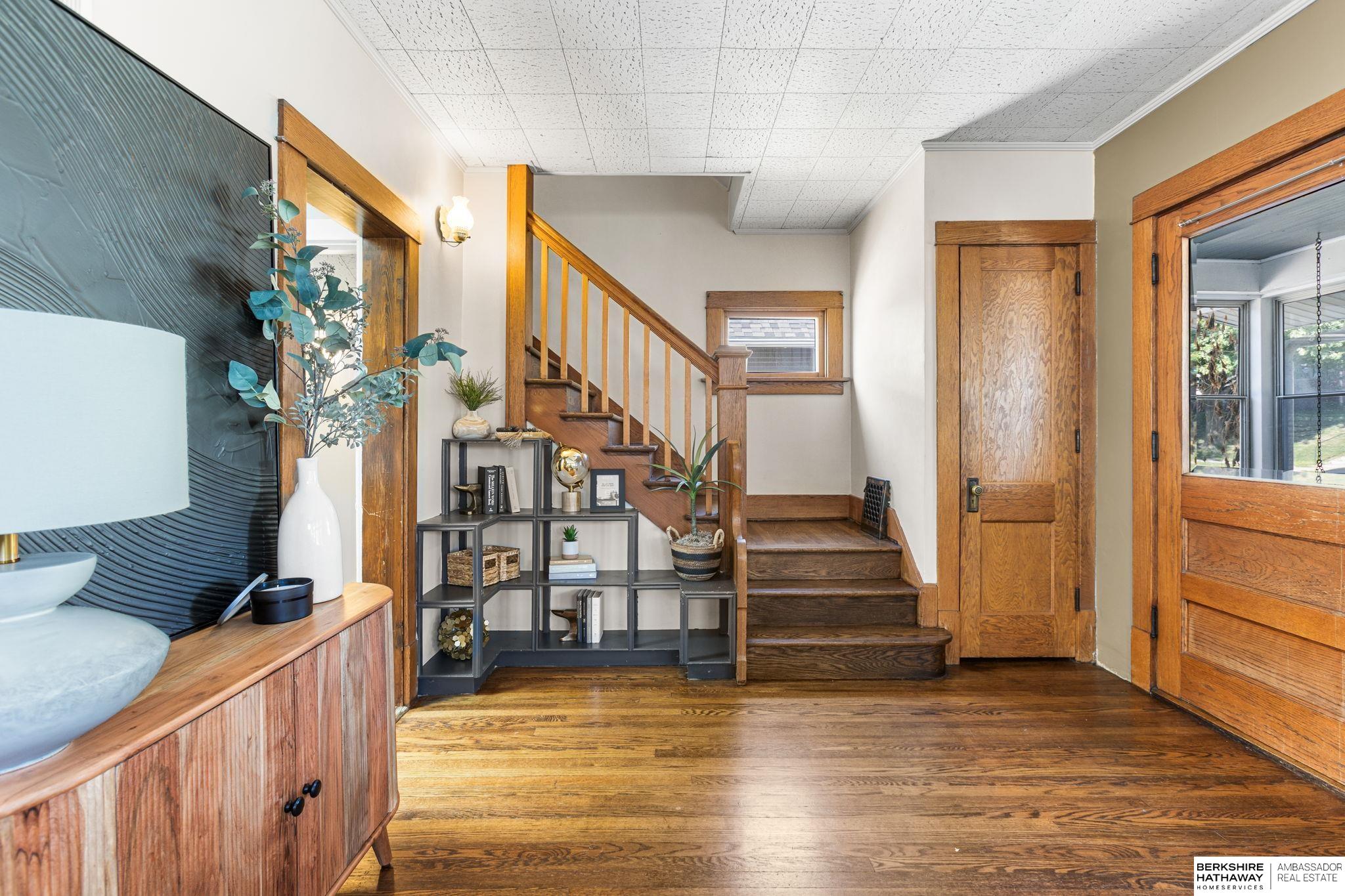 Brand new roof! Midtown home right by Field Club Trail! Enjoy your morning coffee on the large, enclosed front porch with porch swing. Original hardwood floors were beautifully refinished on the main floor and second floor. Kitchen was remodeled with updated appliances, granite countertops and great storage. All while keeping original charm with brick accents and natural light. Large family room and dining room are open to each other with beautiful windows and good storage. Two large bedrooms on 2nd floor with great closet space and updated bathroom with large shower. Walkout lower level has plenty of space for rec space, 1/2 bath and storage. Relax on the spacious deck overlooking the tree-lined Field Club trail. Fenced in back yard also has additional yard space behind the 2-car garage! Great proximity to UNMC, Creighton & downtown. Good interstate access.