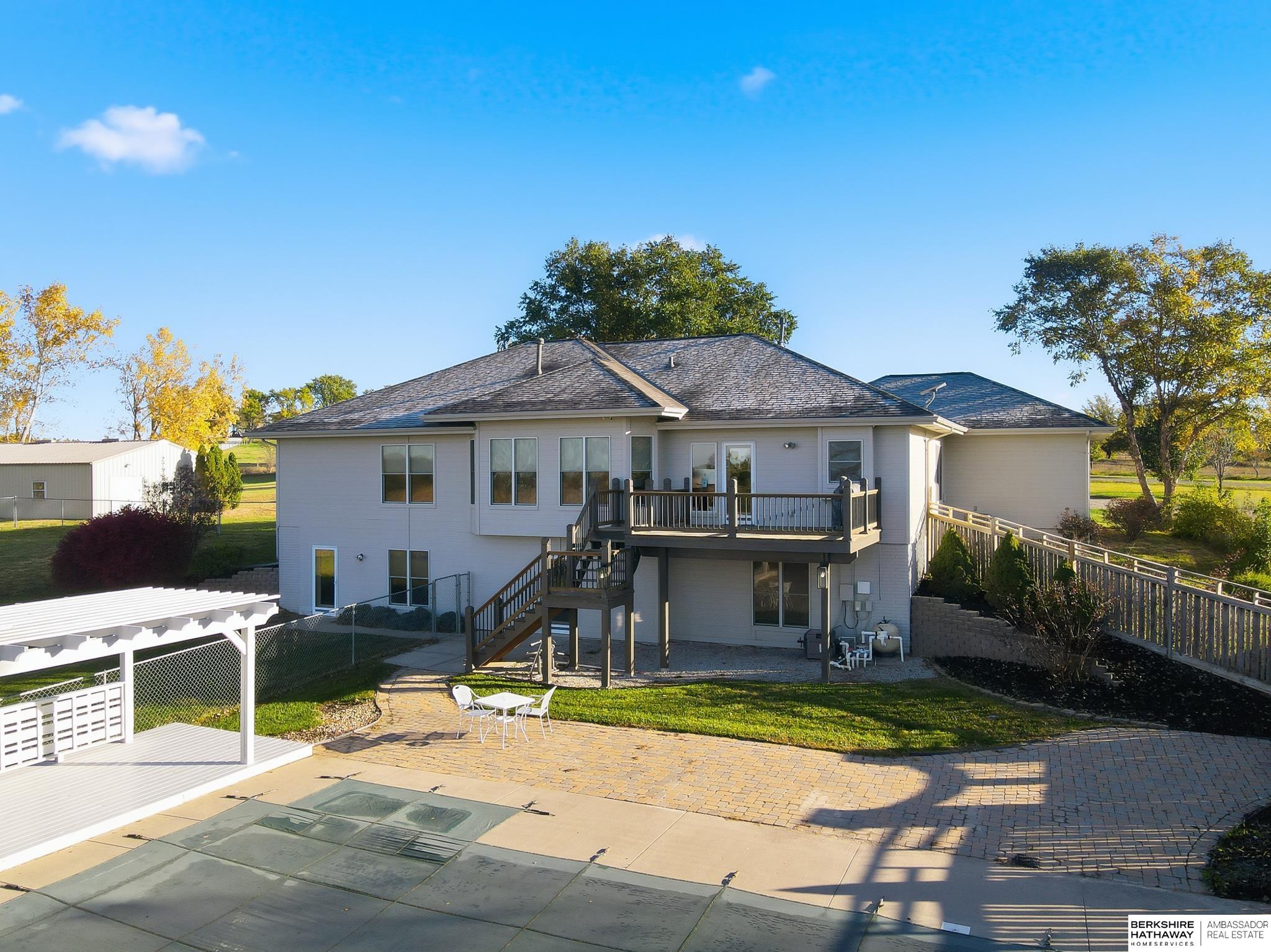 Nestled on 4.25 scenic acres in Gretna, this beautifully updated ranch offers privacy, space, and unforgettable views and open sky. The heart of the home features a stunning kitchen with a large center island, quality finishes, and an open layout to the living room, where a wall of windows brings the outdoors in. The primary suite is a true retreat with a recently remodeled spa bath and heated floors, while a second main-floor bedroom offers its own en-suite bath. The walkout lower level includes a spacious rec room, third bedroom, flex room, and generous storage. Step outside to enjoy the saltwater pool, thoughtfully fenced separately from the yard, ideal for both entertaining and everyday living. A standout outbuilding with concrete radiant-heated floors provides endless possibilities for hobbies, storage, or workspace. This exceptional property offers timeless comfort, functionality, and room to breathe - an uncommon opportunity in a truly beautiful setting.