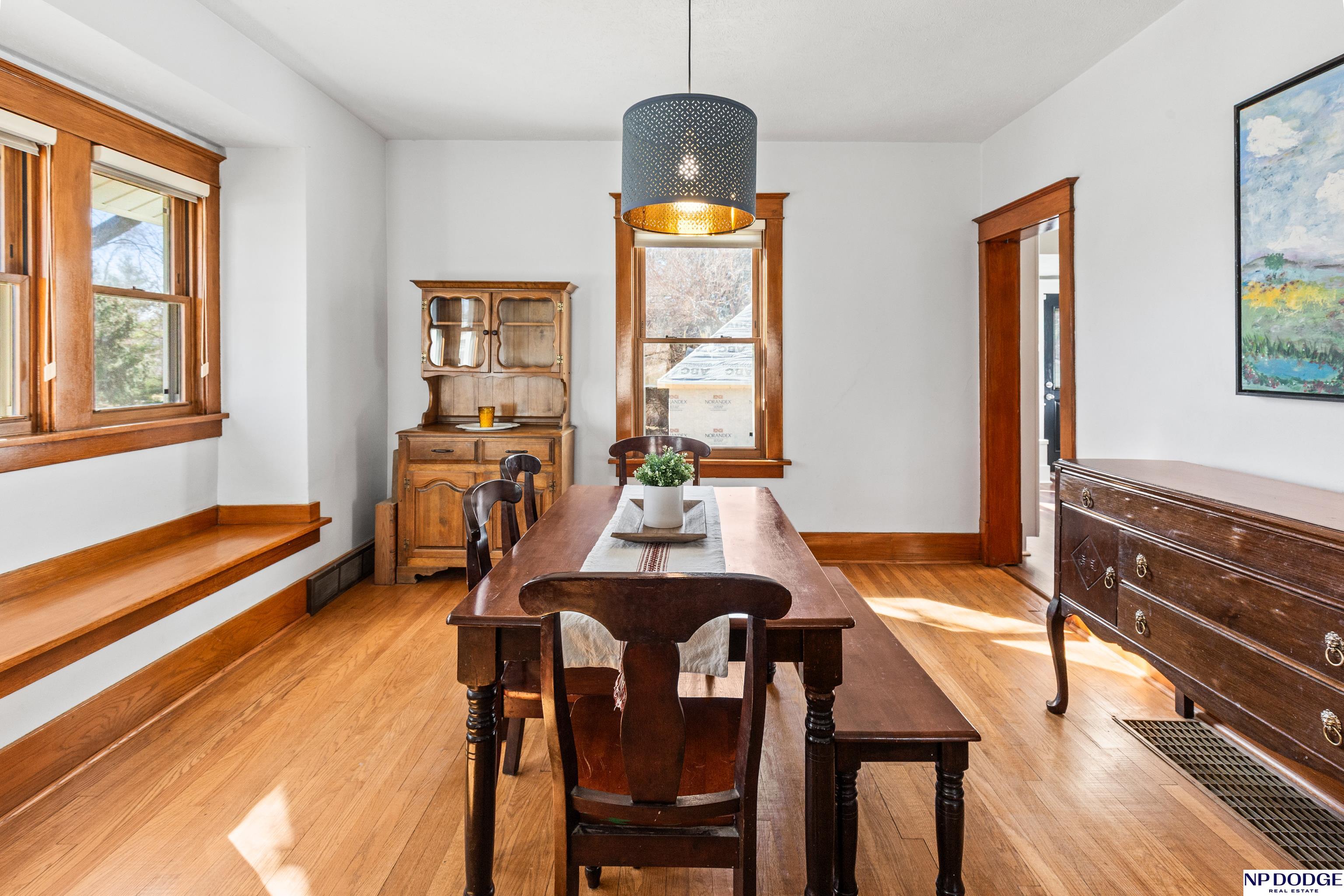 Packed with charm and great updates, this inviting 2-story is ready to impress! From the moment you step inside, you'll appreciate the beautiful original hardwood floors, classic interior doors, and detailed trim and moldings that give this home its timeless character. The updated kitchen offers a comfortable nook that's just right for morning coffee, quick meals, or catching up on the day. Upstairs, the primary bedroom features a walk-in closet, while the two additional bedrooms provide generous closet space and easy access to a full bath. The big-ticket updates are already done for you NEW roof, siding, gutters, and gutter guards (2024) plus furnace and A/C (2017). The home is also radon mitigated and includes a sprinkler system for added peace of mind. Outside, you'll love the corner lot, fenced yard, plus the detached 2.5-car garage that offers plenty of room for vehicles, storage, or hobbies.