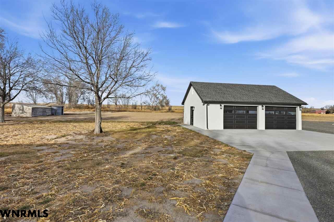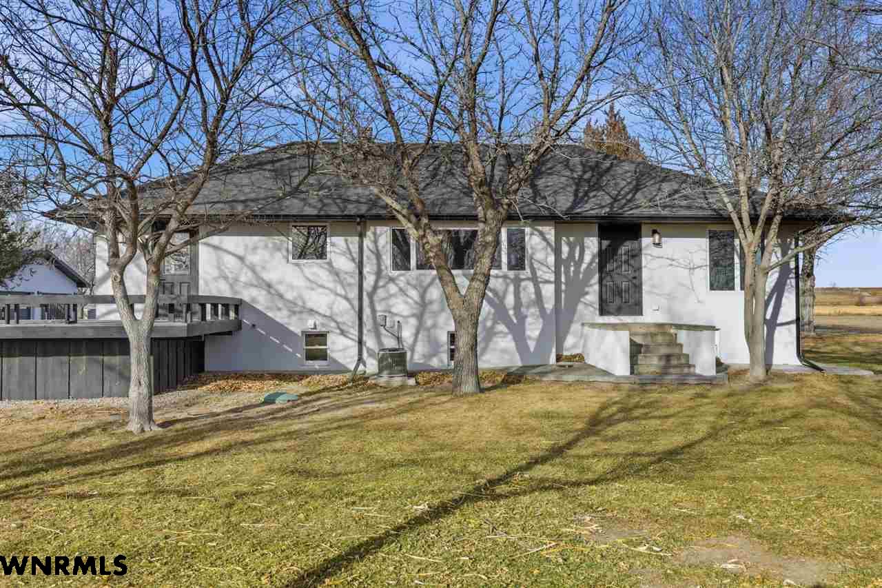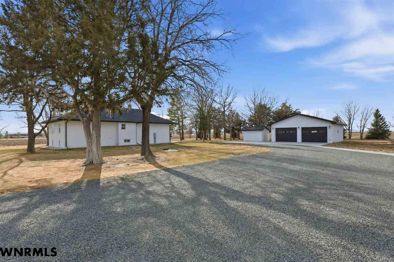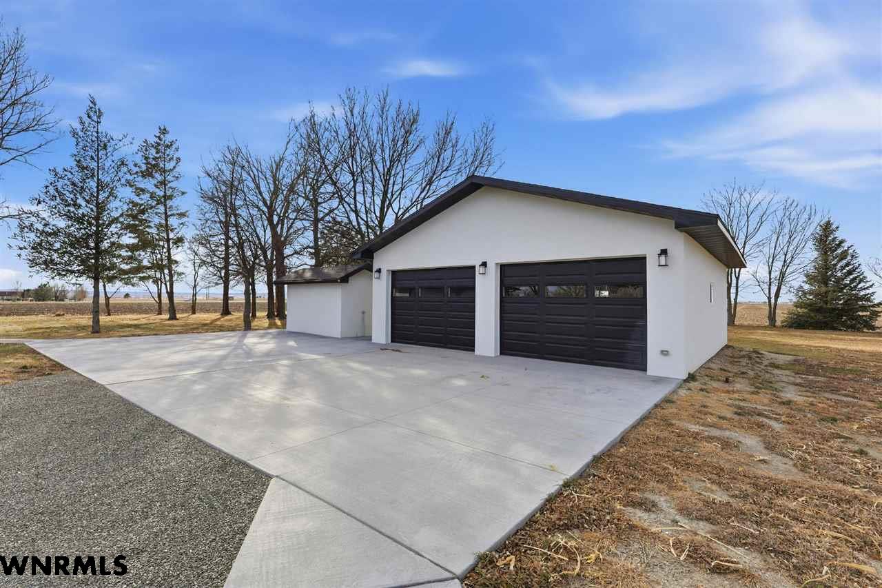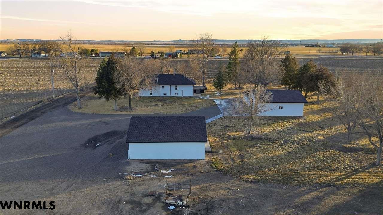 This beautiful, recently remodeled home sits on two acres roughly a quarter of a mile North of Highland Road and half a mile East of Lacy Park in Scottsbluff, NE. This stunning property offers a private escape from the city while also offering the convenience of being less than 10 minutes away from the heart of downtown Scottsbluff. The property features two finished detached garages and a small storage shed as well as room for an additional building. The home comes with a large 469 square foot wood deck overlooking a beautiful yard with over 30 mature trees and a new underground sprinkler system. All of the structures on the property have new stucco and new asphalt roofs. The North garage is 768 square feet with two new insulated overhead doors and features a small lighted storage area above. The garage closer to the home is new and slightly larger at 900 square feet and also features two new insulated overhead doors. Between the two garages is new colored concrete. The property is also on a well system and has two septic tanks. This home comes complete with four bedrooms, two living rooms, one full bathroom, two 3/4 bathrooms, a laundry/utility room, and a pantry. The water heater, plumbing, wiring, flooring, carpet, doors, cabinets, toilets, mirrors, vanities, switches, fixtures, and trim are all new. All the windows in the kitchen are new Pella windows. It features a modern kitchen with new quartz counters and brand-new Frigidaire Gallery appliances. The home also incorporates a new water softening system as well as central air. Taxes and parcel may change due to new survey. Basement bedroom windows my not be conforming.