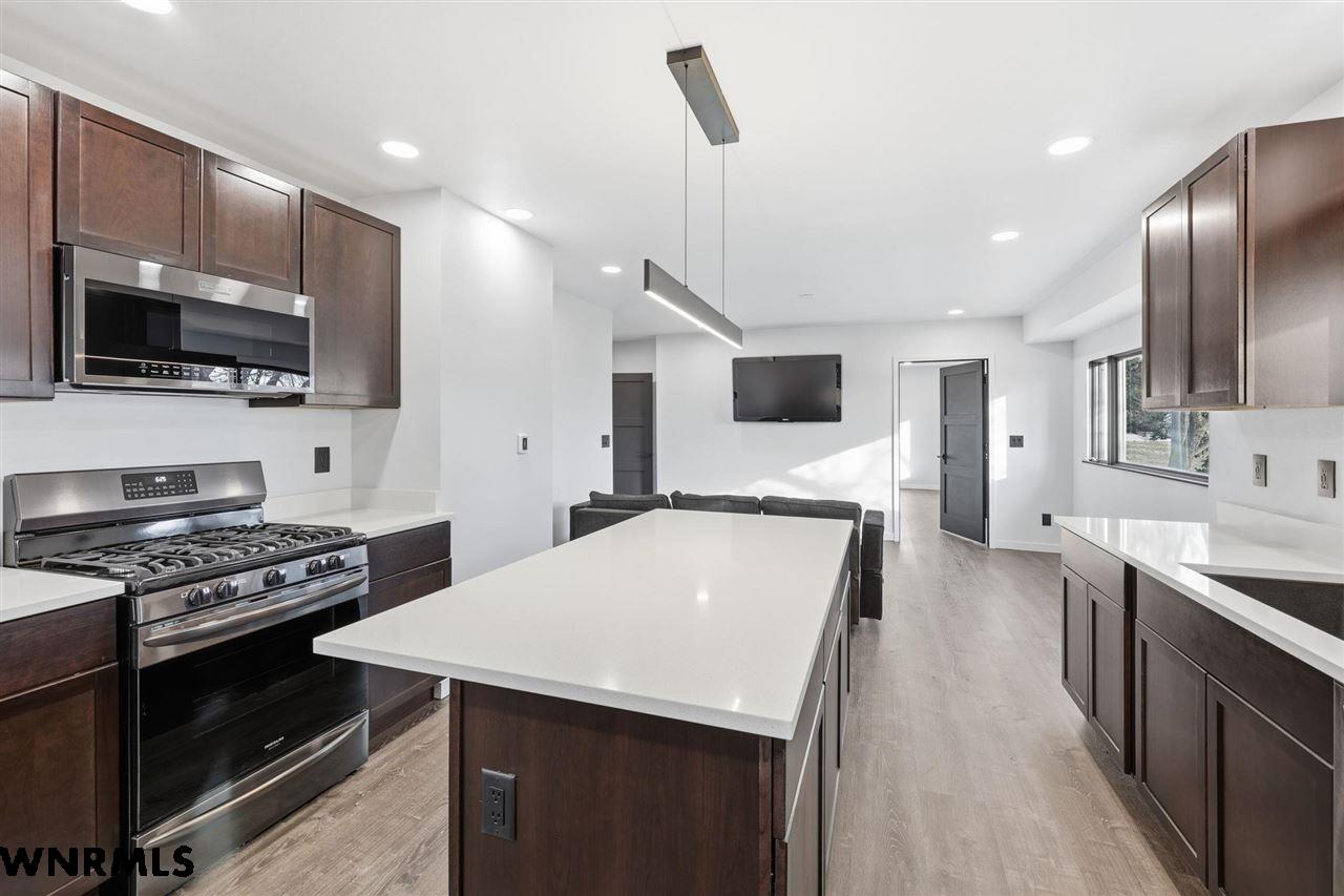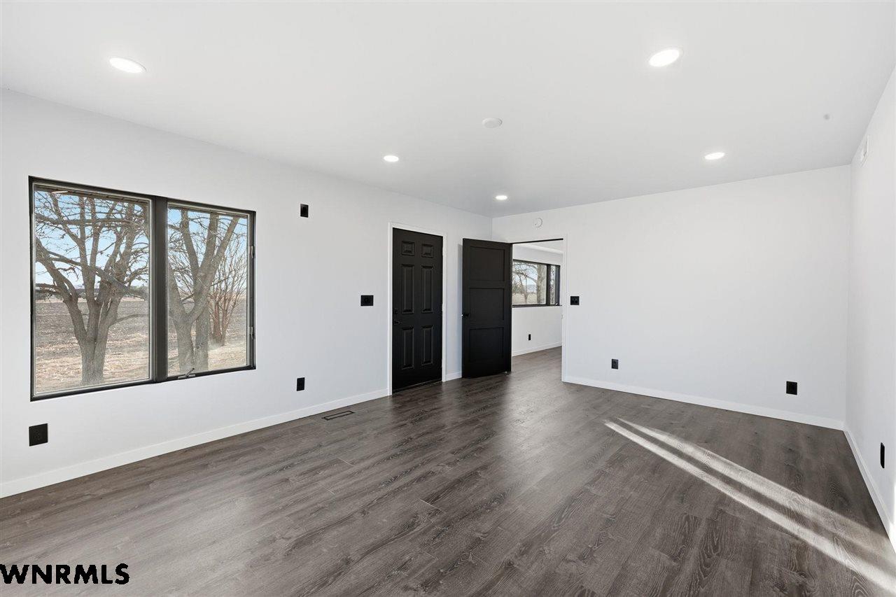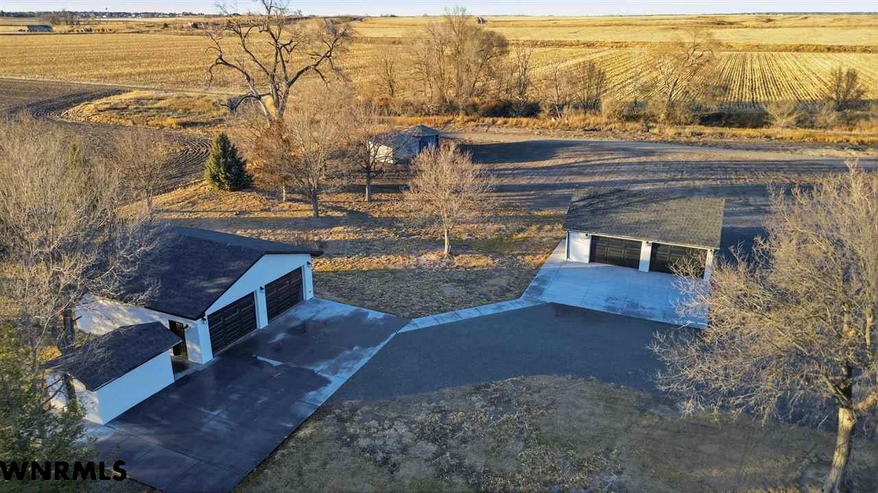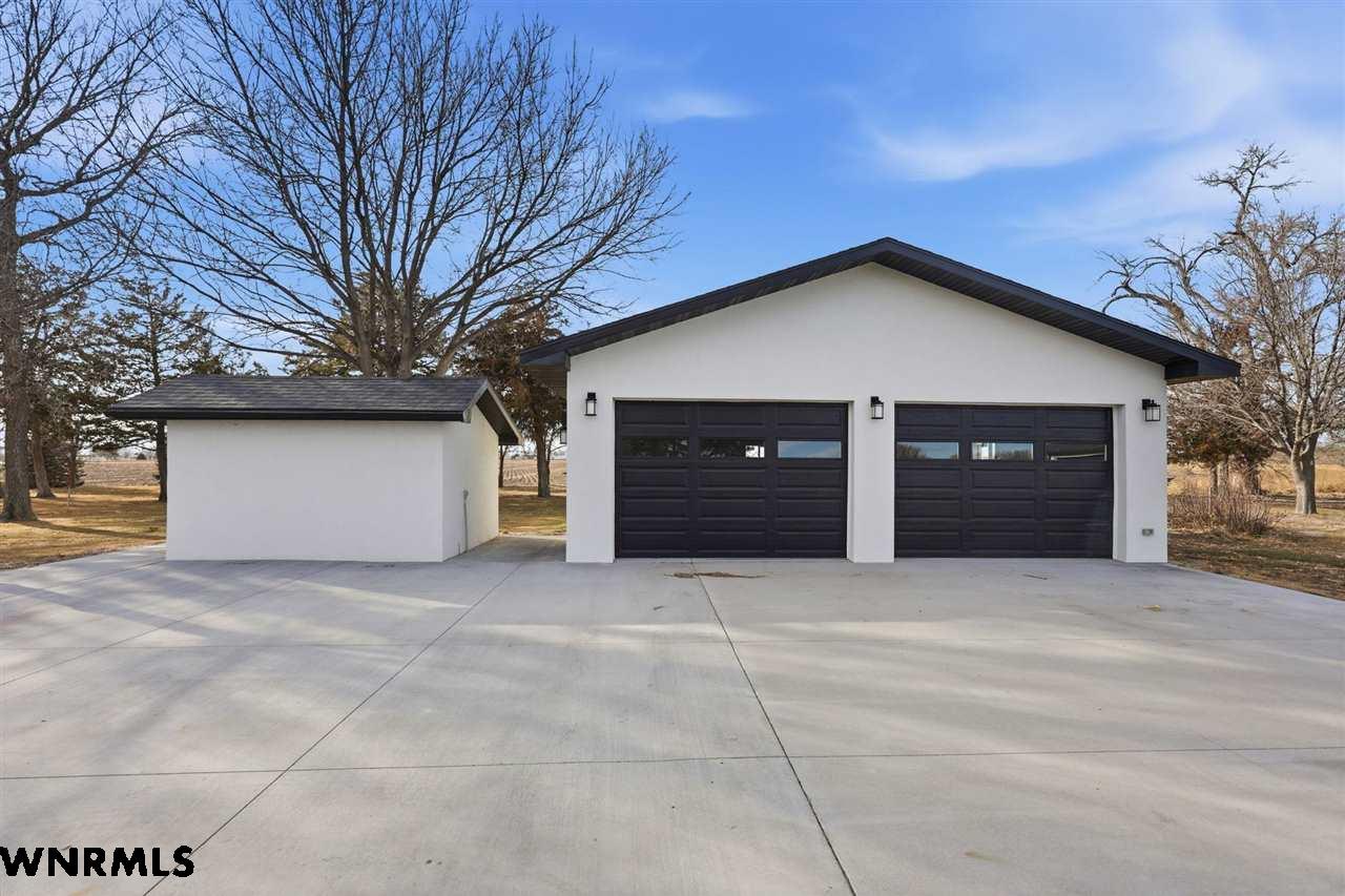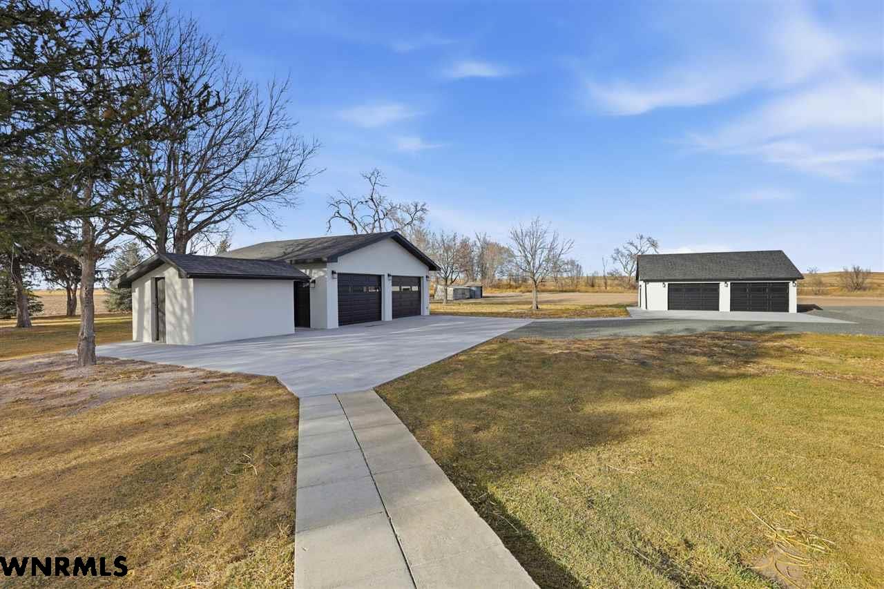 This beautiful, recently remodeled home sits on two acres roughly a quarter of a mile North of Highland Road and half a mile East of Lacy Park in Scottsbluff, NE. This stunning property offers a private escape from the city while also offering the convenience of being less than 10 minutes away from the heart of downtown Scottsbluff. The property features two finished detached garages and a small storage shed as well as room for an additional building. The home comes with a large 469 square foot wood deck overlooking a beautiful yard with over 30 mature trees and a new underground sprinkler system. All of the structures on the property have new stucco and new asphalt roofs. The North garage is 768 square feet with two new insulated overhead doors and features a small lighted storage area above. The garage closer to the home is new and slightly larger at 900 square feet and also features two new insulated overhead doors. Between the two garages is new colored concrete. The property is also on a well system and has two septic tanks. This home comes complete with four bedrooms, two living rooms, one full bathroom, two 3/4 bathrooms, a laundry/utility room, and a pantry. The water heater, plumbing, wiring, flooring, carpet, doors, cabinets, toilets, mirrors, vanities, switches, fixtures, and trim are all new. All the windows in the kitchen are new Pella windows. It features a modern kitchen with new quartz counters and brand-new Frigidaire Gallery appliances. The home also incorporates a new water softening system as well as central air. Taxes and parcel may change due to new survey. Basement bedroom windows my not be conforming.