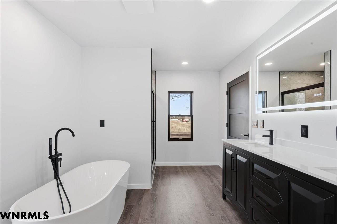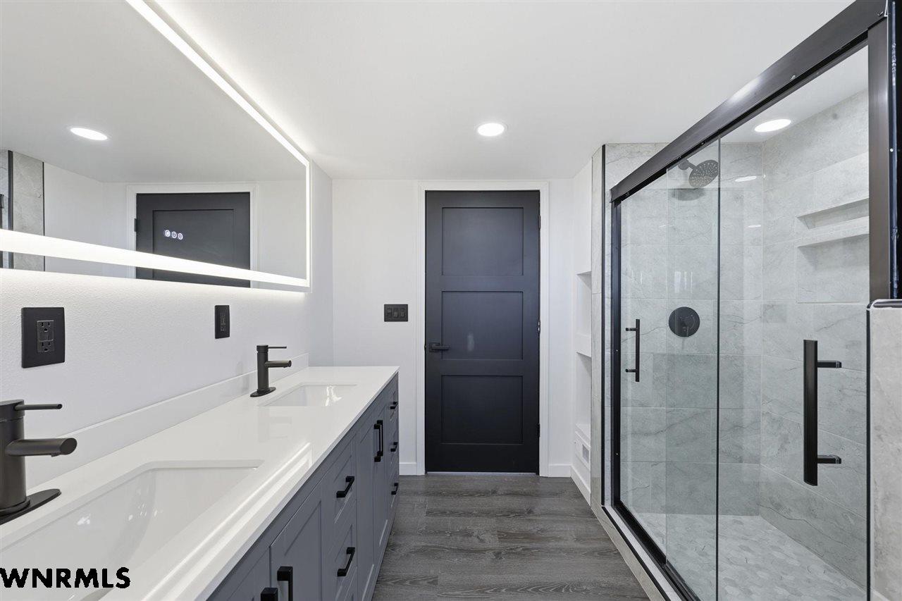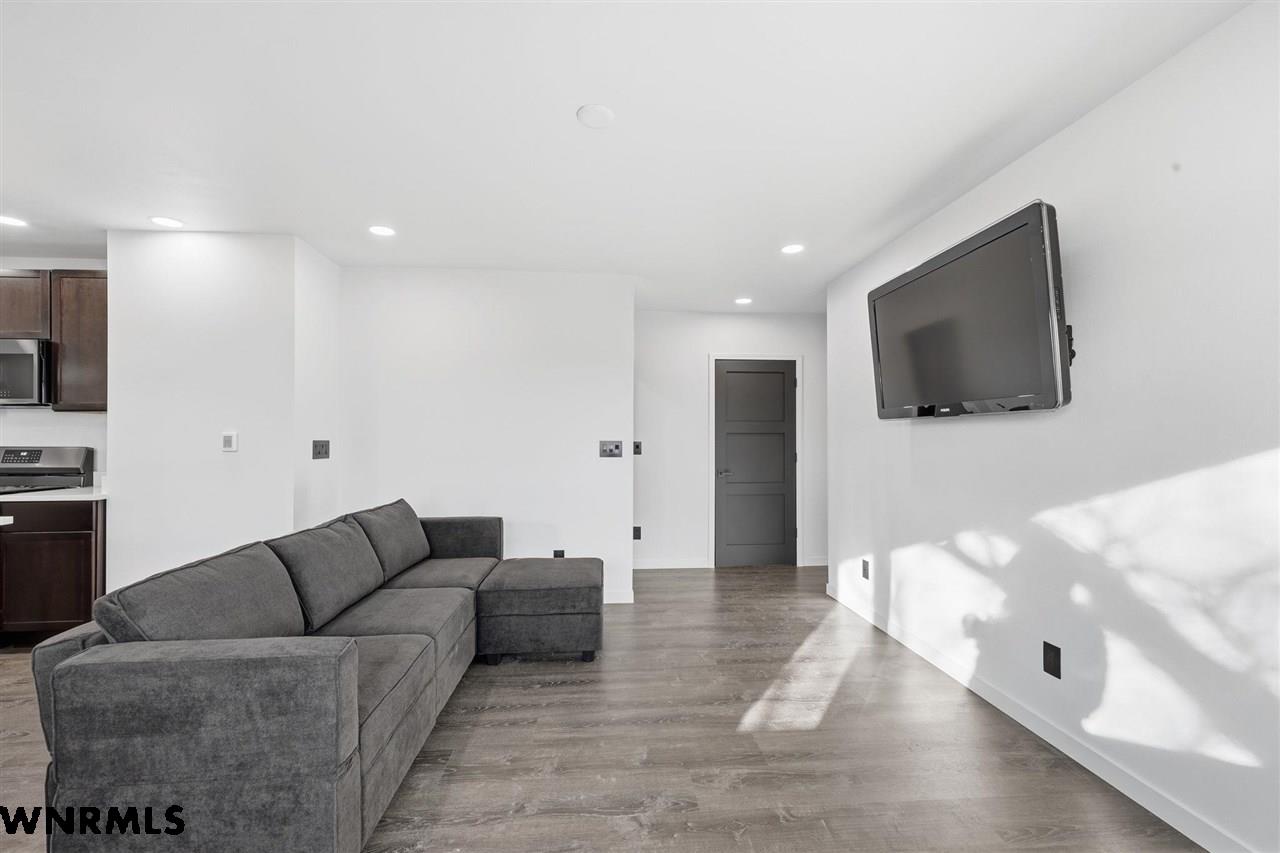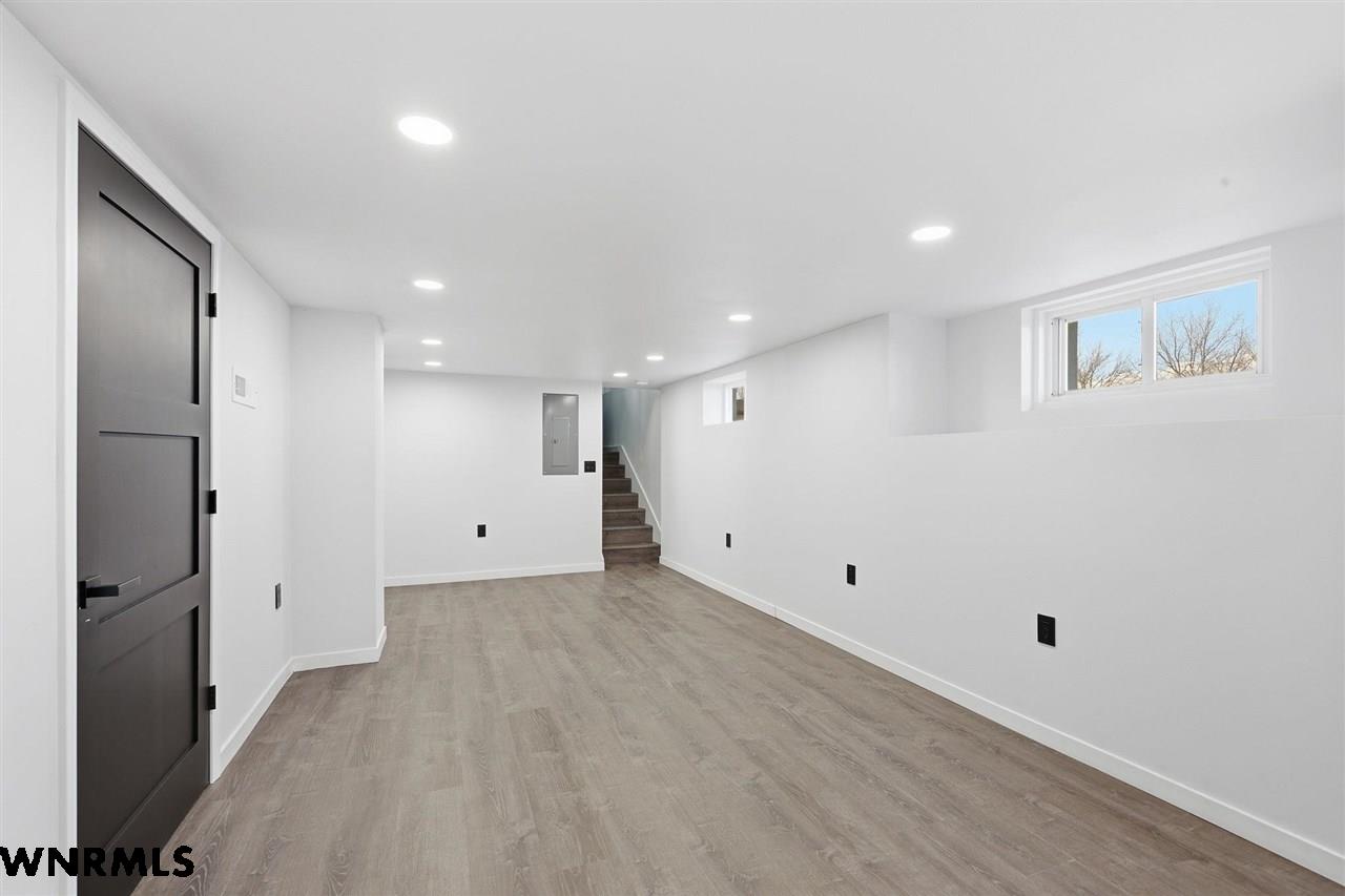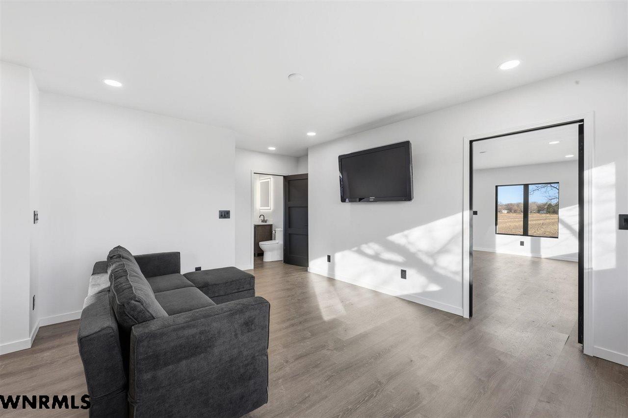 This beautiful, recently remodeled home sits on two acres roughly a quarter of a mile North of Highland Road and half a mile East of Lacy Park in Scottsbluff, NE. This stunning property offers a private escape from the city while also offering the convenience of being less than 10 minutes away from the heart of downtown Scottsbluff. The property features two finished detached garages and a small storage shed as well as room for an additional building. The home comes with a large 469 square foot wood deck overlooking a beautiful yard with over 30 mature trees and a new underground sprinkler system. All of the structures on the property have new stucco and new asphalt roofs. The North garage is 768 square feet with two new insulated overhead doors and features a small lighted storage area above. The garage closer to the home is new and slightly larger at 900 square feet and also features two new insulated overhead doors. Between the two garages is new colored concrete. The property is also on a well system and has two septic tanks. This home comes complete with four bedrooms, two living rooms, one full bathroom, two 3/4 bathrooms, a laundry/utility room, and a pantry. The water heater, plumbing, wiring, flooring, carpet, doors, cabinets, toilets, mirrors, vanities, switches, fixtures, and trim are all new. All the windows in the kitchen are new Pella windows. It features a modern kitchen with new quartz counters and brand-new Frigidaire Gallery appliances. The home also incorporates a new water softening system as well as central air. Taxes and parcel may change due to new survey. Basement bedroom windows my not be conforming.