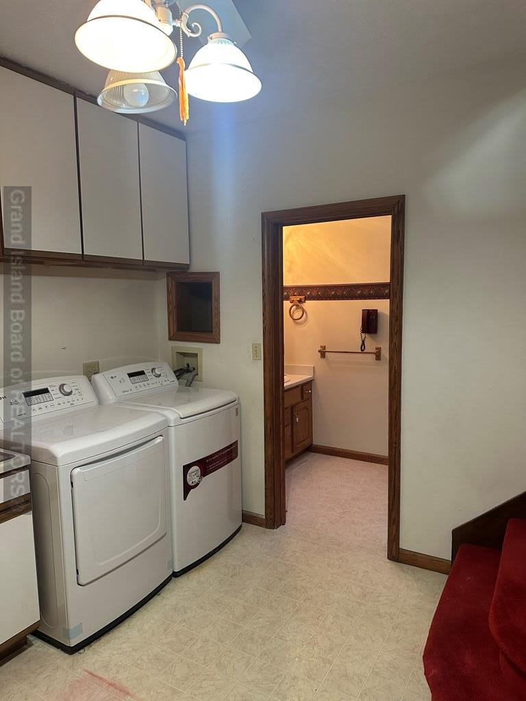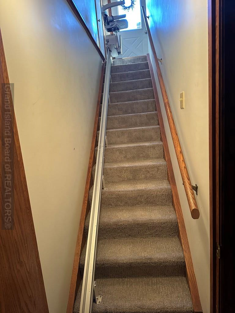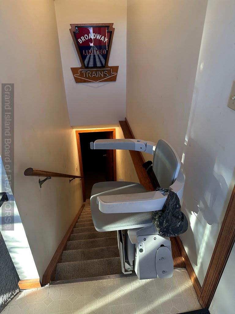 Corner lot. 4 bedroom, 1 1/2 story home in a quiet neighborhood on a tree-lined street. Attached double car garage. Wheelchair-accessible ramps in the garage to the door leading to the interior of the home. Stair lift from the main level to the basement. Main floor laundry room with washer and dryer.
