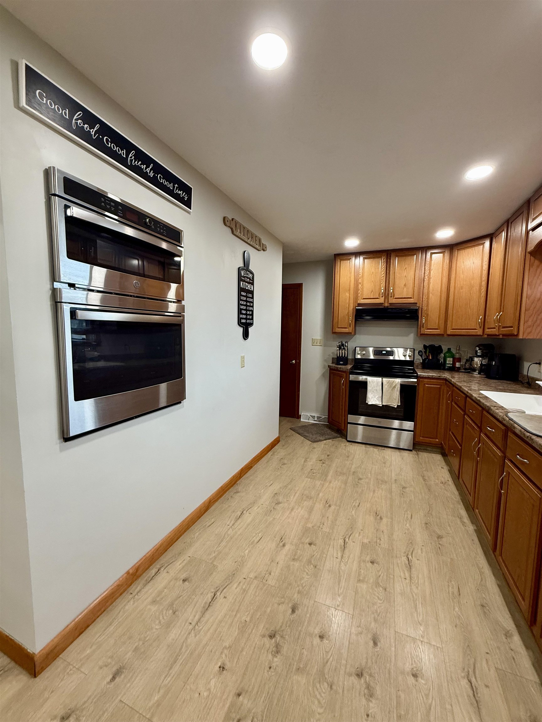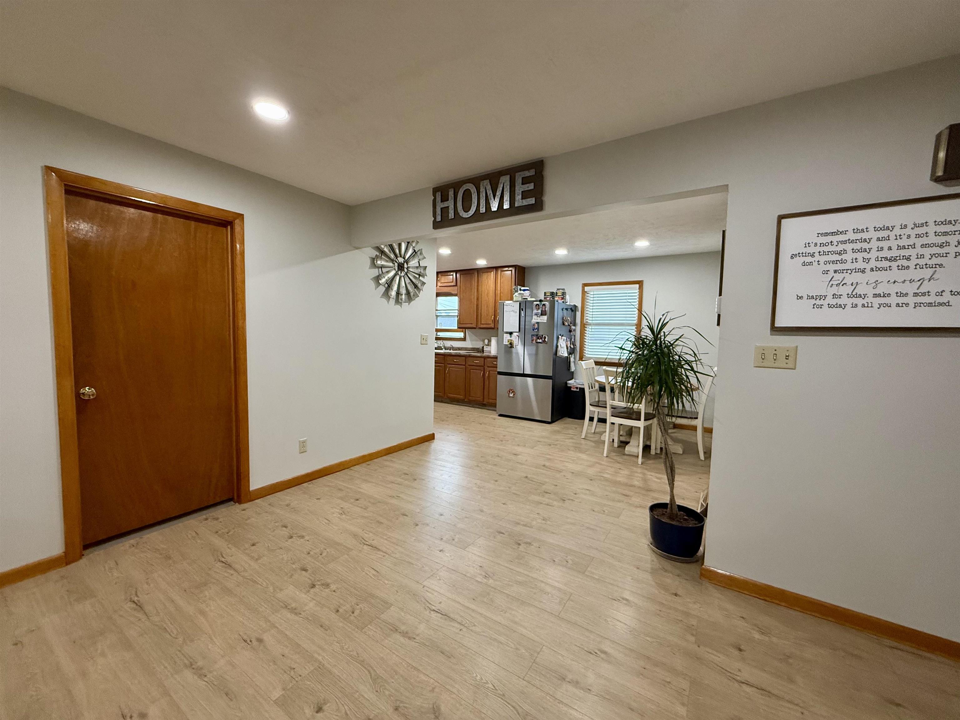 Small Town Living! Check out this 3 bedroom, 2 bathroom home, which offers an eat-in kitchen, updated appliances, new flooring on the main floor, fresh interior paint, built-in closets, main floor laundry, large family room, canning storage, and a non-conforming room, plus so much more! The home is situated on a large fenced-in lot and features underground sprinklers, an attached 1 car garage, 2 sheds, a garden area, and a deck. Seller prefers a June 1 closing. Call for a showing today!