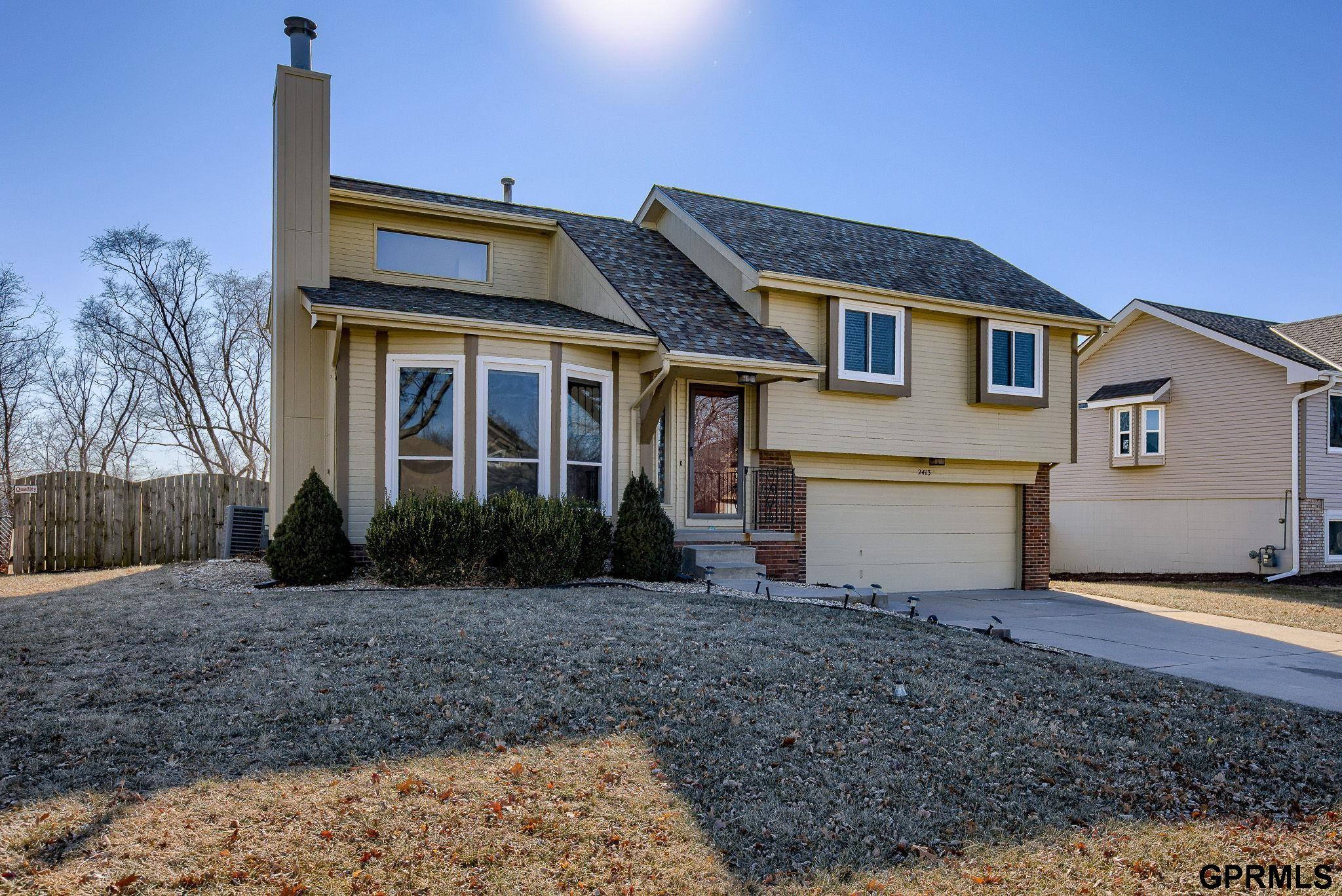 Welcome home to this multi-level gem in Glenwood Hills, one of Papillion’s most sought-after neighborhoods. Offering an ideal mix of comfort, value, and convenience, this move-in-ready home features soaring 9+ foot ceilings, a cozy gas fireplace, and an open, airy layout. With 3 bedrooms, 2 bathrooms, and a 2-car attached garage, it has everything you need. Enjoy added privacy with no rear neighbors, along with mature trees that create a peaceful, scenic setting.