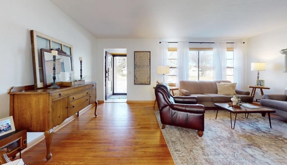 Absolutely breathtaking from the moment you arrive, this property welcomes you with undeniable charm as you pull into the driveway and approach the front door. A rare find, this home features a beautiful living room that flows seamlessly into the dining area, creating an inviting space for everyday living and entertaining. You’ll love the kitchen, highlighted by a stunning wood-accent ceiling, with all appliances included washer and dryer stay as well. The main level offers three bedrooms and one fully remodeled full bathroom. The finished basement showcases a farmhouse-modern style with beautiful wood beams in the living area, a non-conforming bedroom, an additional bathroom, and a large storage room. Step outside to enjoy the fully fenced backyard and concrete patio perfect for grilling and relaxing. So much has been done to this home, including a brand-new roof installed in 2025. This move-in-ready property truly checks all the boxes.