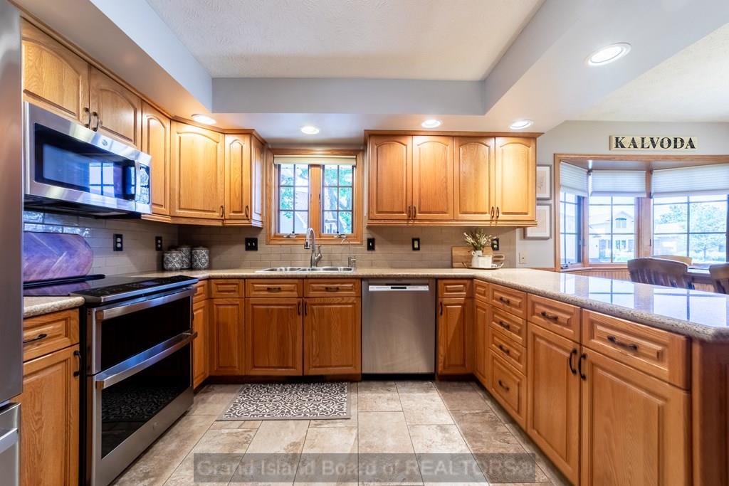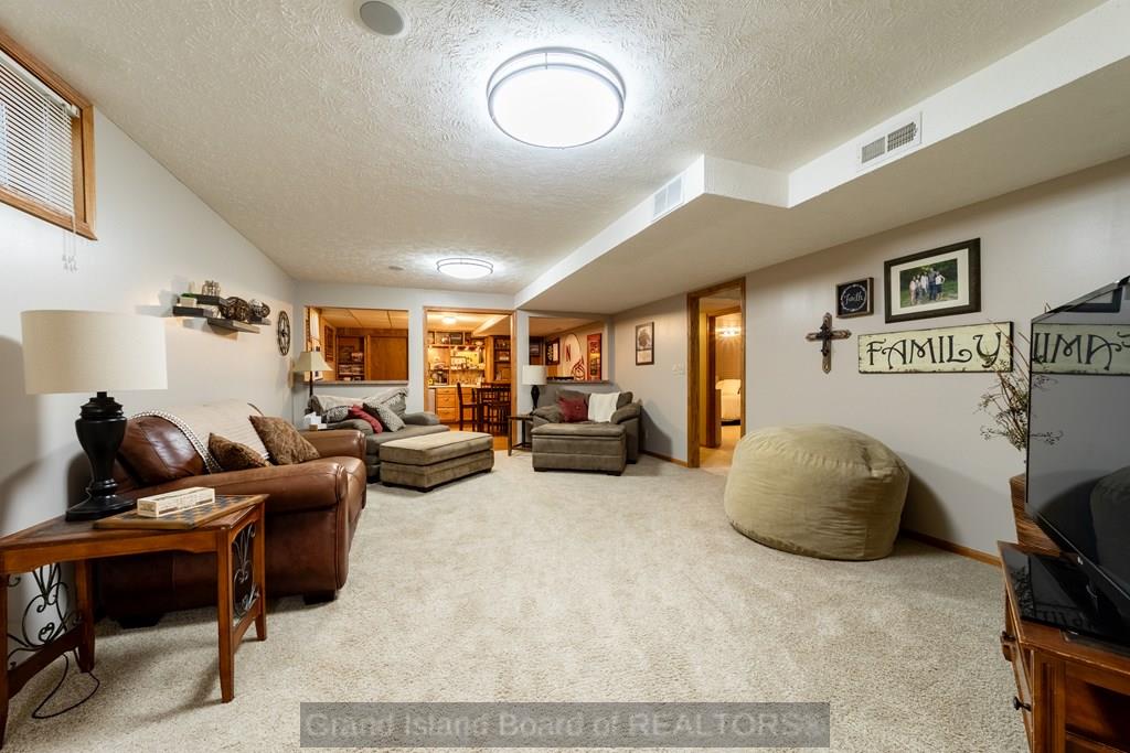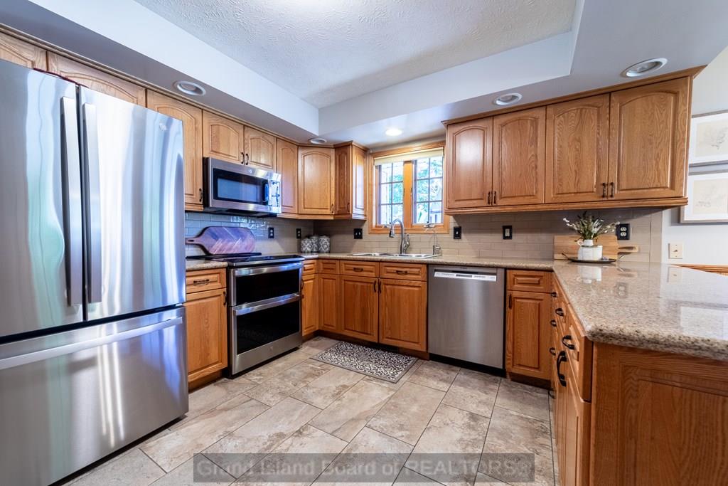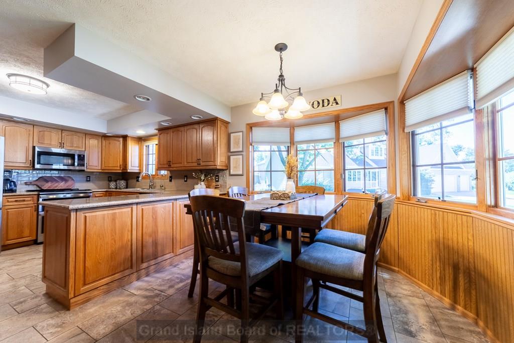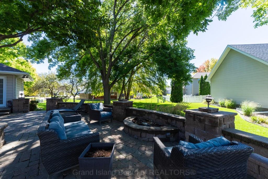 Spacious home that is move-in ready with 5 bedrooms, 3.5 baths, and 2 family rooms - including a lower-level family room with a bar area. You'll also find two bonus rooms and two generous storage rooms in the basement, and an impressive 1,592 sq ft stone patio, with fireplace and grill, stretching across the back of the home. This home sits on a large corner lot on a cul-de-sac. Conveniently located near Stolley Park Elementary and Riverside golf club, this property combines comfort, function, and style for every stage of life.
