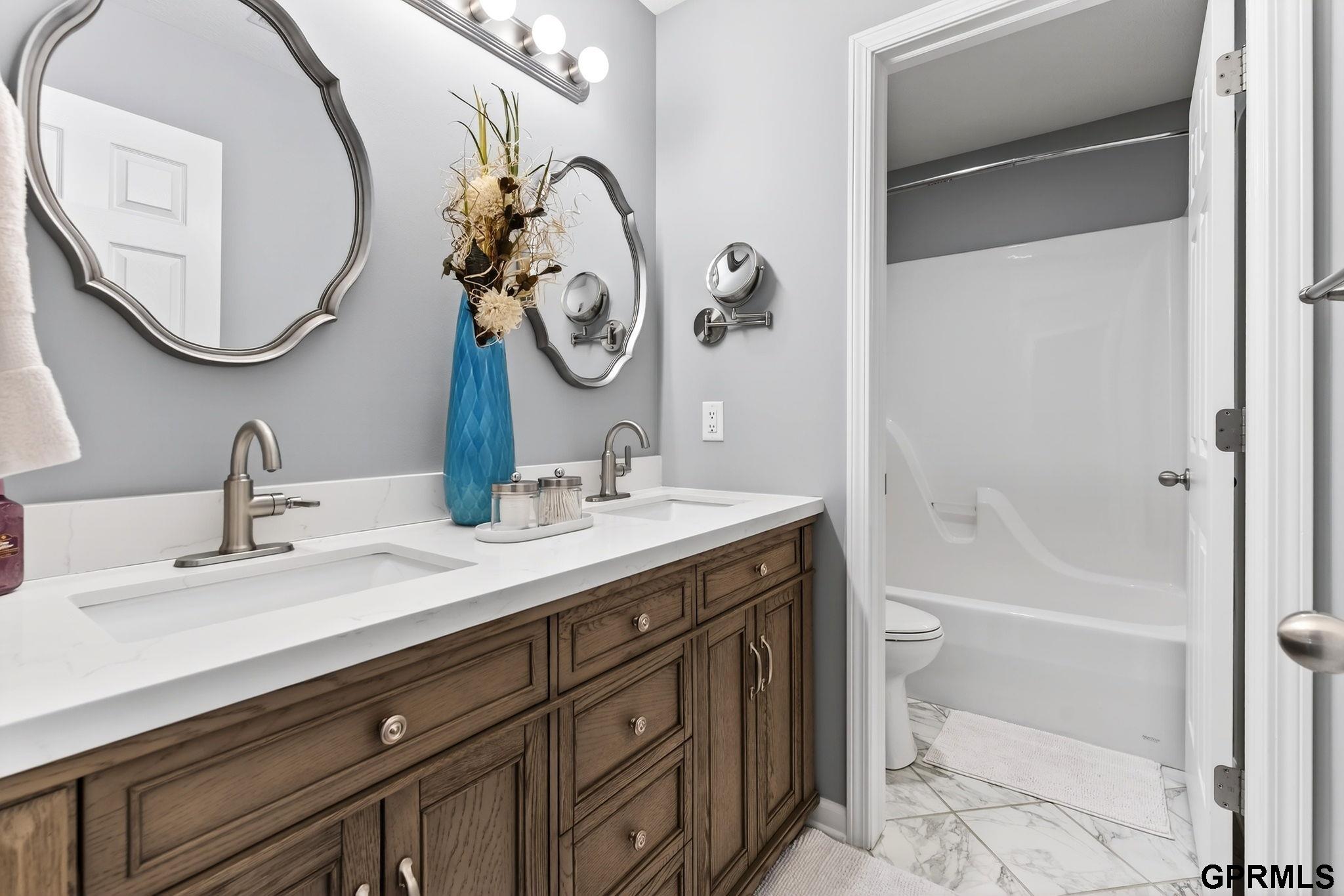 BEAUTIFULLY updated two-story home in desirable Shadow Glen featuring 5 bedrooms and 4 bathrooms! The inviting main floor offers a STUNNING two-story entry, formal sitting room, and a SPACIOUS living room with custom built-ins and a cozy gas fireplace. You’ll also find a dining area, kitchen with GRANITE countertops and stainless steel appliances, convenient main-floor laundry, and a half bath. Upstairs, the primary suite features a walk-in closet and a luxurious full bathroom with a beautiful walk-in shower, WHIRLPOOL tub, and double sinks. Three additional bedrooms complete the second level, all with ceilings fans. The finished basement provides even more living space with an additional bedroom and family room! Step outside to enjoy the backyard deck overlooking a fully fenced yard and patio. Additional highlights include a heated 3-car garage, all LED lighting throughout, and a prime location close to shopping, dining, and everyday conveniences.