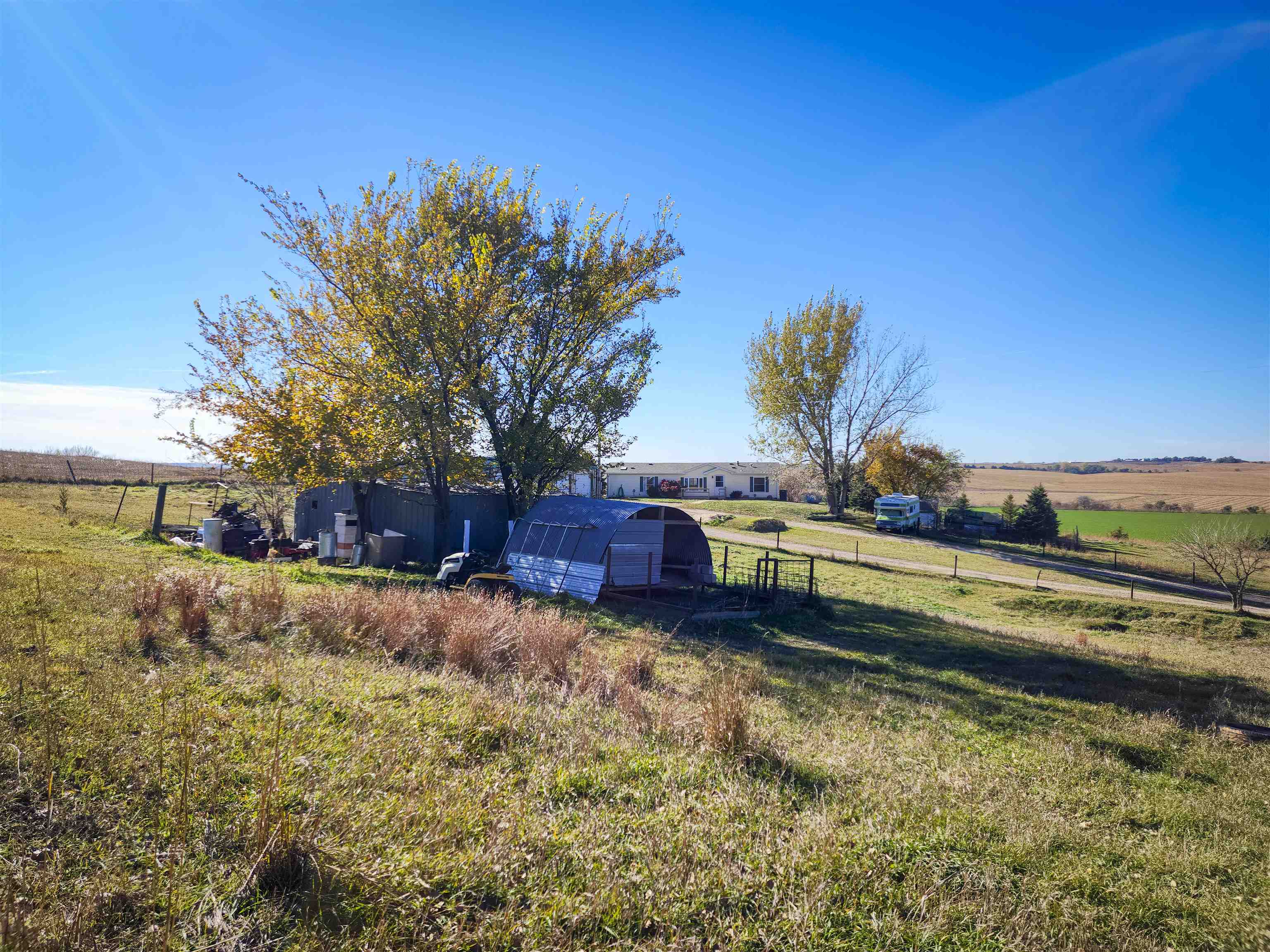 Perched gracefully atop a gentle hill, this charming 4-bedroom, 3-bath, one-owner acreage, captures the essence of country serenity with mesmerizing views of sunsets and storms rolling across the horizon. Set on 3.73 acres of natural beauty, this home welcomes you with warmth and functionality—featuring main-floor laundry, a private office space or nursery, along with 2 other bedrooms and a lovely primary suite complete with a private bath and walk-in closet. Nearly all windows have been updated, allowing natural light to dance through the home and frame the breathtaking scenery. The partially finished walkout basement offers a bonus room and plenty of storage, while the newer roof and 2,500-gallon septic provide peace of mind. Choose between electric heat or the inviting warmth of a propane stove for year-round comfort. Outdoors, discover an established garden, a variety of fruit bushes, and a couple of asparagus patches—ready to reward your green thumb. A 3-car detached garage, and additional outbuildings complete this idyllic retreat, where every sunset feels like a painting and every storm tells a story. Claim, your next chapter, today!