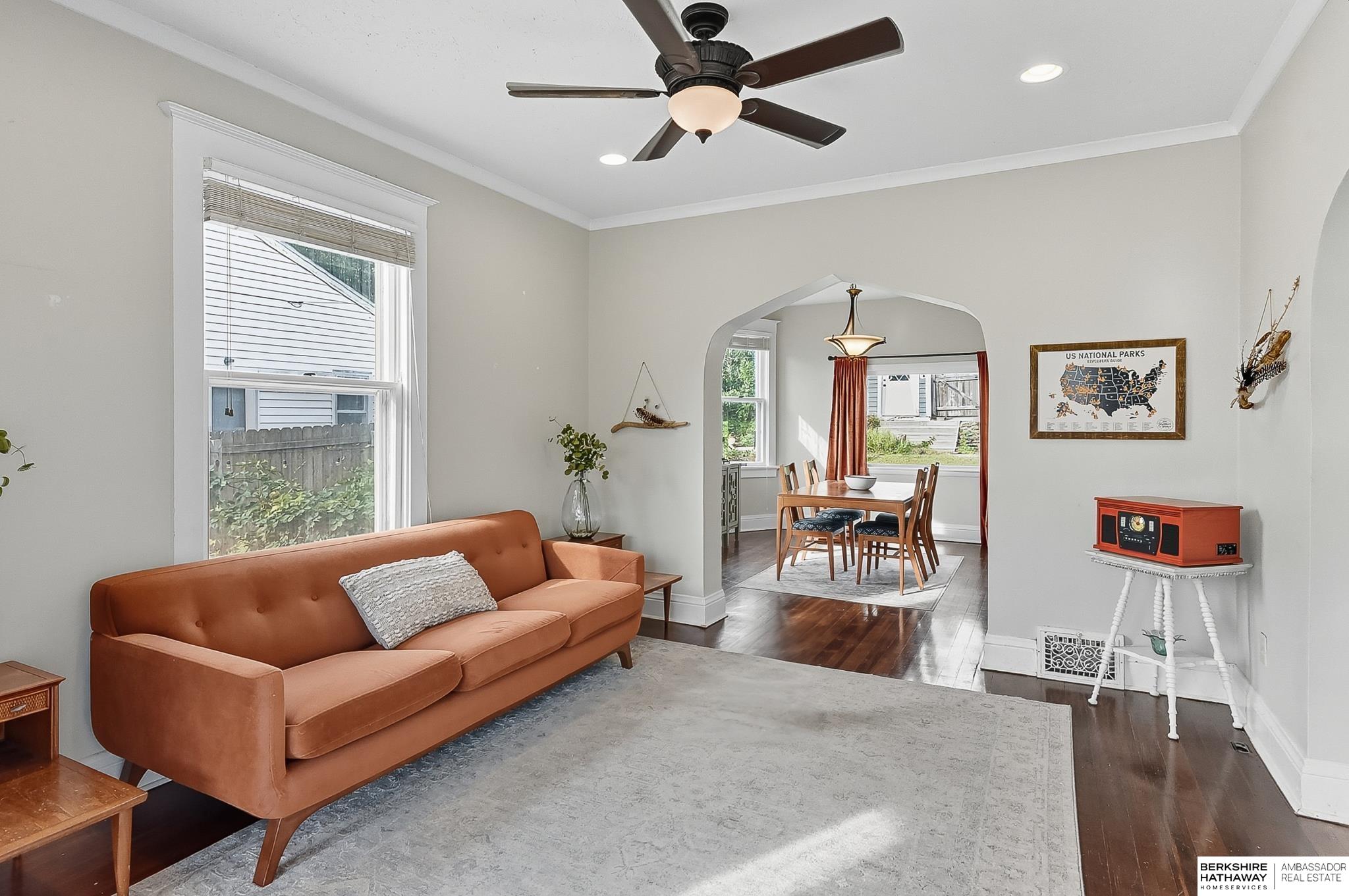 Welcome to this beautifully maintained 2-story gem located in the vibrant heart of Benson! From the moment you arrive, you'll be captivated by the large covered front porch, perfect for morning coffee or evening relaxation. Step inside to a stunning foyer that flows effortlessly into a spacious living & dining area, ideal for both everyday living & entertaining. Gorgeous hardwood floors run throughout the main level, adding warmth and character to every room. The updated kitchen is a chef's dream, featuring modern finishes and plenty of counter space, while large windows throughout the home flood the interior with natural light. Head downstairs to a finished basement designed for entertaining, whether you're hosting game nights, movie marathons, or just need extra space to unwind. Outside, enjoy your own private backyard oasis, perfect for summer BBQs or peaceful evenings under the stars. A detached 2-car garage and an additional parking pad provide plenty of off-street parking.