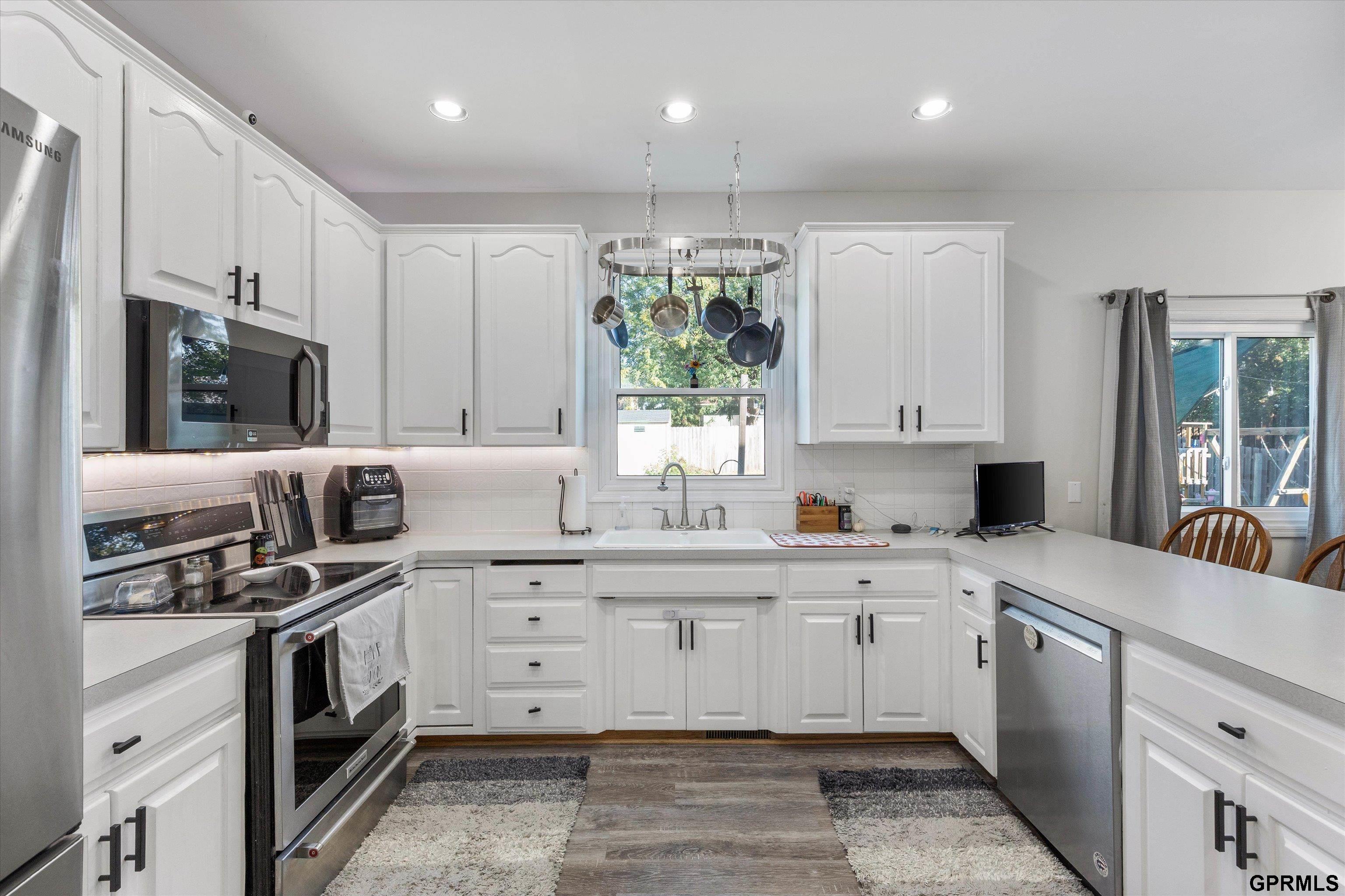 Wow! You'll love this open concept 2 Story wiith over 2,600 sq ft of updated finishes and modern style. Enter the foyer area where you'll be greeted by a large living room that open into the spacious, updated kitchen where you'll be sure to enjy all the SS appliances, gorgeous counters and newer flooring. You'll appreciate the abundance of natural light throughout the kitchen, dining area and into the large family room with 9+ ceiling and fireplace. Laundry is available on the main floor along with a convenient 1/2 bath. With 3 bedrooms on the upper level, you'll find size and comfort the whole family can enjoy. The primary suite offers walk-in closet and vaulted ceilings along with a bathroom with whirlpool tub, double sinks and large shower. In the lower level you'll find ample space for entertaining with a game room and playroom/office. This Bellevue gem has everything that you've been waiting for. PRE-INSPECTED!! Schedule your showings today!
