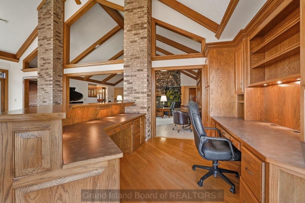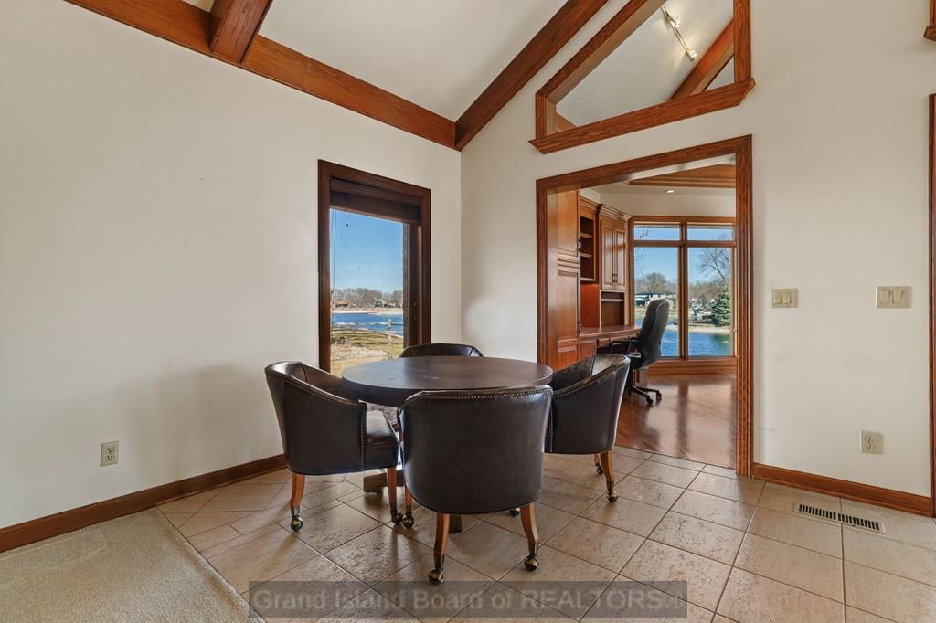 **Welcome to 2617 Lakewood Dr, Grand Island, NE 68801** Discover lakeside living at its finest in this stunning all-brick custom ranch perched on the shores of Brentwood Lake. Built in 1983, this exceptional 3-bedroom, 3-bathroom home offers nearly 3,900 sq ft on the main level plus a 728 sq ft basement, delivering generous space for living and entertaining. The dramatic great room features soaring vaulted ceilings and a warm fireplace, while the enchanting sunroom provides breathtaking lake views. Enjoy both formal and informal dining spaces, a west-facing orientation that brings cooling evening shade, and a spacious patio with a pergola perfect for outdoor gatherings. The 3-car garage adds exceptional convenience. Located just minutes from Sothman Park and everyday conveniences like Hy-Vee, this lakefront gem blends serene natural beauty with accessible city living. Schedule your private showing today!
