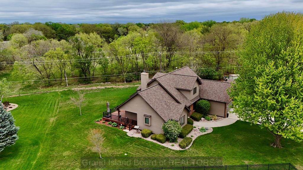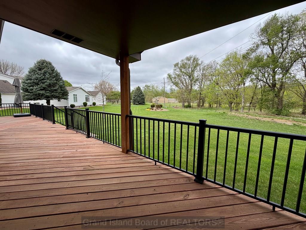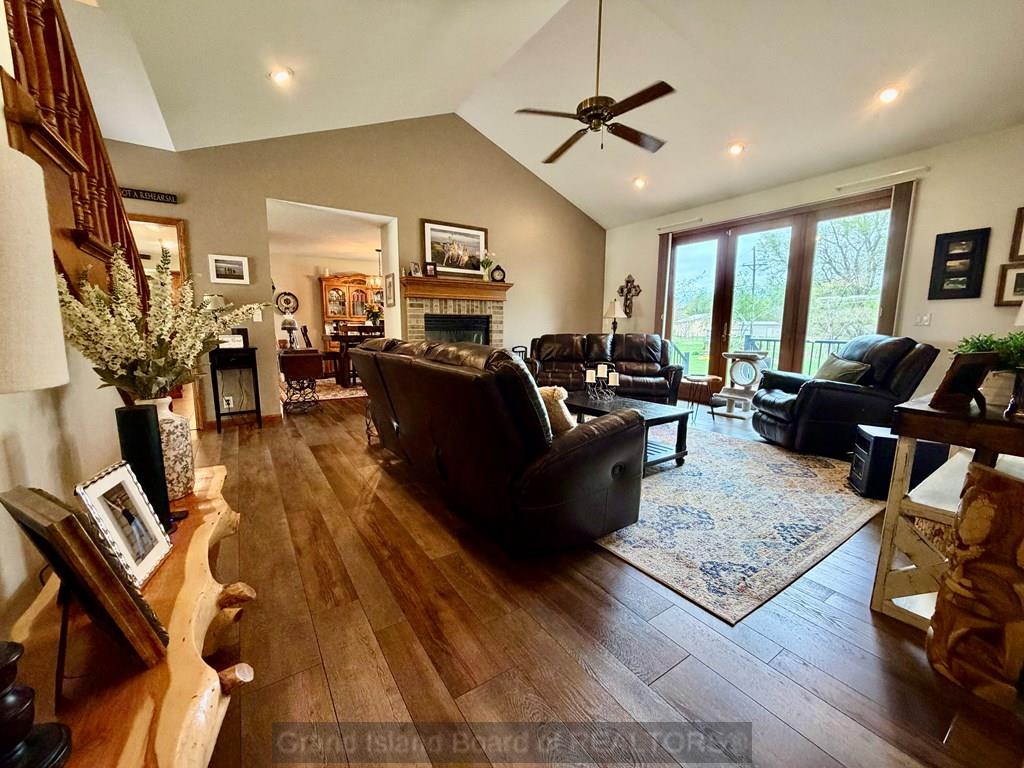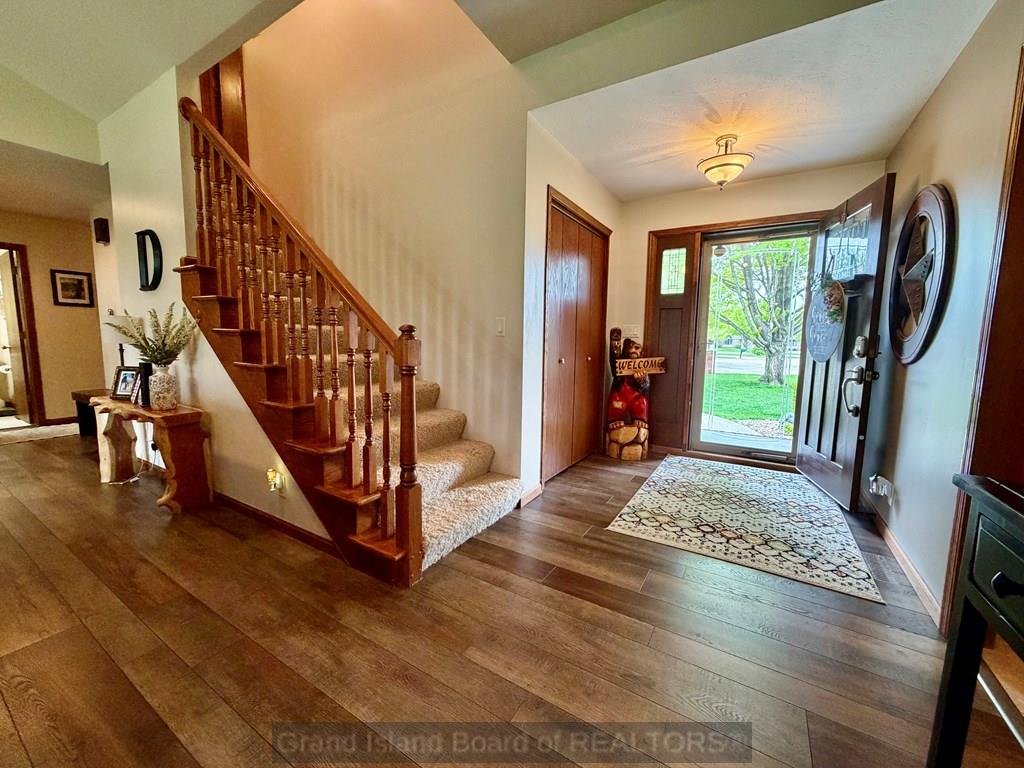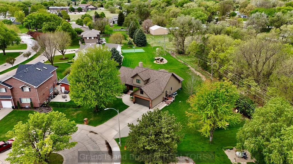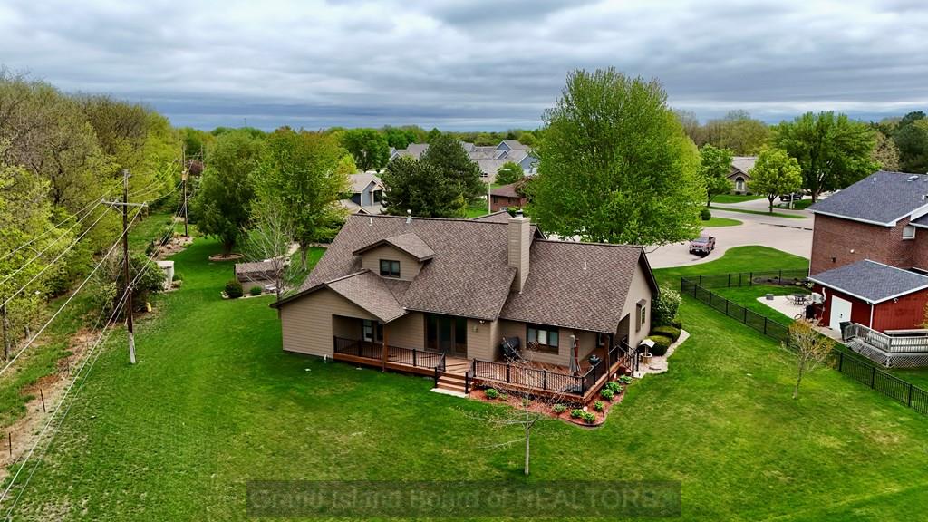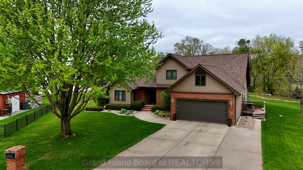 Welcome to this beautifully maintained home located on the south side of Grand Island, offering both privacy and charm with a spacious wraparound deck. Nestled in a quiet cul-de-sac, this property is conveniently situated near Riverside Golf Club and Stolley Park Elementary School, and is surrounded by a neighborhood ideal for evening walks and bike rides. The home features a functional and inviting layout, perfect for both everyday living and entertaining. The main level includes a generously sized kitchen, formal dining room, and a living area highlighted by vaulted ceilings and calming views. The primary suite is conveniently located on the main floor and offers a spacious walk-in closet and private bath. Upstairs, the additional bedrooms are complemented by a large finished bonus room, providing flexibility for a variety of uses. The basement offers two separate living areas, creating excellent options for recreation, relaxation, or additional entertaining space.