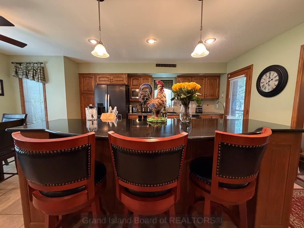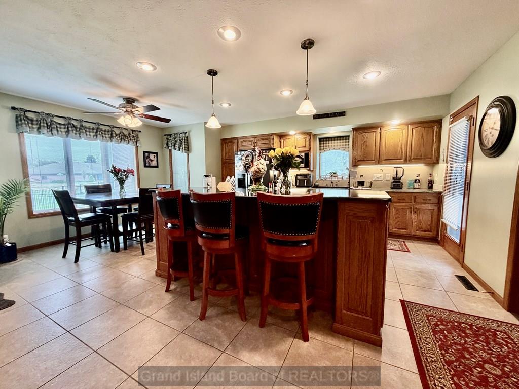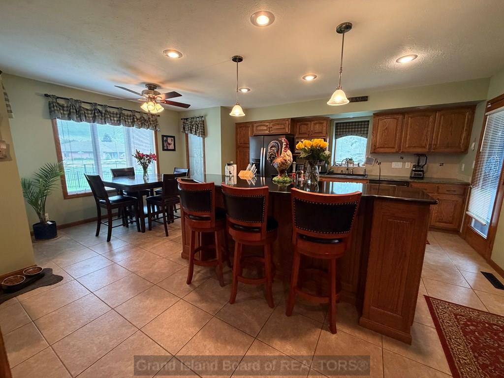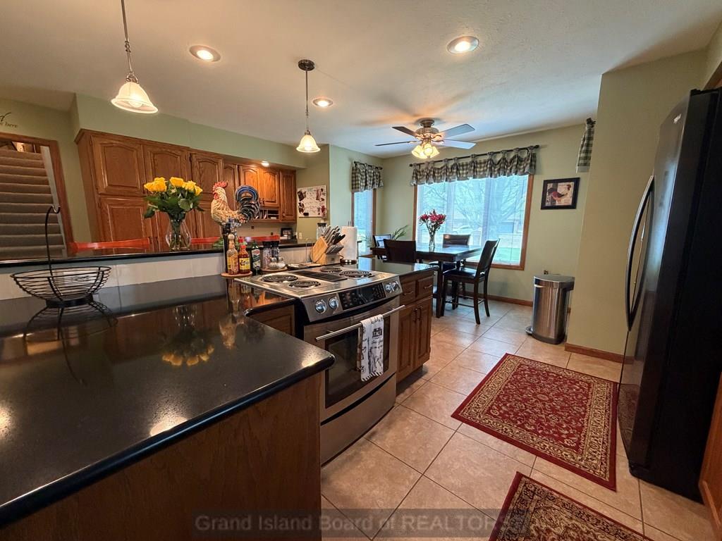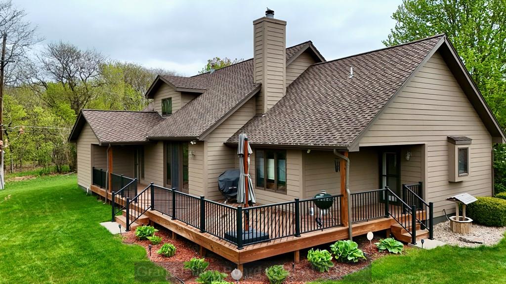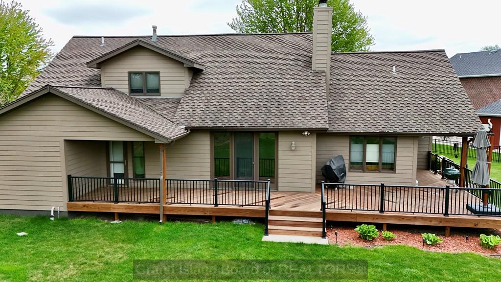 Welcome to this beautifully maintained home located on the south side of Grand Island, offering both privacy and charm with a spacious wraparound deck. Nestled in a quiet cul-de-sac, this property is conveniently situated near Riverside Golf Club and Stolley Park Elementary School, and is surrounded by a neighborhood ideal for evening walks and bike rides. The home features a functional and inviting layout, perfect for both everyday living and entertaining. The main level includes a generously sized kitchen, formal dining room, and a living area highlighted by vaulted ceilings and calming views. The primary suite is conveniently located on the main floor and offers a spacious walk-in closet and private bath. Upstairs, the additional bedrooms are complemented by a large finished bonus room, providing flexibility for a variety of uses. The basement offers two separate living areas, creating excellent options for recreation, relaxation, or additional entertaining space.