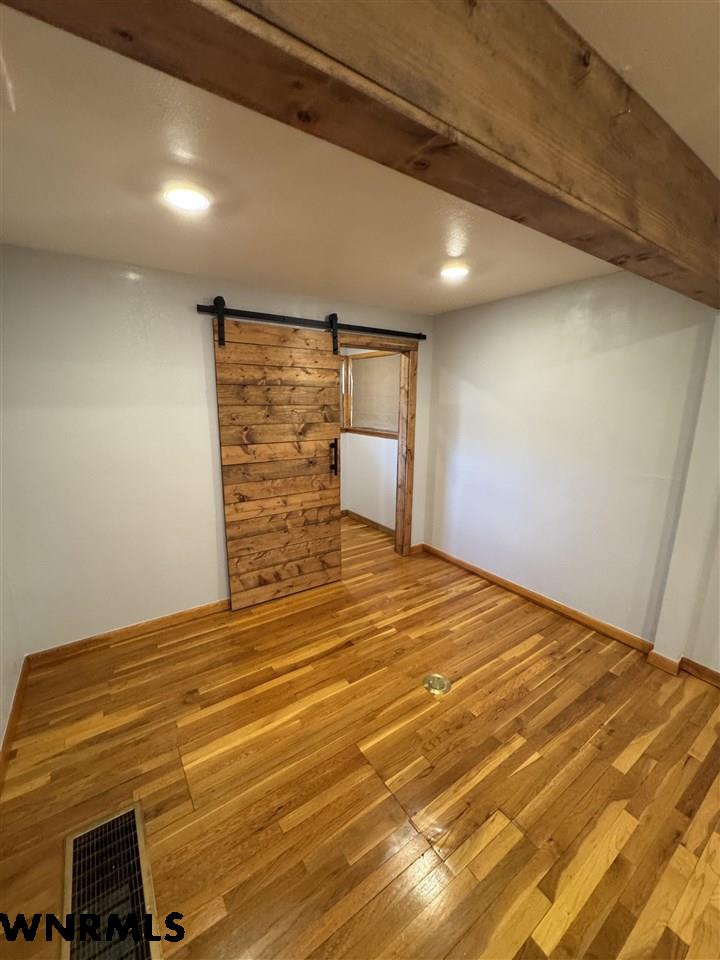 Updated ranch-style home offering comfort, quality, and thoughtful upgrades throughout! The main level features beautiful original hardwood floors, a spacious bedroom and full bath, plus a private primary suite complete with its own bath and walk-in closet. The kitchen is a standout with custom cabinetry, solid surface countertops, and top-of-the-line appliances which are all included. The finished basement adds even more living space with a large family room featuring an electric fireplace, an additional bedroom with attached full bath with heated floors, a non-conforming bedroom or office, and convenient laundry hookups. Outside, enjoy the oversized 2-car detached garage and extra space to suit your needs. This move-in ready home blends classic charm with modern amenities. Seller has an assumable VA loan at low interest rate that can be assumed by qualified buyers. More photos coming soon.