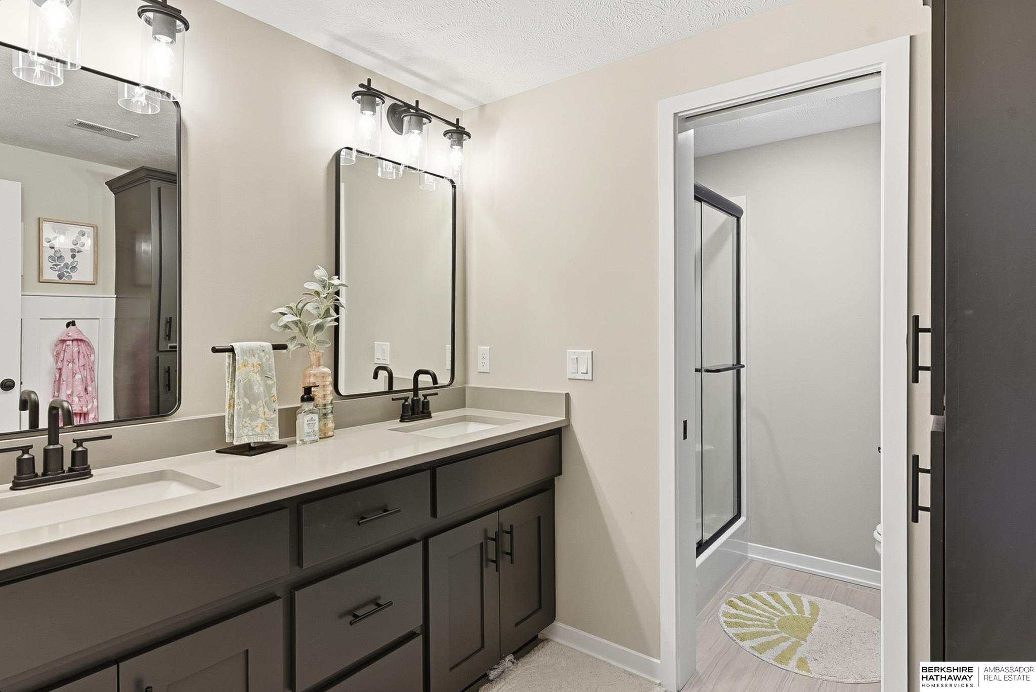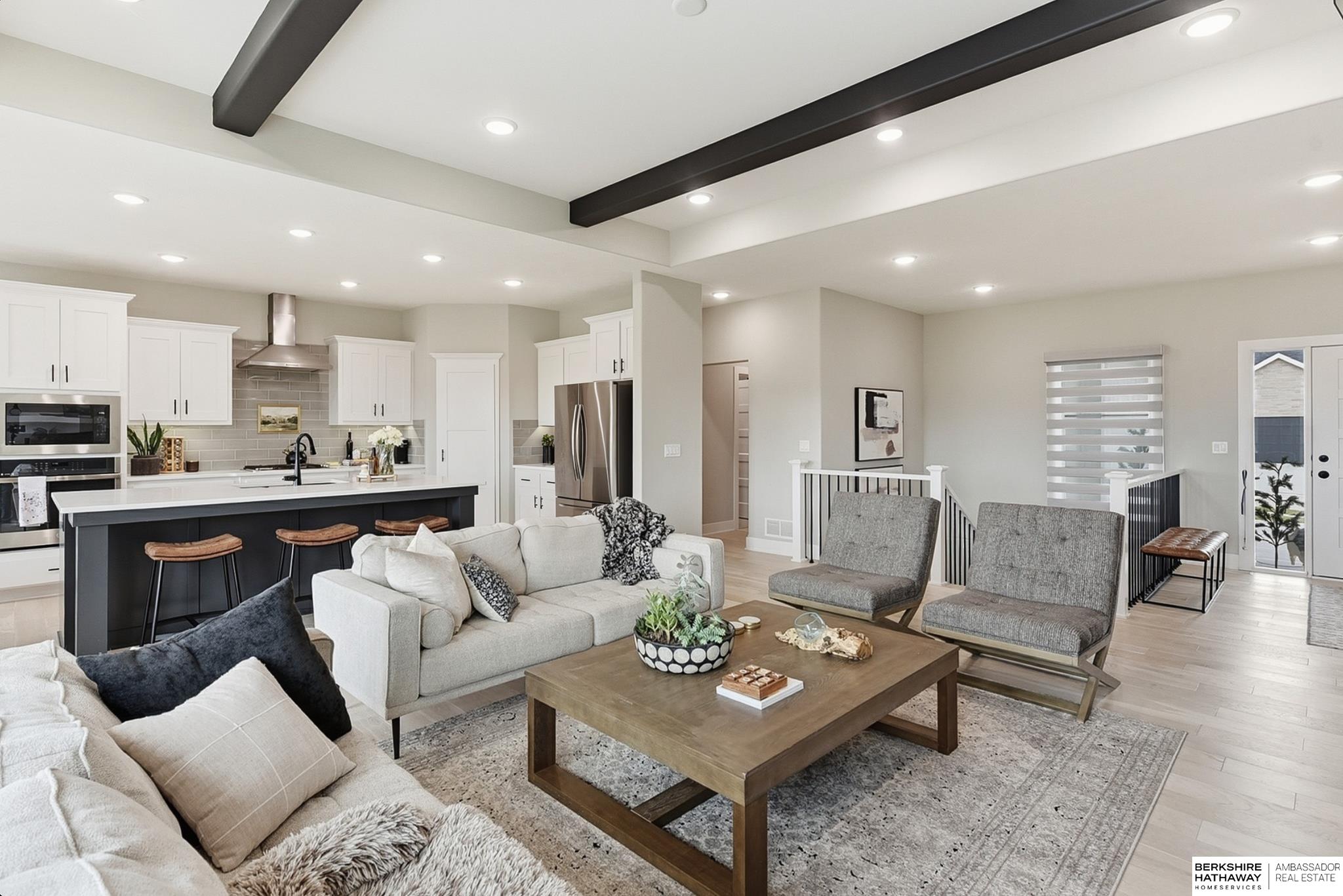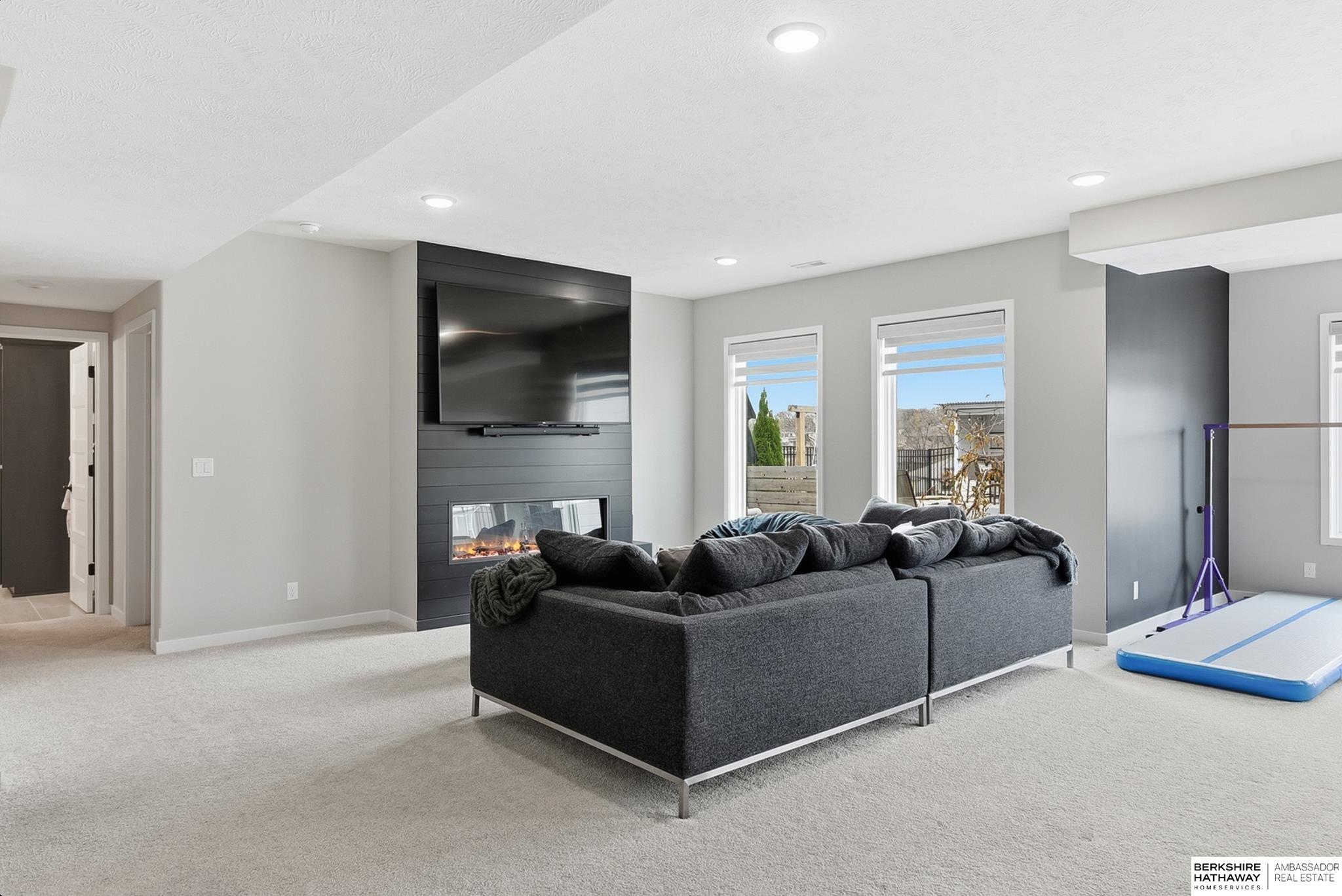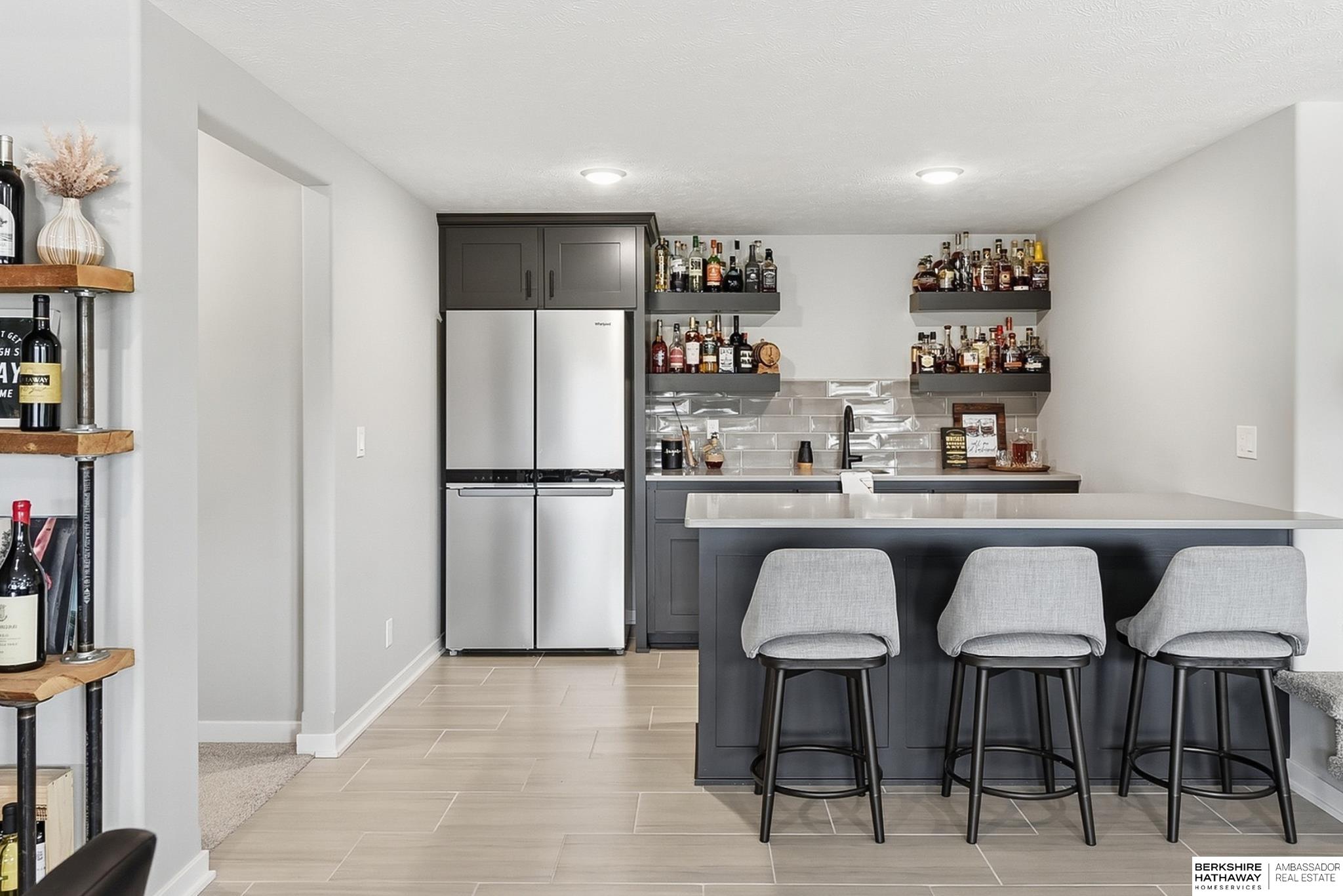 Located in the Elkhorn North School District this professionally designed walkout home has an inviting open-concept, blending modern elegance comfort & entertainment-ready amenities. Main level creates a warm & welcoming atmosphere w/ spacious great room & floor-to-ceiling stone fireplace. The kitchen boasts custom maple cabinetry, quartz, ceramic tile & walk-in pantry + 3 beds & 2 beautifully designed baths. Primary suite has spa-like bath w/ walk-in tile shower & dual vanity. The LL is purposefully designed for stylish hosting & everyday enjoyment with 2 beds + 3/4 bath, rec room w/ modern fireplace, stylish bar + a dedicated theater room. Walkout design provides effortless access to the beautiful outdoor retreat featuring a pool, built-in bar, & an expansive paver patio with fire pit, an ideal setting for gatherings that flow effortlessly from day to night. A spacious 3-car garage, including a polyaspartic coded floor, adds convenience & functionality. Truly an exceptional property.