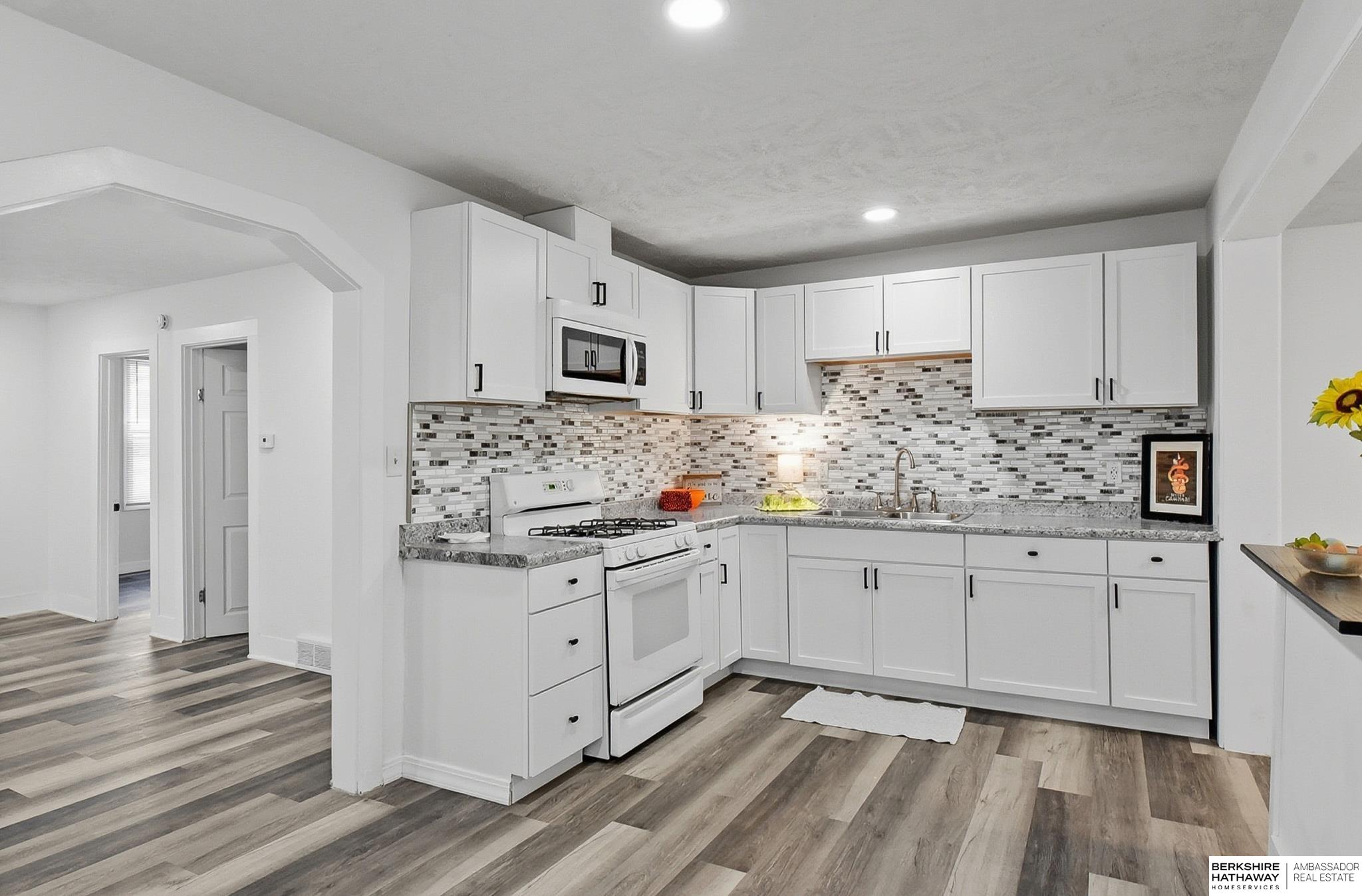 The best value in all of Bellevue. Two lot's with a one car garage. Plenty of room for all your toys on this flat double lot. Room to add on to the garage. Inside you have a ALL brand new kitchen, baths, flooring, fixtures and paint. The Lower level has a 3rd non conforming bedroom and bath plus a cedar lined closet. A cozy enclosed front porch is the added bonus. NOTE: check grade school - I think it's chandler view. NOTE: seller has never lived in the property.