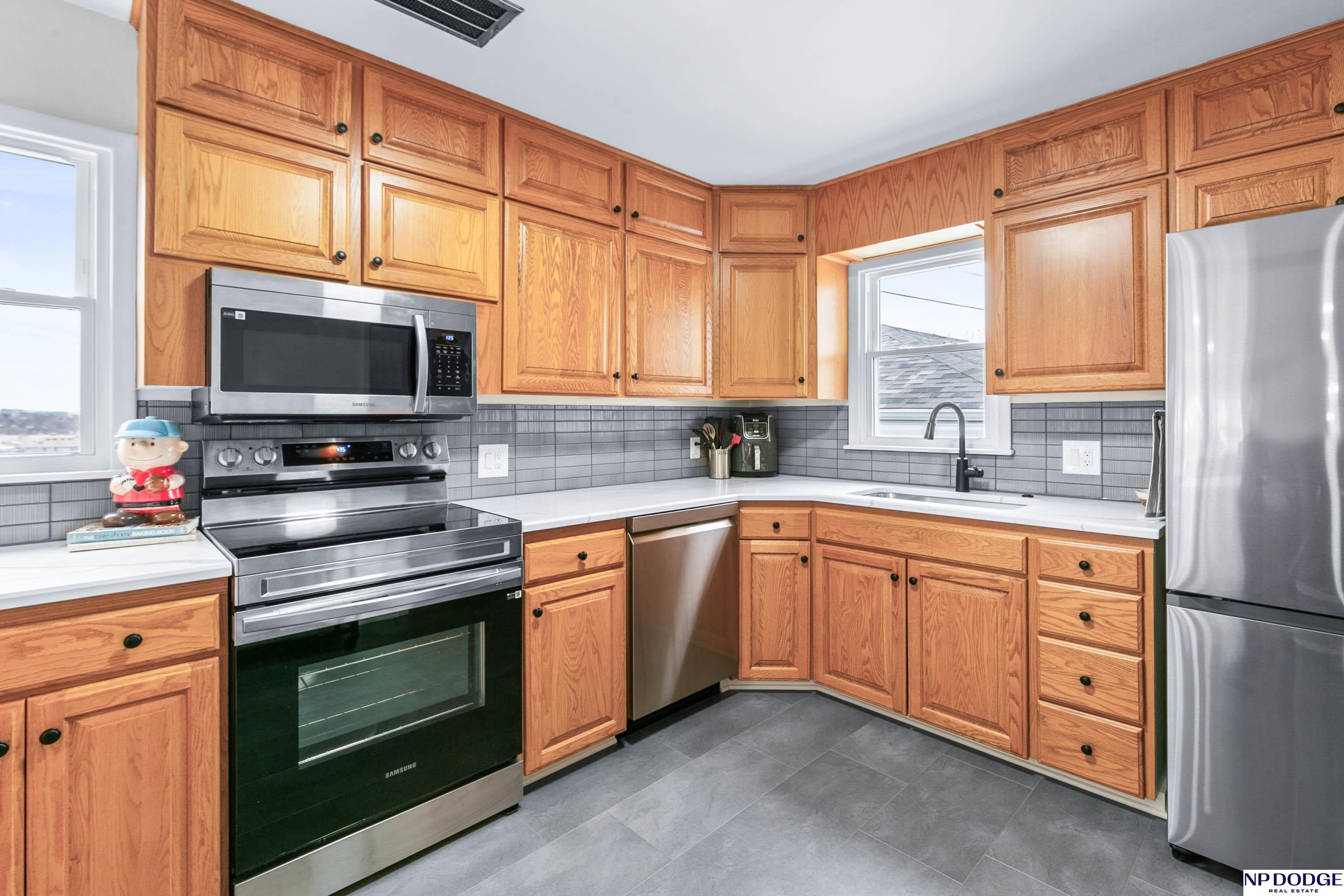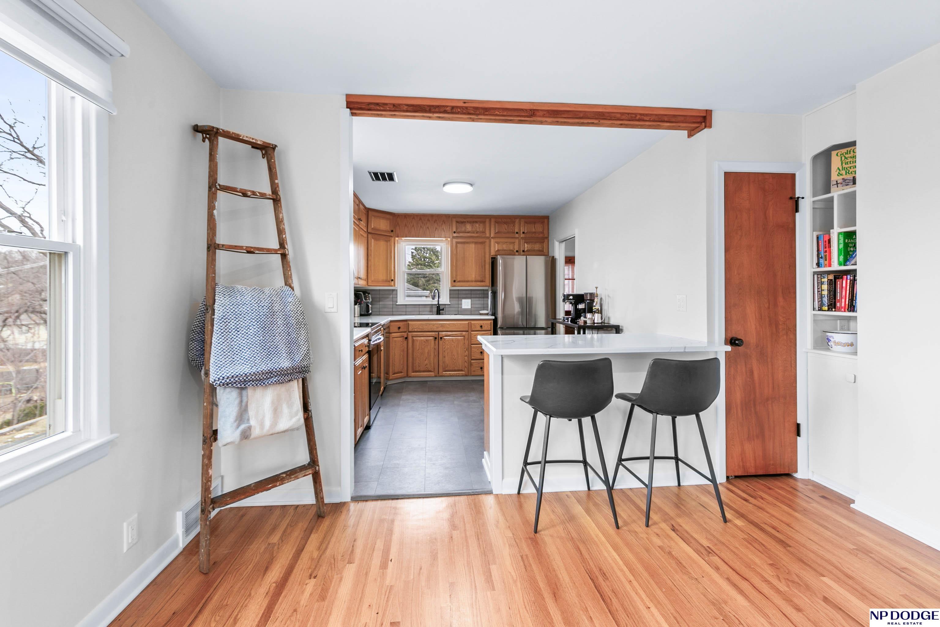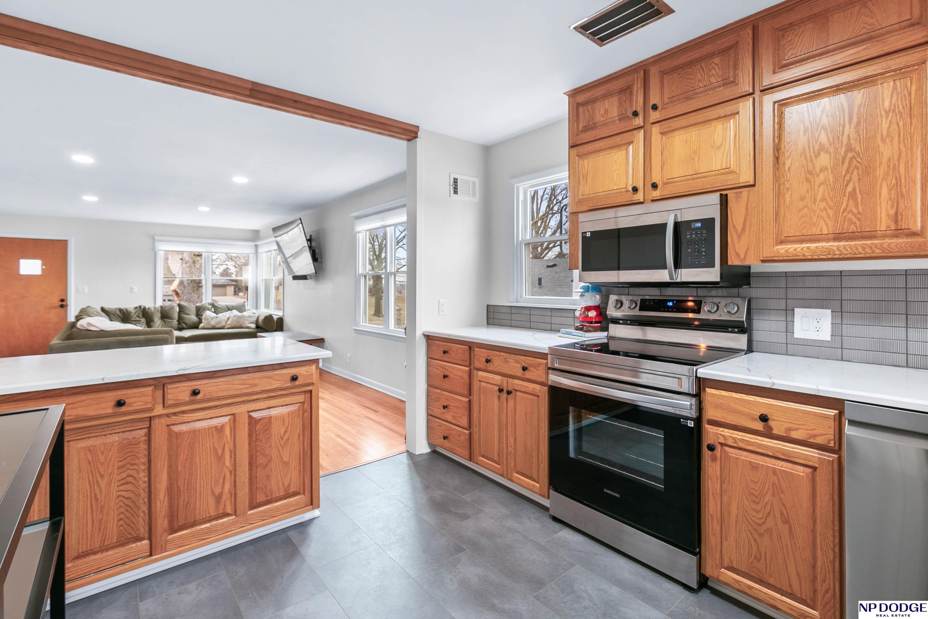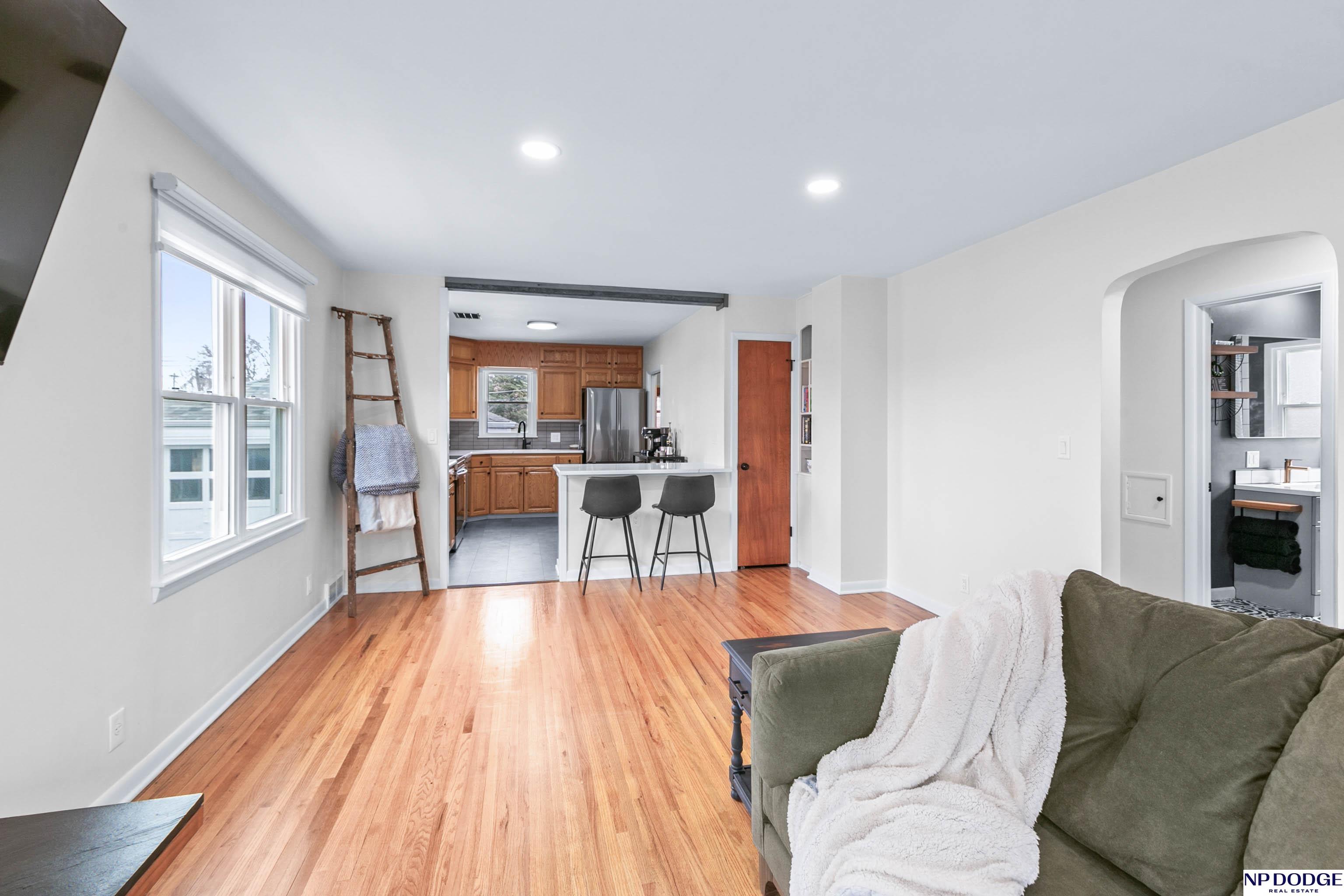 Classic charm meets modern style in this well kept mid-century ranch. Abundant natural lighting w/newer windows highlighting refinished original hardwood floors throughout the LR & bdrms. The fully renovated kitchen & bath include countertops & island, backsplash, ss appliances, trim, LVT flooring & newer updated cabinetry. New main bath offers a bright chic refresh w/new vanity, cabinetry, flooring, mirror, fixtures & more. The finished LL w/incredible versatility featuring rec room, newer carpet/lighting, 2nd kitchen & laundry. Brand NEW bath w/ ceramic tile shower, mirror, fixtures & finishes. Storage room & huge bonus room w/walk-in closet. Exterior upgrades include newer roof, steel siding, gutters & leaf guards. Enclosed sunroom overlooking a fully fenced yard. Rare heated 2-car garage, workshop & service pit offers exceptional flexibility (w/potential for tandem expansion to dbl/tandem) Stylish updates, functional space, & quality improvements throughout.