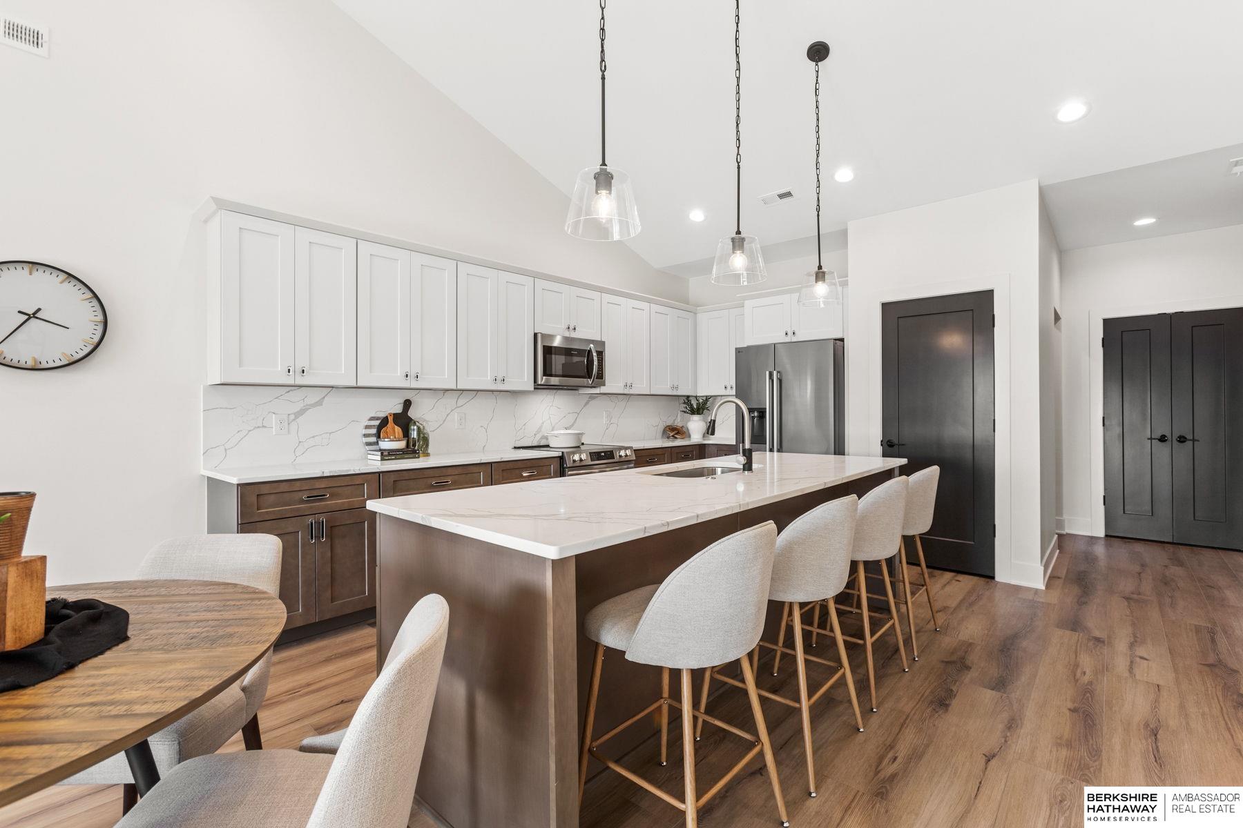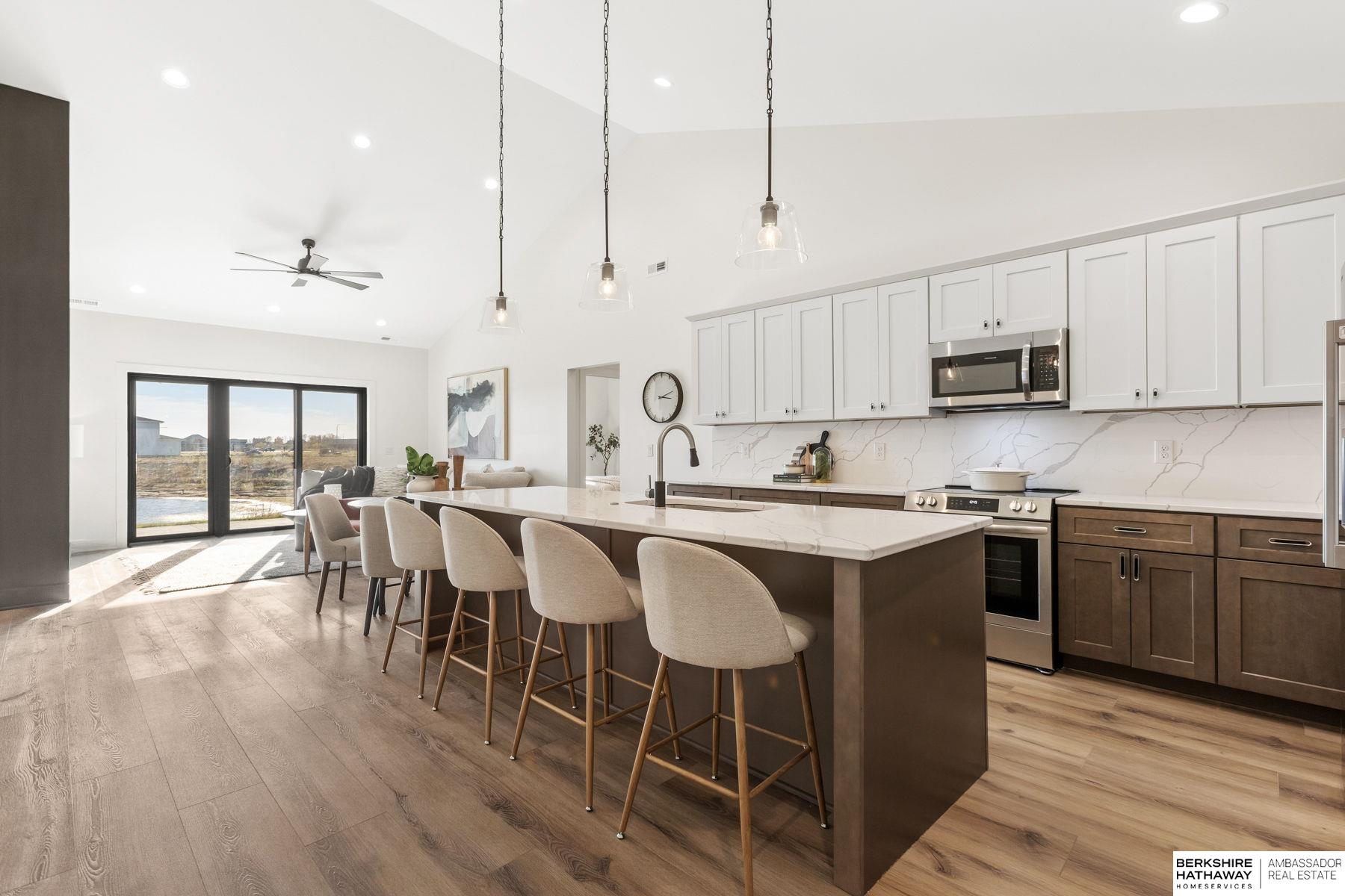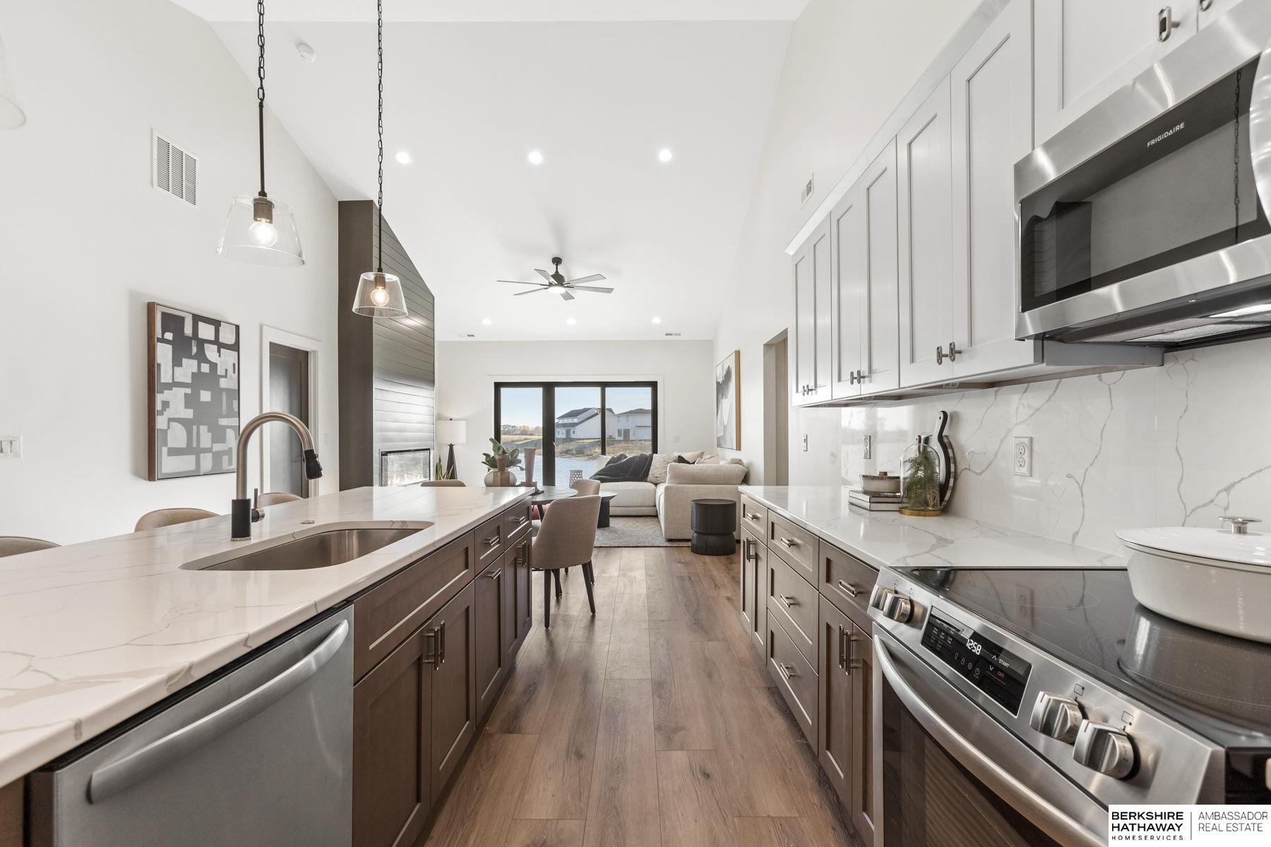 Experience effortless lake living in this stunning new-construction ranch townhome in Valley! This home blends high-end design with everyday convenience, offering three spacious bedrooms, including a luxe primary suite with magazine-worthy finishes, a beautifully designed en-suite, and an oversized walk-in closet that connects directly to the laundry room. The open-concept layout brings the kitchen, dining, and living spaces together to showcase a peaceful lake view, while moody yet modern finishes such as a quartz backsplash, soft-close cabinetry, and vaulted ceilings create a sophisticated yet inviting feel. With a RARE 3-car garage and totally maintenance-free living courtesy of the HOA covering lawn care, snow removal, and beach upkeep, you will have more time to relax and enjoy Stillwater Lake. A truly exceptional find in Valley, offering function, style, and a lock-and-leave lifestyle just steps from the water!