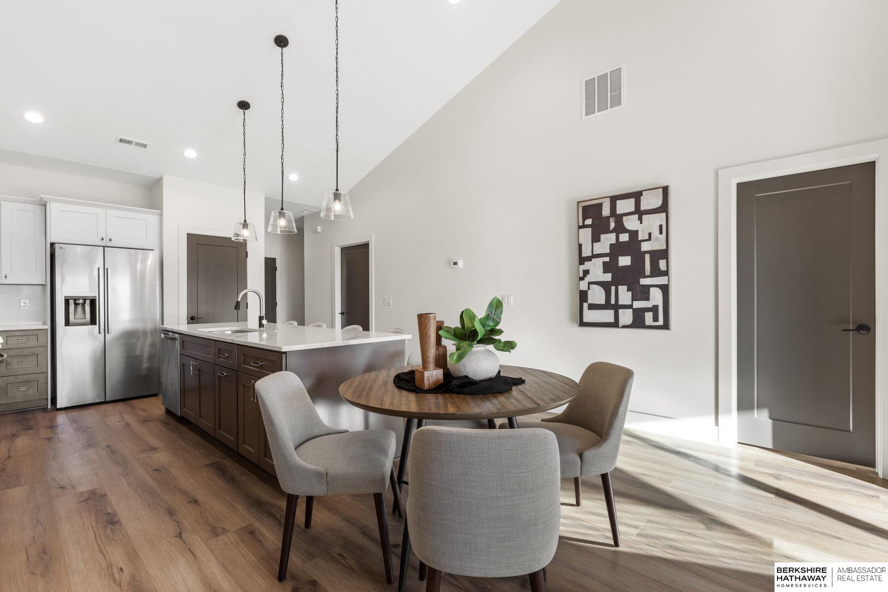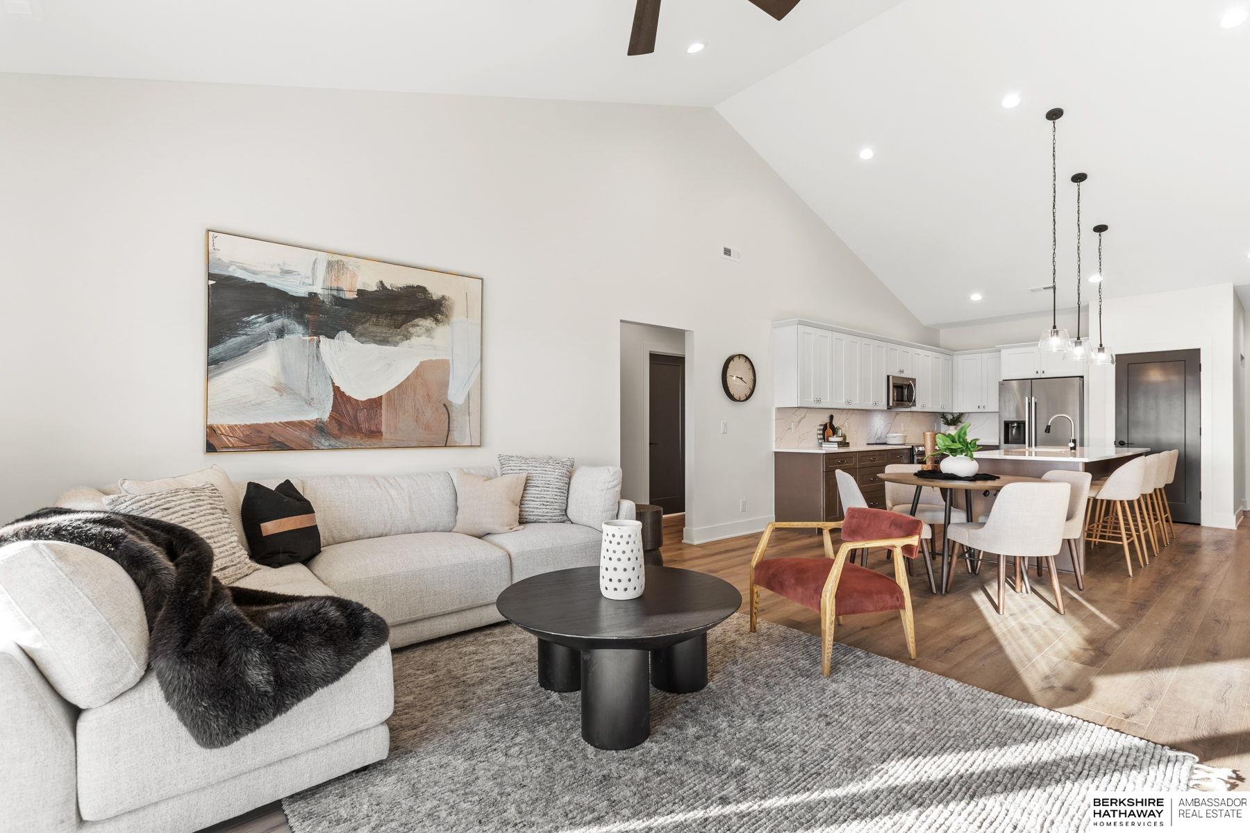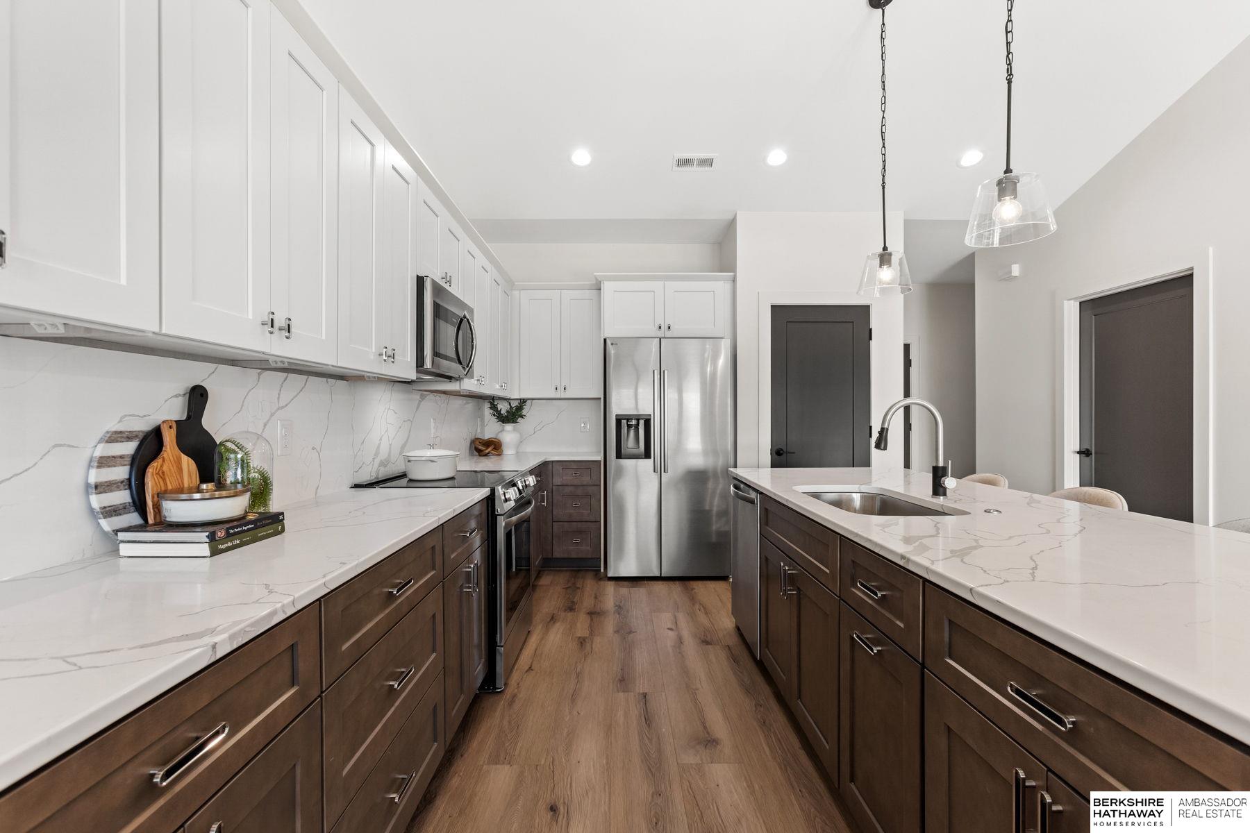 Experience effortless lake living in this stunning new-construction ranch townhome in Valley! This home blends high-end design with everyday convenience, offering three spacious bedrooms, including a luxe primary suite with magazine-worthy finishes, a beautifully designed en-suite, and an oversized walk-in closet that connects directly to the laundry room. The open-concept layout brings the kitchen, dining, and living spaces together to showcase a peaceful lake view, while moody yet modern finishes such as a quartz backsplash, soft-close cabinetry, and vaulted ceilings create a sophisticated yet inviting feel. With a RARE 3-car garage and totally maintenance-free living courtesy of the HOA covering lawn care, snow removal, and beach upkeep, you will have more time to relax and enjoy Stillwater Lake. A truly exceptional find in Valley, offering function, style, and a lock-and-leave lifestyle just steps from the water!