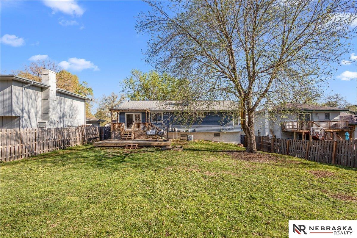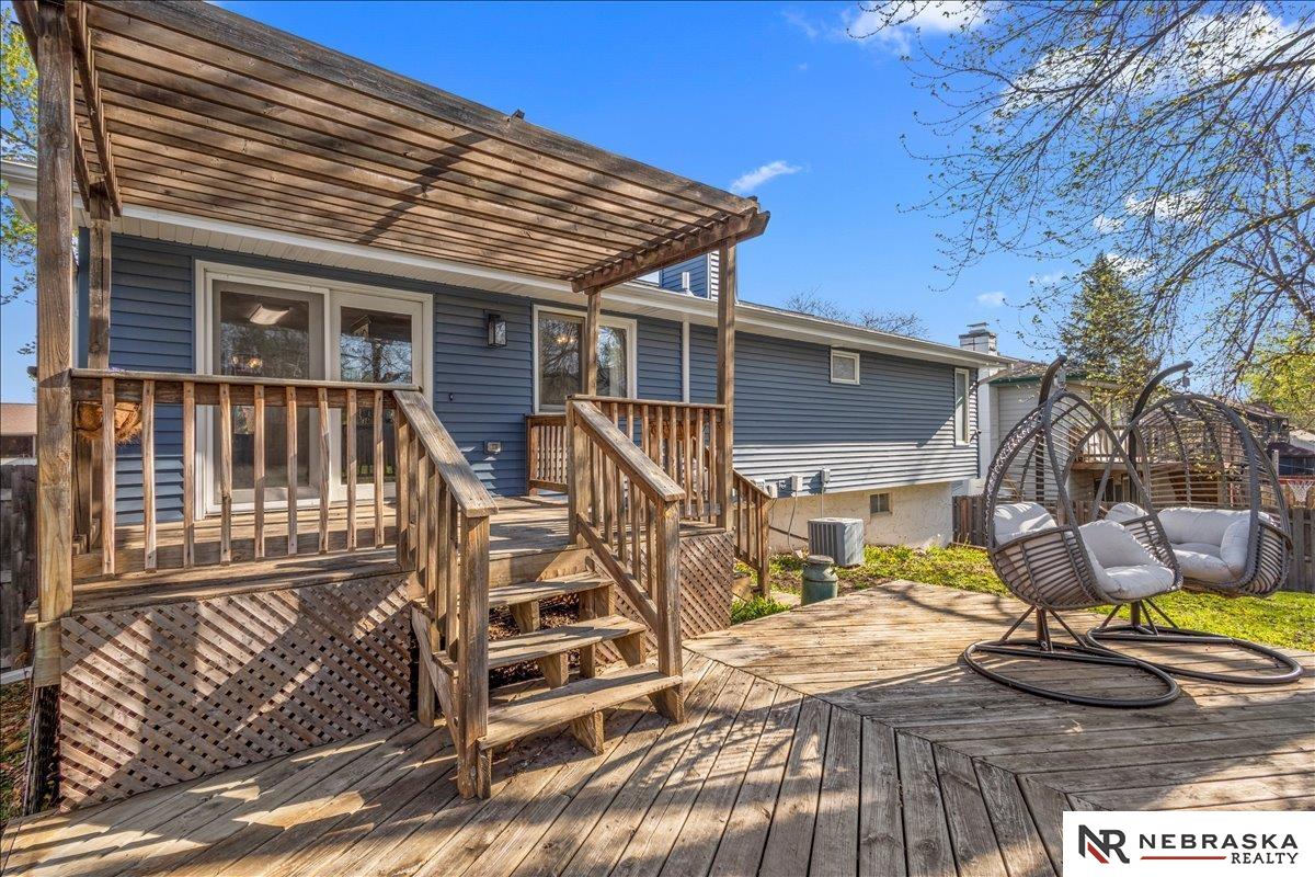 Leawood Oaks ADORABLE split-entry home! This home truly has it all and more with stylish updates and unique features throughout. The main floor offers two spacious living areas, including one with a cozy fireplace, cathedral ceiling, stone accents and built-in-shelving. The beautifully updated kitchen features stainless steel appliances. Hardwood bamboo flooring throughout the main level adding warmth and character. Upgraded main full bath and spacious primary suite complete with a refreshed 3/4 bath. Basement has additional living space and bath along with a bonus room - perfect for a home office, gym or guest space. Washer and dryer are included. Fully fenced backyard designed for entertaining, featuring a two level deck and pergola. This home is one you won't want to miss! Schedule your showing today! All measurements are approximate, buyer to verify. Buyer to verify Schools.