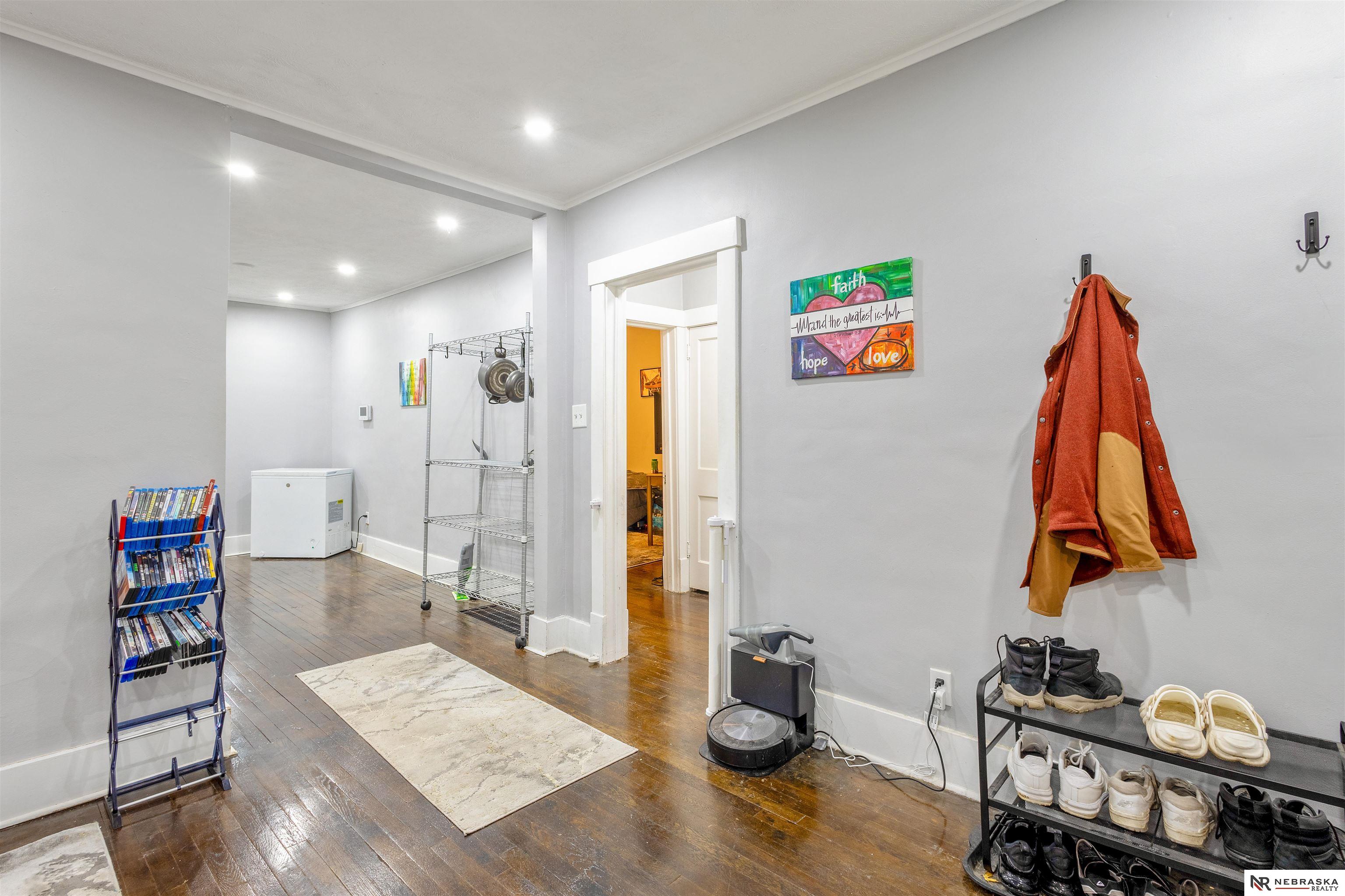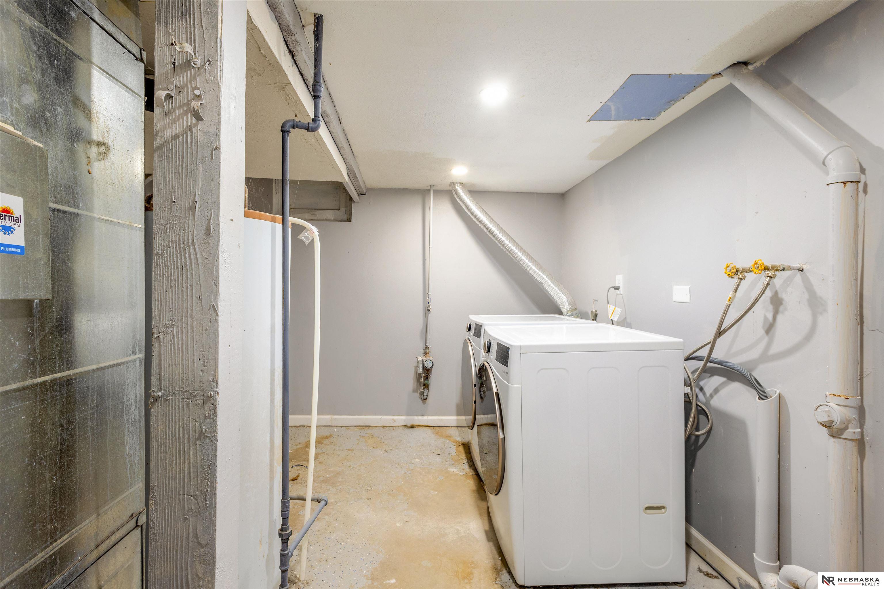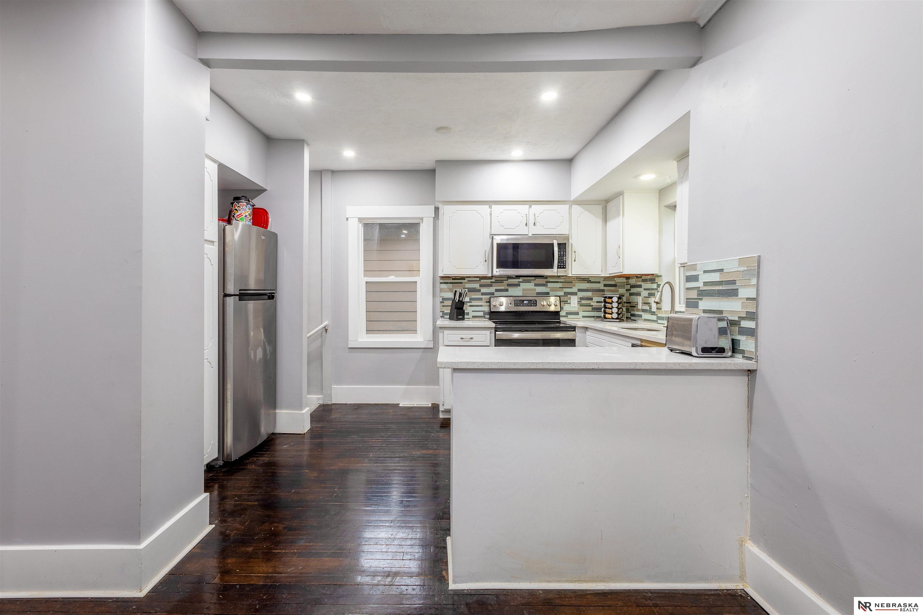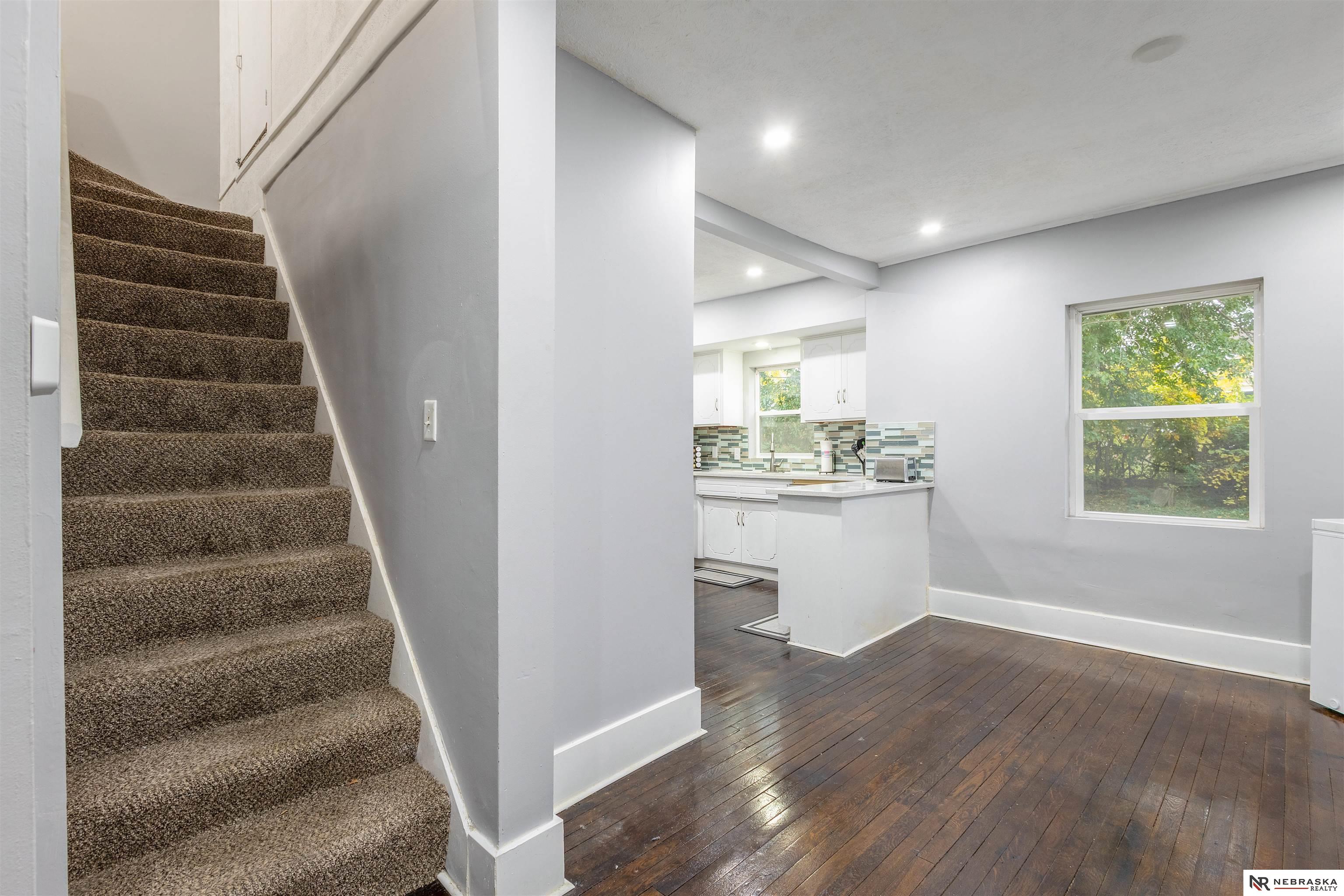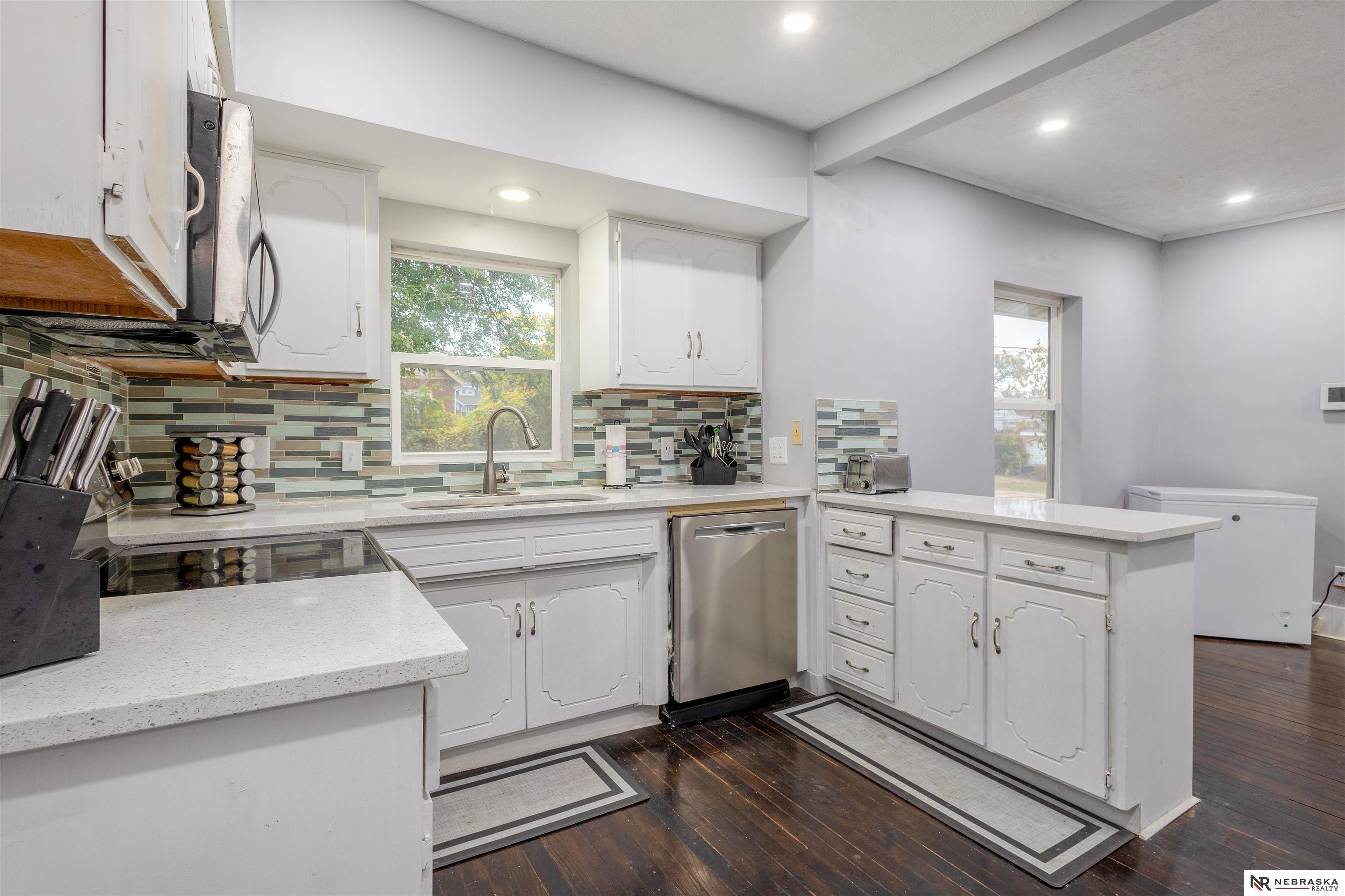 Live across the street from one of the most Historic Boulevards in Omaha! Redone top to bottom. 2 Large beds upstairs perfect for extended family or roommates. Main floor features beautiful Hardwood floors, 2 beds, remodeled bath and cozy front porch. Quartz counters w/Stainless Appliances and nicely appointed glass tiled backsplash Super important new vinyl windows for energy efficiency and newer roof. Basement has 2 big areas one for TV watching and play room or exercise room. Washer and Dryer included! Just move in! Flat private fenced back yard with garden boxes and patio. Great combo of old house with modern amenities. Come see!