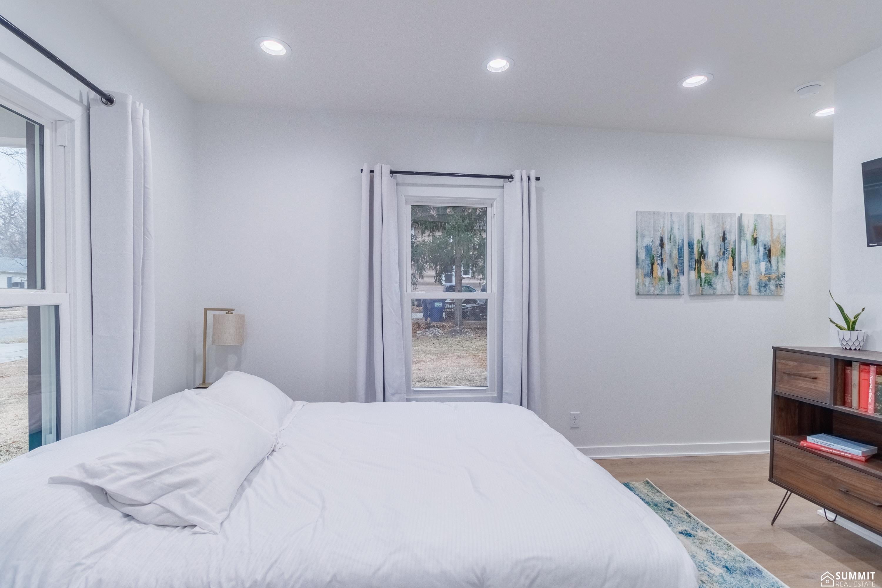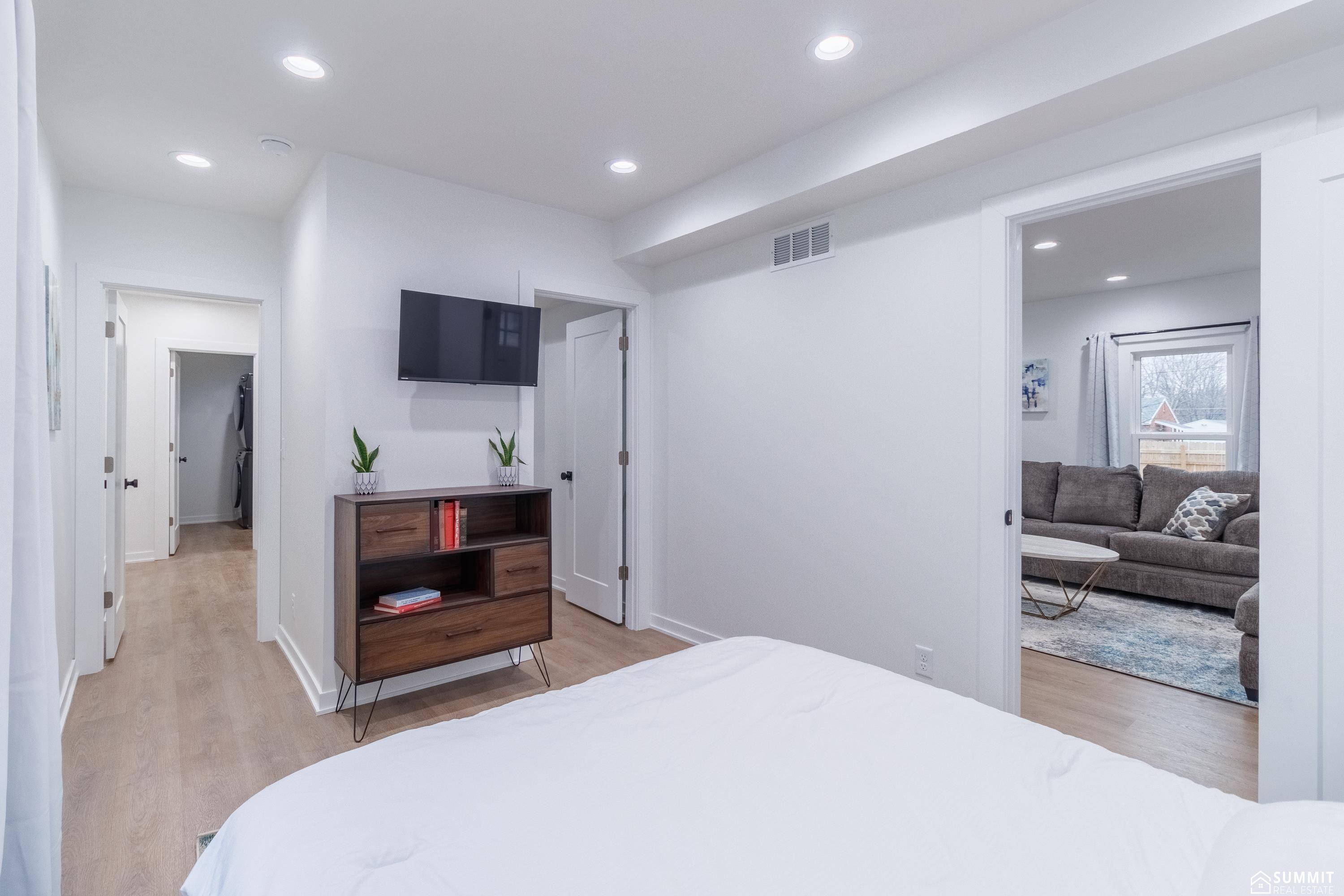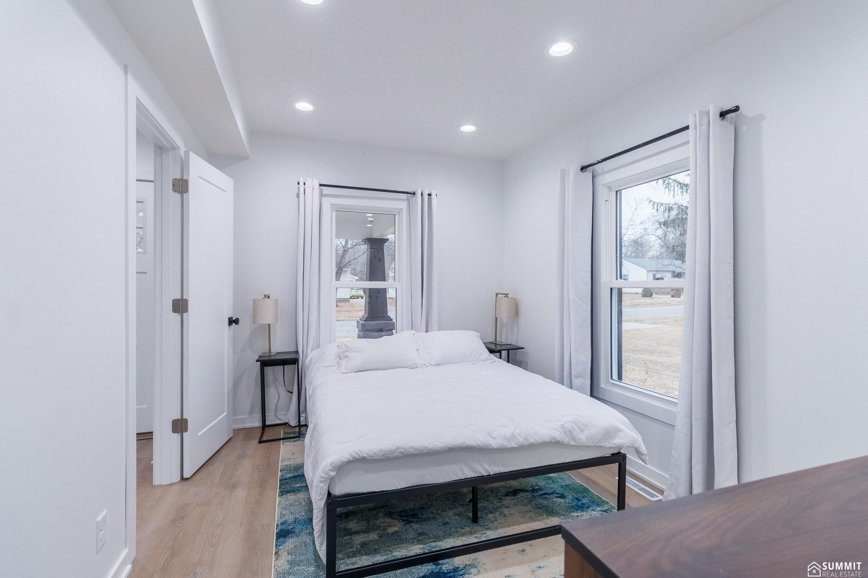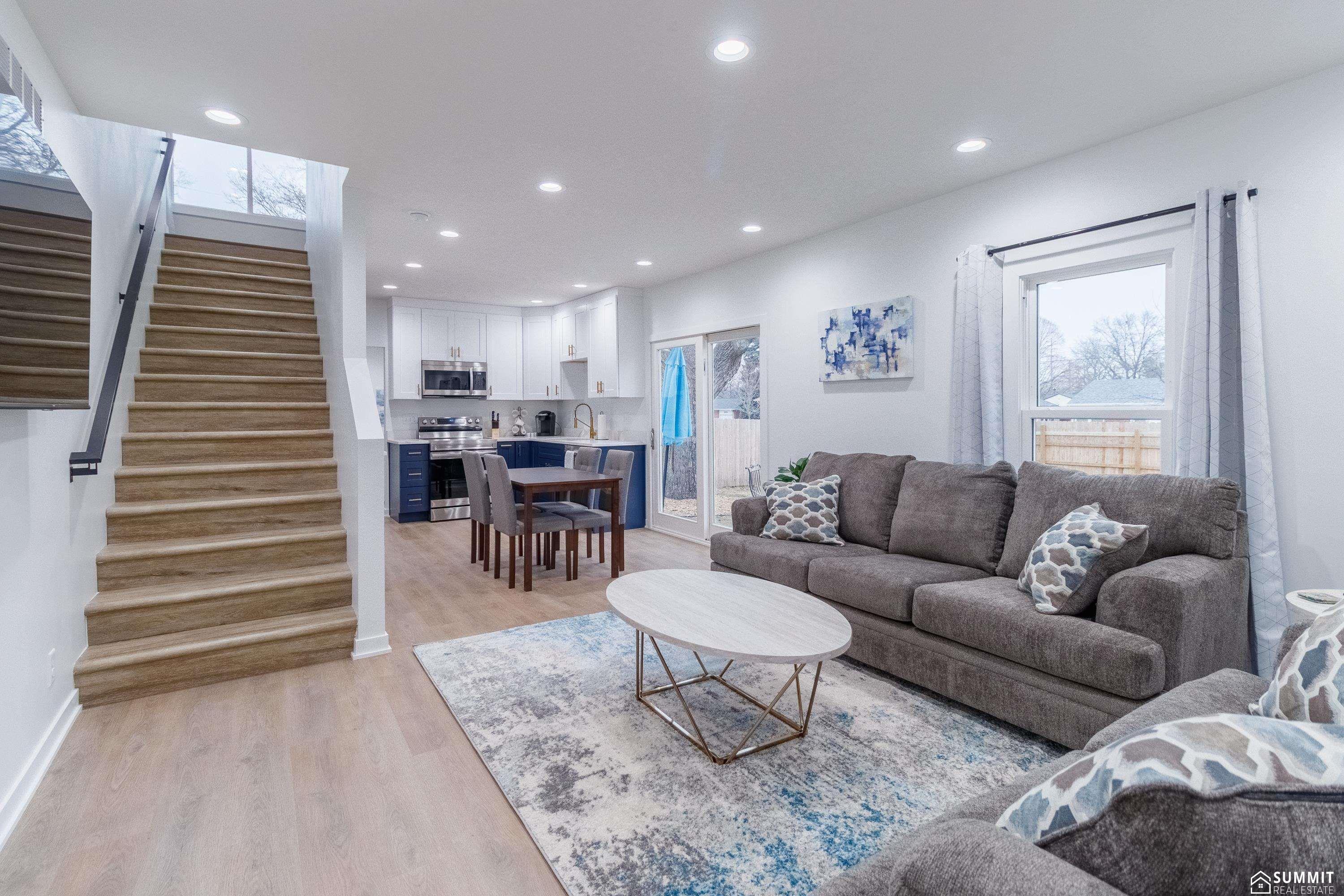 Completely renovated 1.5-story home on an oversized corner lot. Remodeled inside and out in 2021–2022, including a complete exterior remodel and major components such as plumbing, electrical, ductwork, insulation, and finishes throughout—offering the look of an older farmhouse with the peace of mind of modern updates. The home features 2 bedrooms, 2 bathrooms, and a versatile non-conforming second-floor space that could be used as a playroom, office, game room, studio, or guest area. Large windows throughout provide fantastic natural light. Features include main-level laundry, a spacious primary suite with a walk-in closet and large bathroom, and a hidden pantry that adds storage and functionality to the kitchen. Enjoy the welcoming front porch and fully fenced side yard. The oversized lot also offers a large yard to the south with space for a future garage, shop, or additional outdoor activities or landscaping. Previously used as a successful short-term rental.