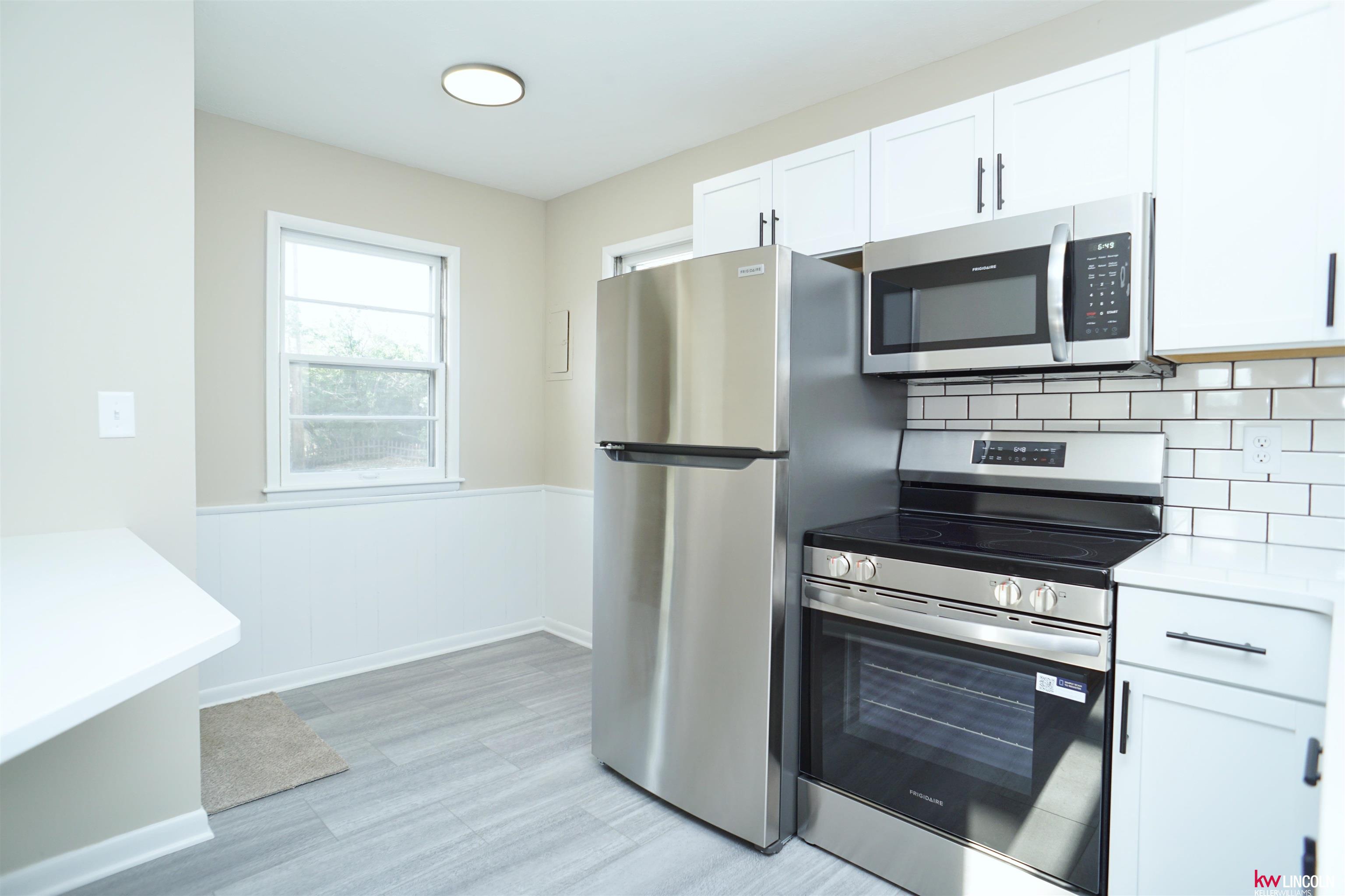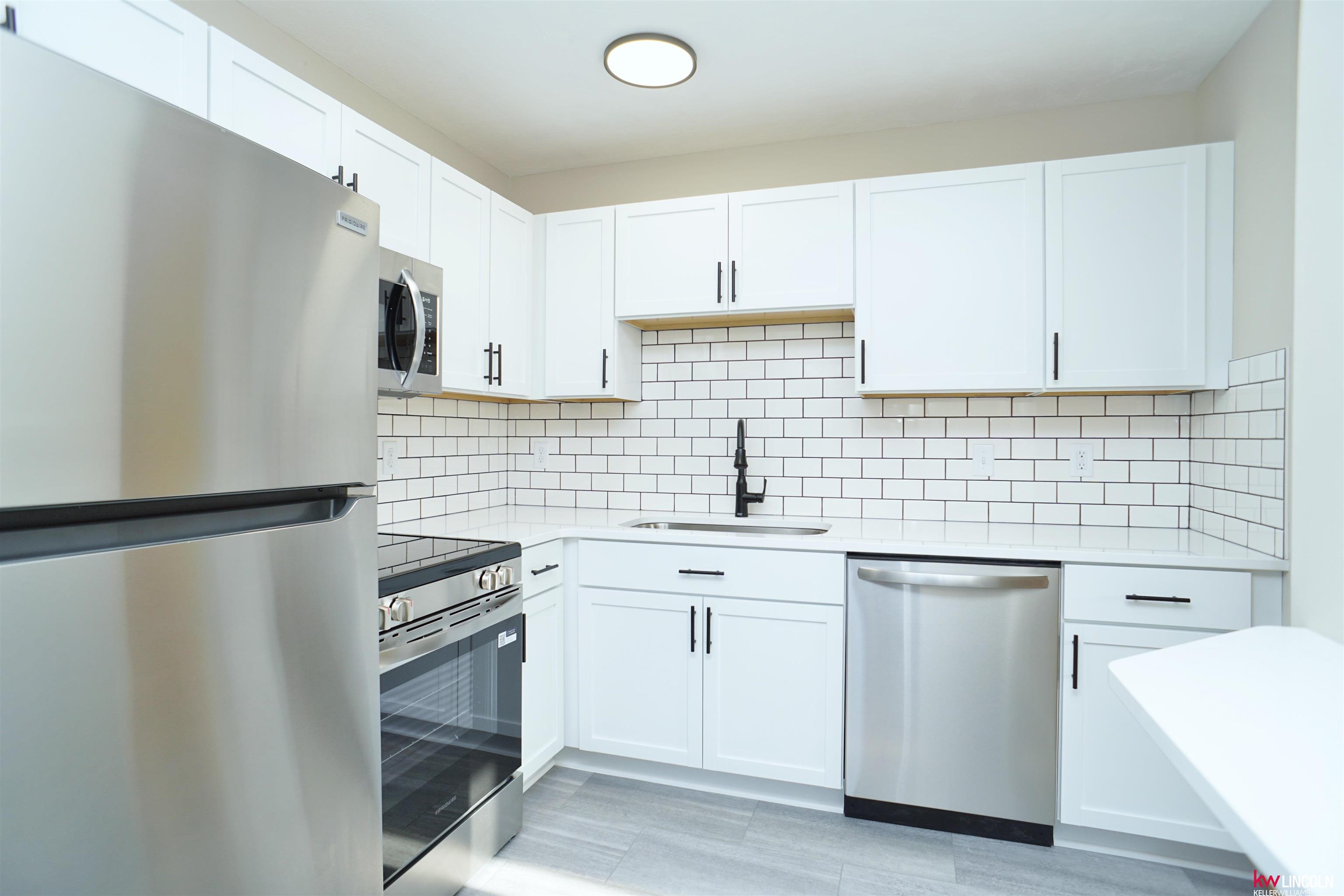 Check out this recently remodeled Northwest Lincoln ranch! Features include 2 bedrooms, 2 bath areas (NEW vanity, NEW flooring, NEW tiled shower!), NEWLY refinished hardwood floors, NEW kitchen (NEW shaker style cabinets with black hardware, NEW quartz counter tops, NEW tiled backsplash!), NEW interior paint, NEW stainless steel appliances, NEW light fixtures, partially finished basement with NEW carpet, fenced yard, patio, maintenance free brick exterior, oversized 1 stall garage and extra wide driveway for additional parking . Easy access to Downtown, HWY/ I-80. Call today!
