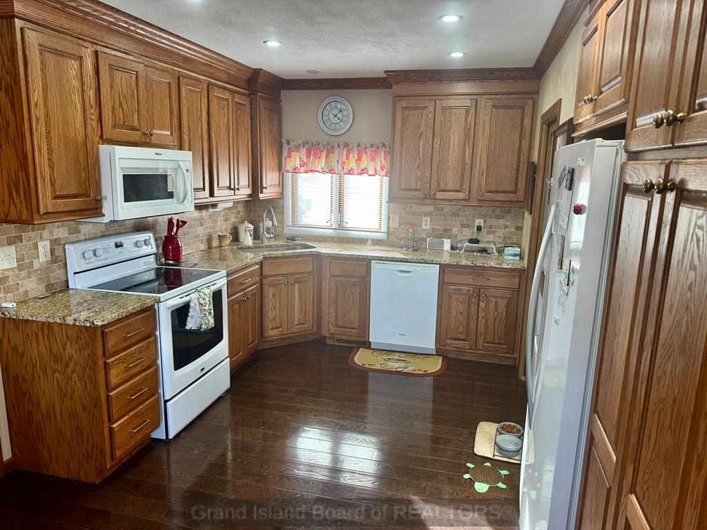 Wonderful opportunity to enjoy lake living at Kuester Lake! This home offers stunning views of the lake and the Saddle Club's newly renovated patio area from both the interior and backyard. Multiple outdoor living spaces—including a charming gazebo—provide the perfect setting for relaxing or entertaining. The west-facing orientation allows you to enjoy beautiful sunsets with comfortable evening shade on the patio throughout the summer. Inside, you'll find an updated kitchen with granite countertops, newer wood flooring, and a spacious living room featuring a cathedral ceiling and gas log fireplace. Additional highlights include an oversized two-car garage, private boat dock with direct lake access, and a storage shed for extra convenience.