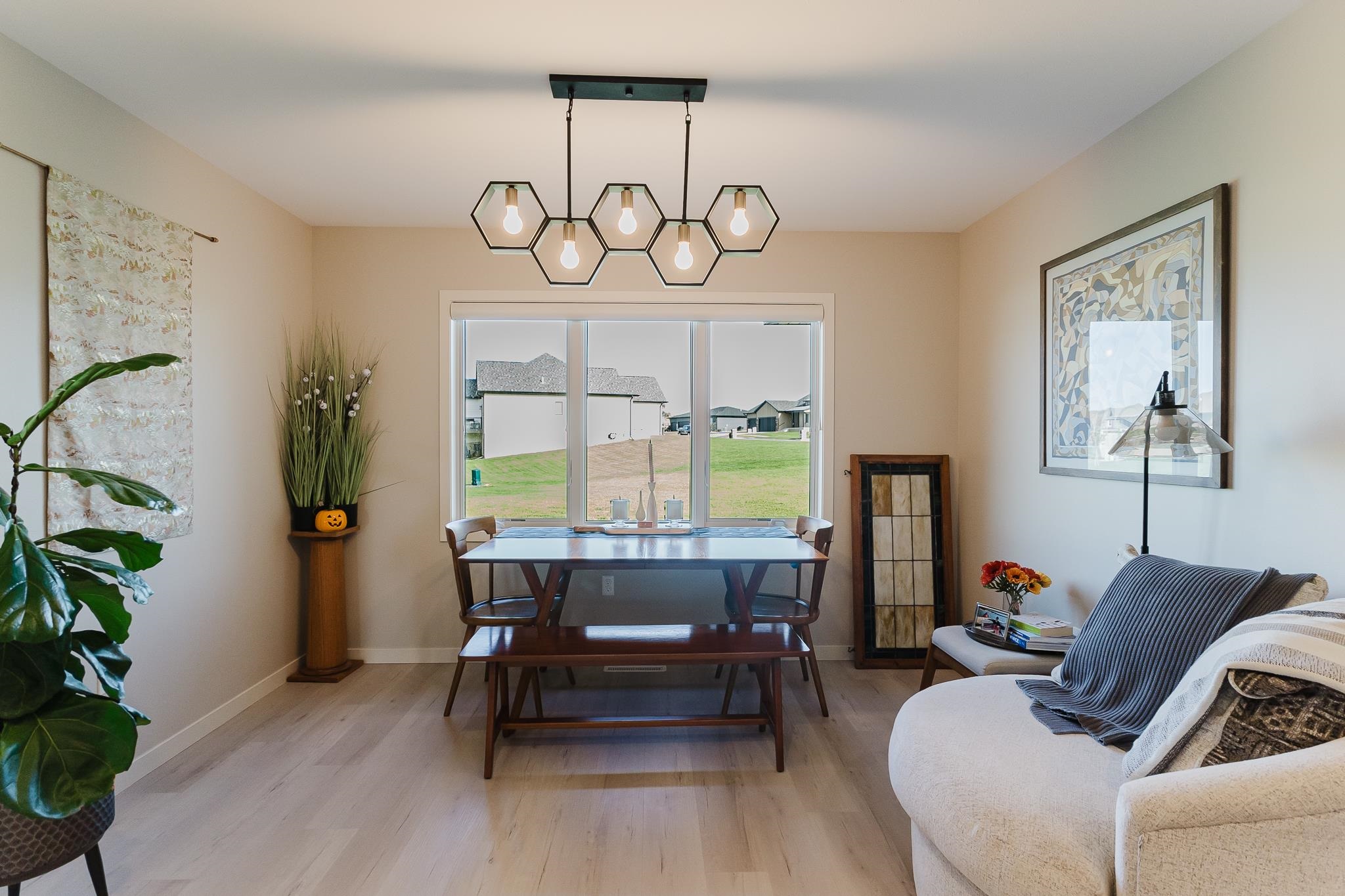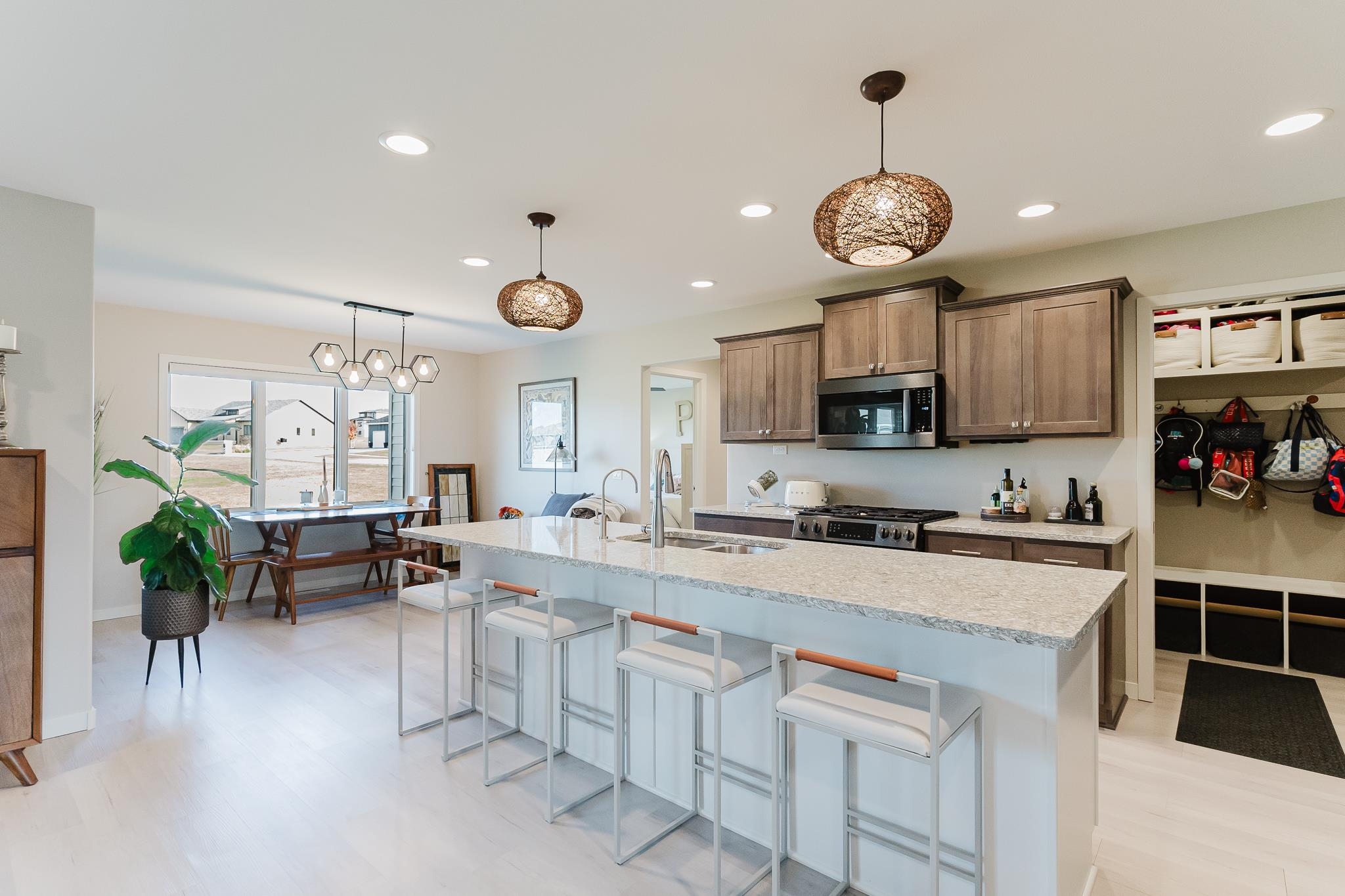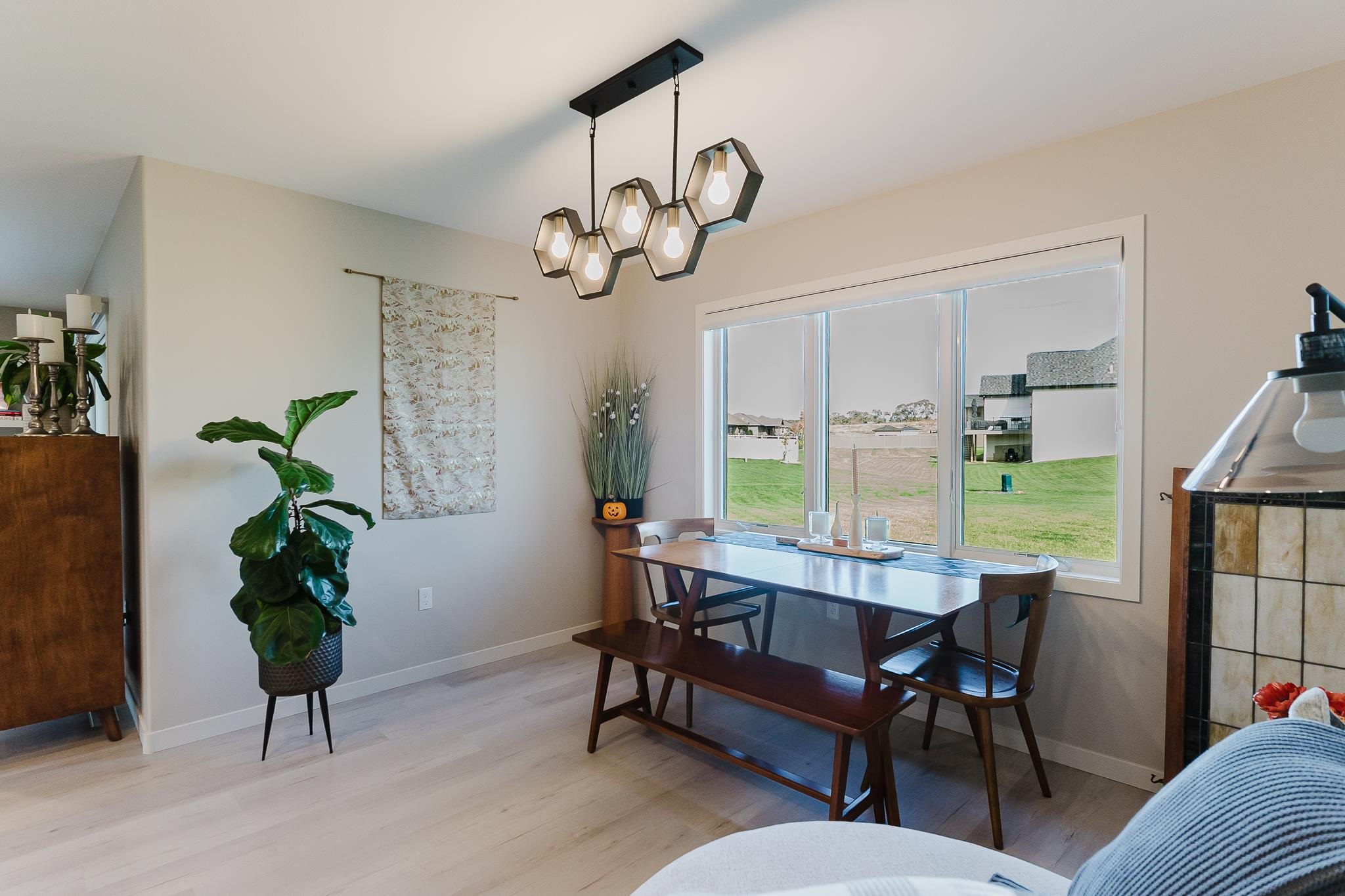 This stunning contemporary home in Wyndham Hills beckons with sophisticated design elements and thoughtful architectural details spread across 1.5 stories on an expansive 0.59-acre lot. The dramatic two-story entry creates an impressive welcome, seamlessly flowing into a convenient pocket office and powder room before opening to the heart of the home's open-concept living spaces. The primary bedroom suite on the main floor offers a private sanctuary featuring a luxurious tiled walk-in shower, dual vanities, and a generously-sized closet. Upstairs, three additional bedrooms provide versatility, with one room spacious enough to transform into a dedicated playroom, home gym, or creative studio space. The gourmet kitchen anchors the open floor plan, complete with a walk-in pantry. Large windows throughout the home frame picturesque views of the expansive backyard, creating natural focal points that blur the lines between indoor and outdoor living. The great room and formal dining area flow effortlessly together, perfect for both intimate family gatherings and entertaining larger groups. With six bedrooms and four full bathrooms total, this property offers exceptional space and flexibility for growing families seeking contemporary comfort in a desirable neighborhood setting.