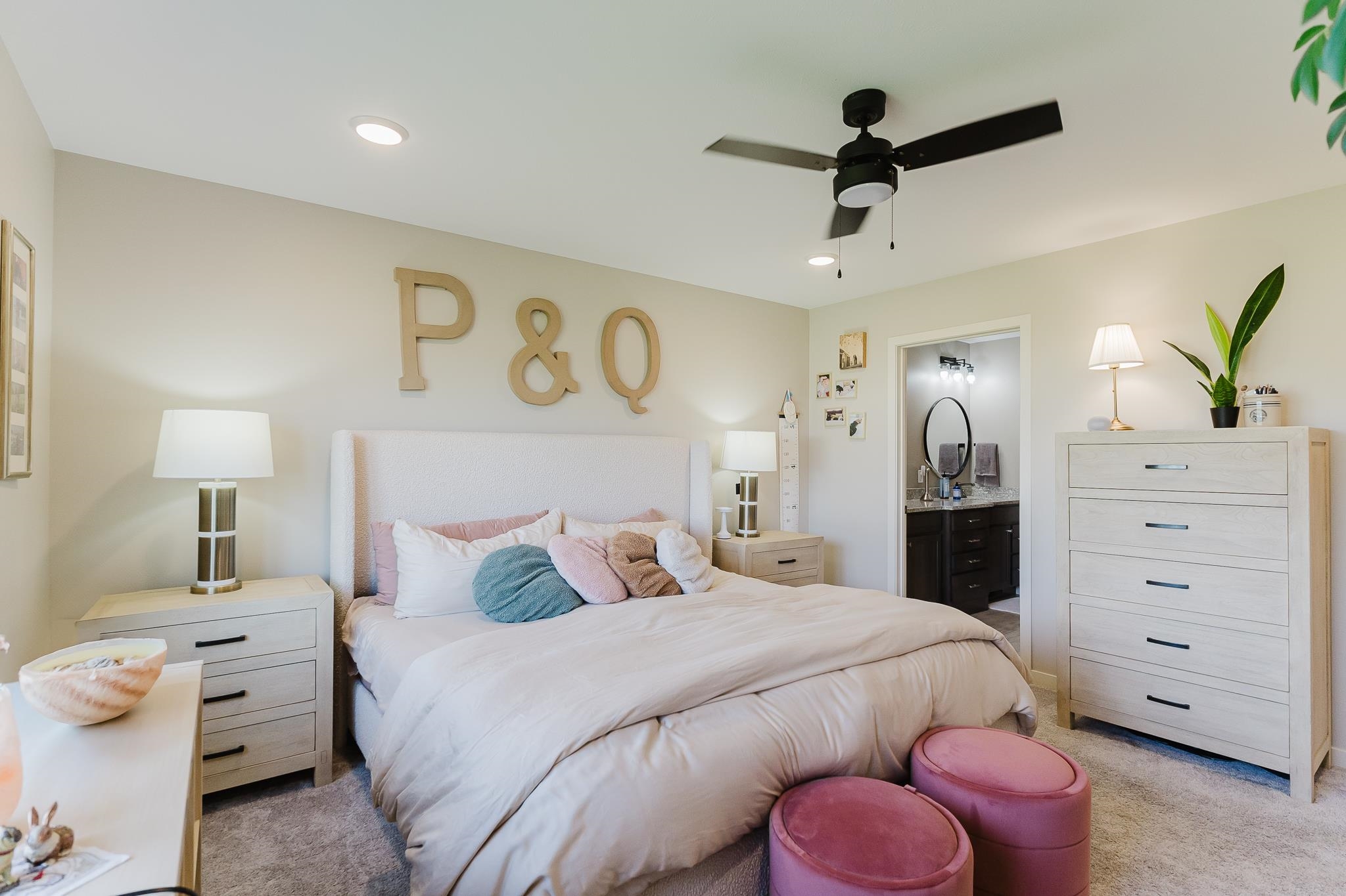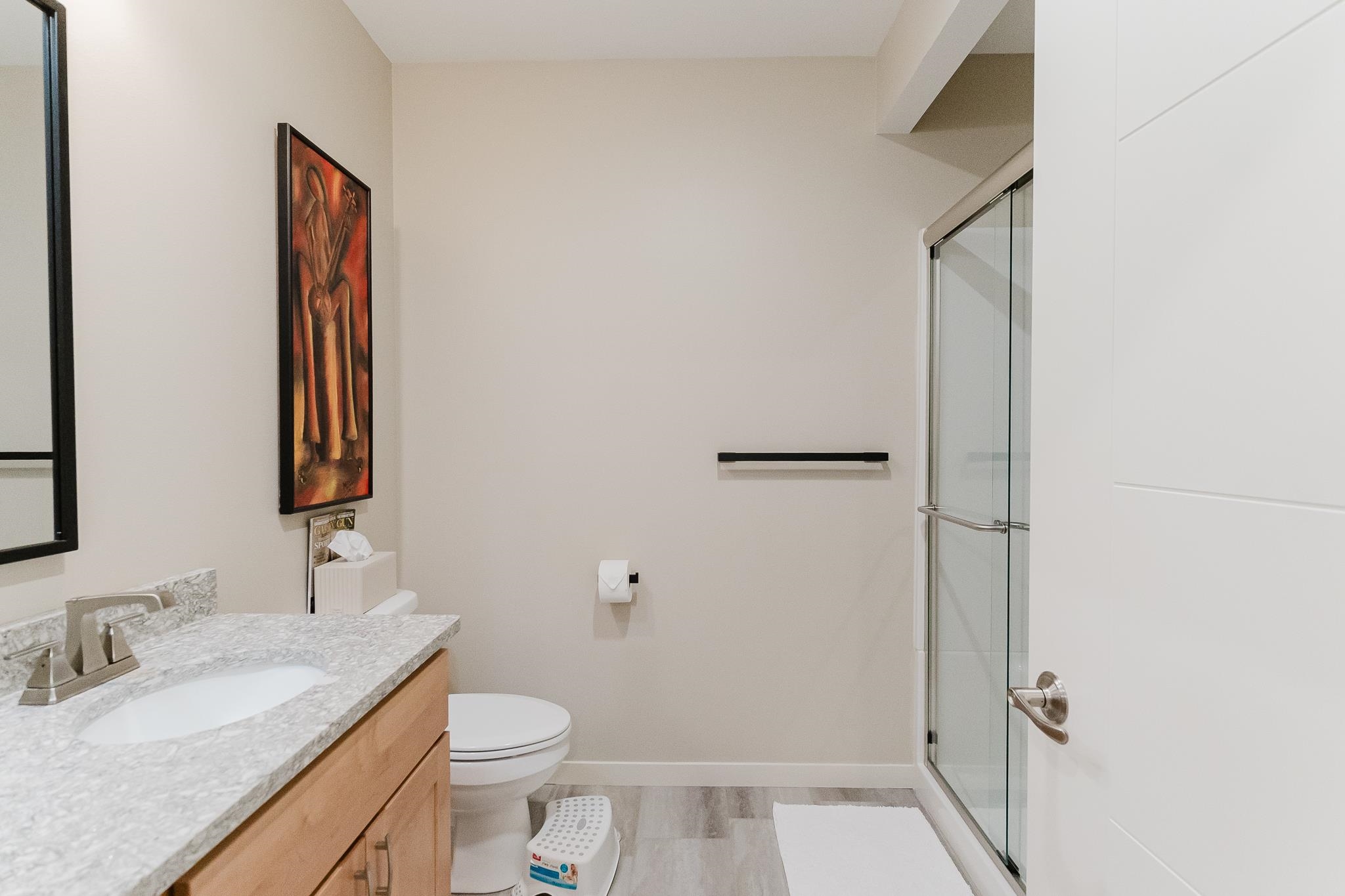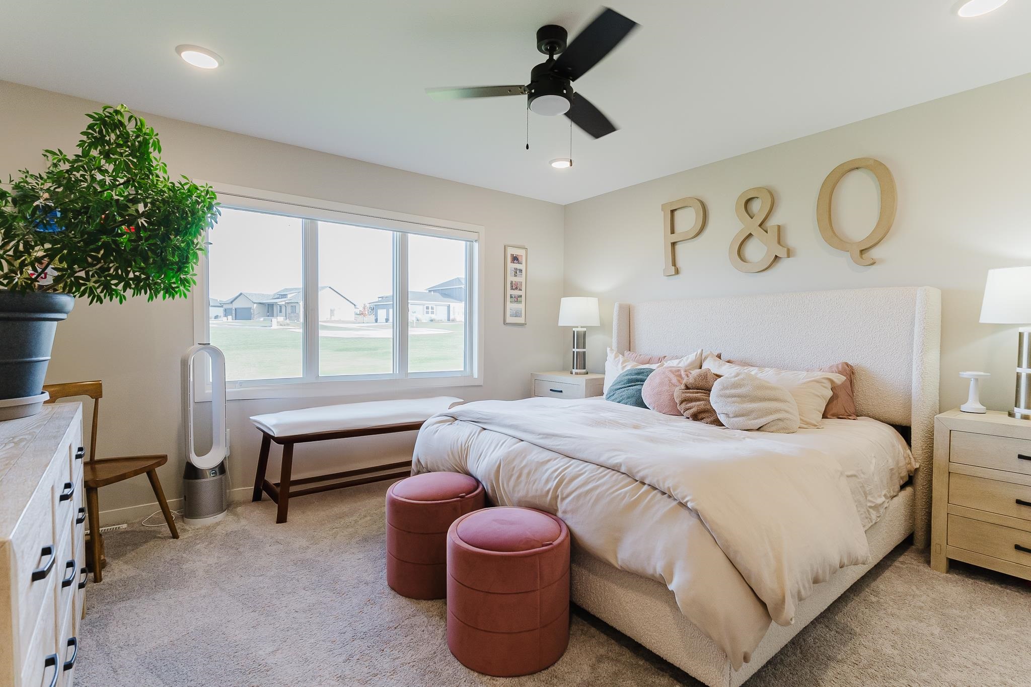 This stunning contemporary home in Wyndham Hills beckons with sophisticated design elements and thoughtful architectural details spread across 1.5 stories on an expansive 0.59-acre lot. The dramatic two-story entry creates an impressive welcome, seamlessly flowing into a convenient pocket office and powder room before opening to the heart of the home's open-concept living spaces. The primary bedroom suite on the main floor offers a private sanctuary featuring a luxurious tiled walk-in shower, dual vanities, and a generously-sized closet. Upstairs, three additional bedrooms provide versatility, with one room spacious enough to transform into a dedicated playroom, home gym, or creative studio space. The gourmet kitchen anchors the open floor plan, complete with a walk-in pantry. Large windows throughout the home frame picturesque views of the expansive backyard, creating natural focal points that blur the lines between indoor and outdoor living. The great room and formal dining area flow effortlessly together, perfect for both intimate family gatherings and entertaining larger groups. With six bedrooms and four full bathrooms total, this property offers exceptional space and flexibility for growing families seeking contemporary comfort in a desirable neighborhood setting.