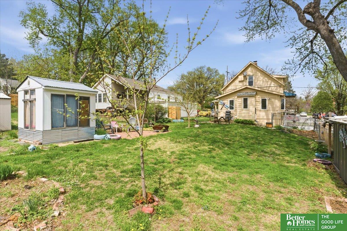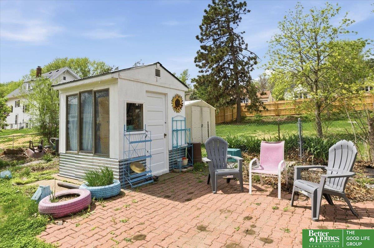 Charming Colonial-style 1.5-story home filled with character and warmth, located in the historic Florence neighborhood with easy access to the interstate, schools, parks, and shopping. Hardwood floors and inviting living spaces create a comfortable, welcoming feel throughout. Just off the living room, you'll find two bedrooms and a bath, offering convenient main-level living. The kitchen features a pantry and SS appliances. The separate spacious dining area has room for everyone with great natural light. The second level provides a spacious retreat with a sitting area, office space, and a full bath, which is ideal for a private primary suite setup. The unfinished walk-out lower level includes a workshop area, perfect for hobbies, projects, or additional storage. Situated on a generous lot, the outdoor space features a fully fenced backyard, established garden beds, a charming she-shed, a detached 2-car garage, and ample room to relax or entertain.