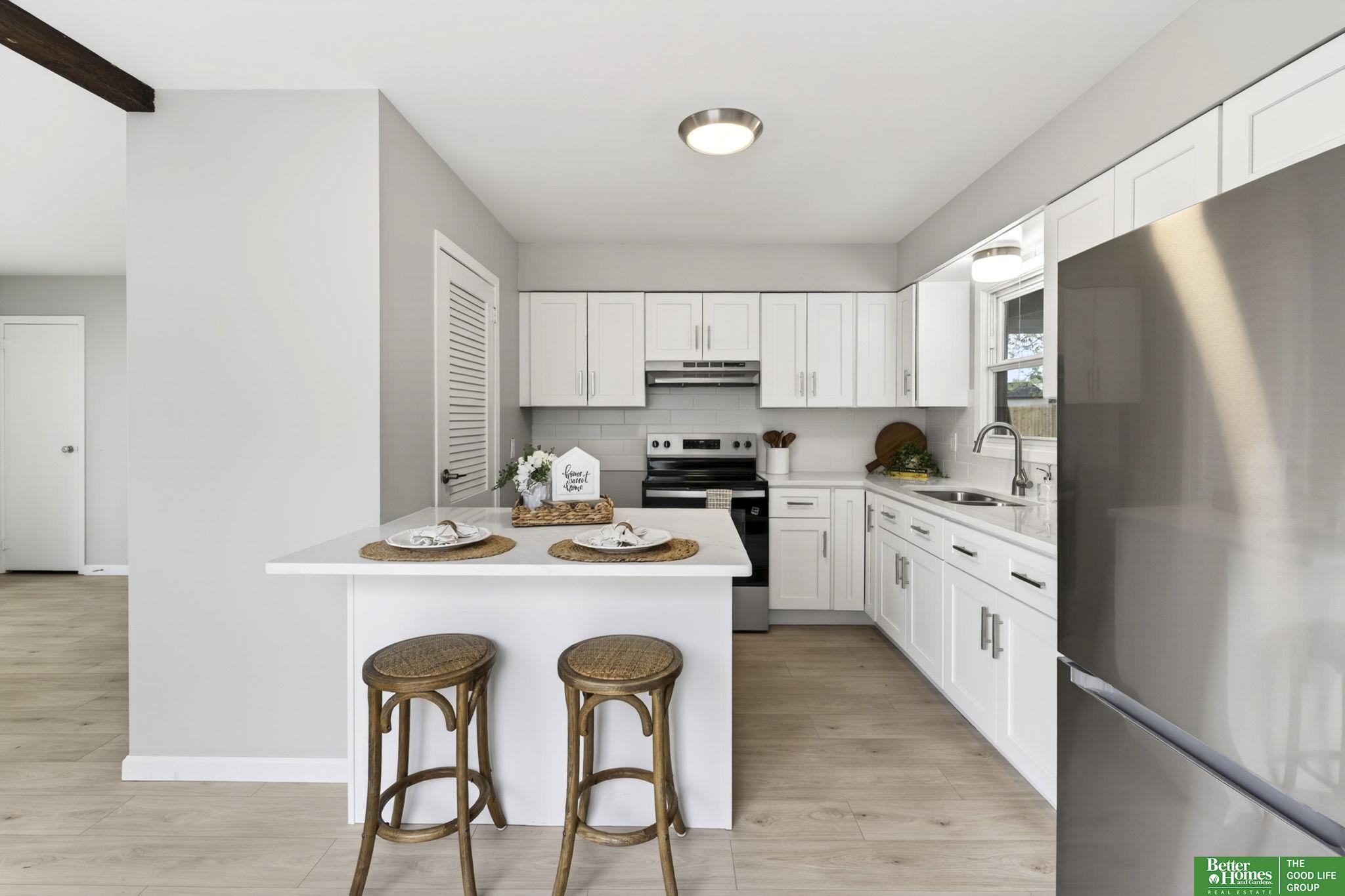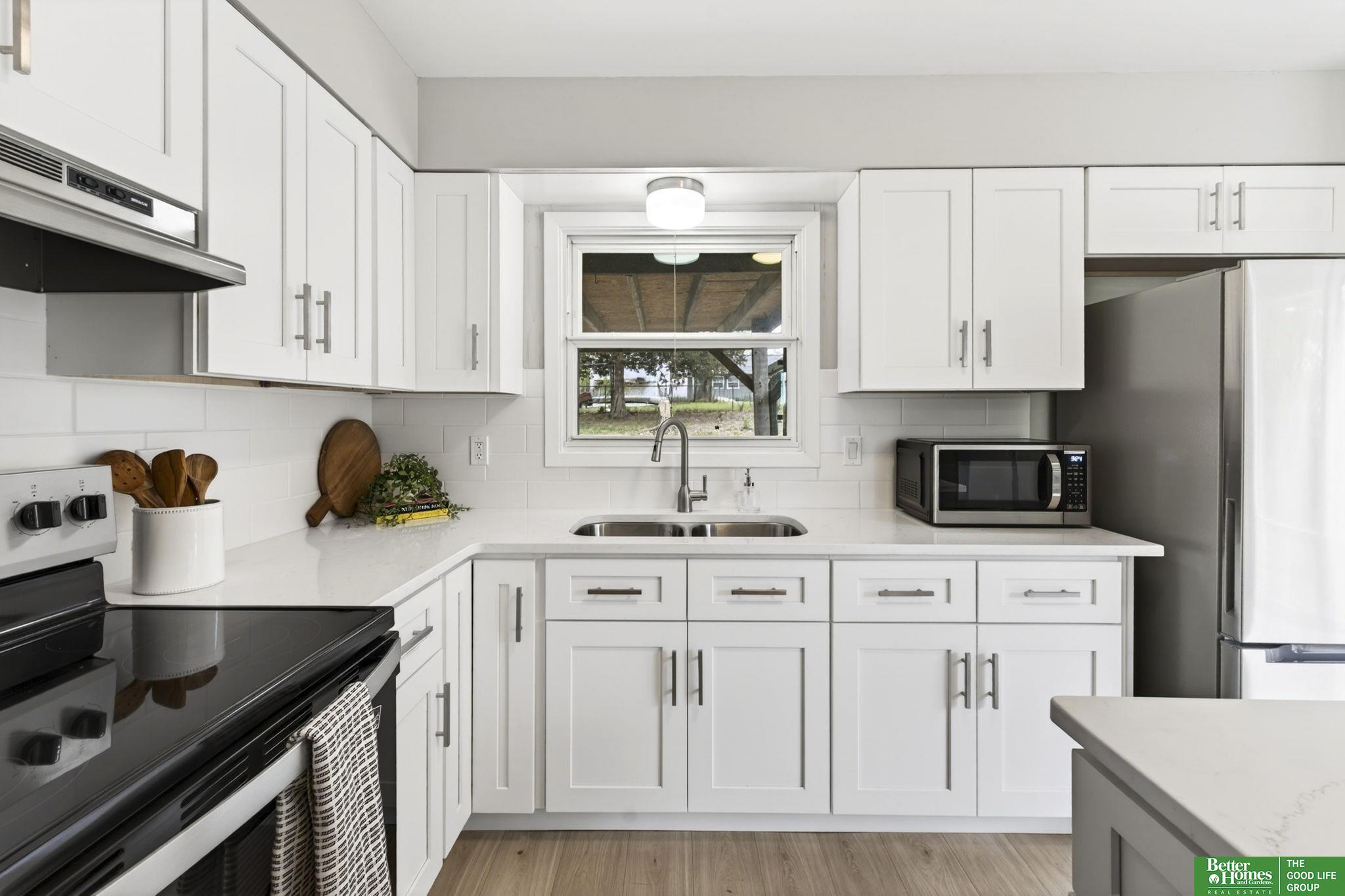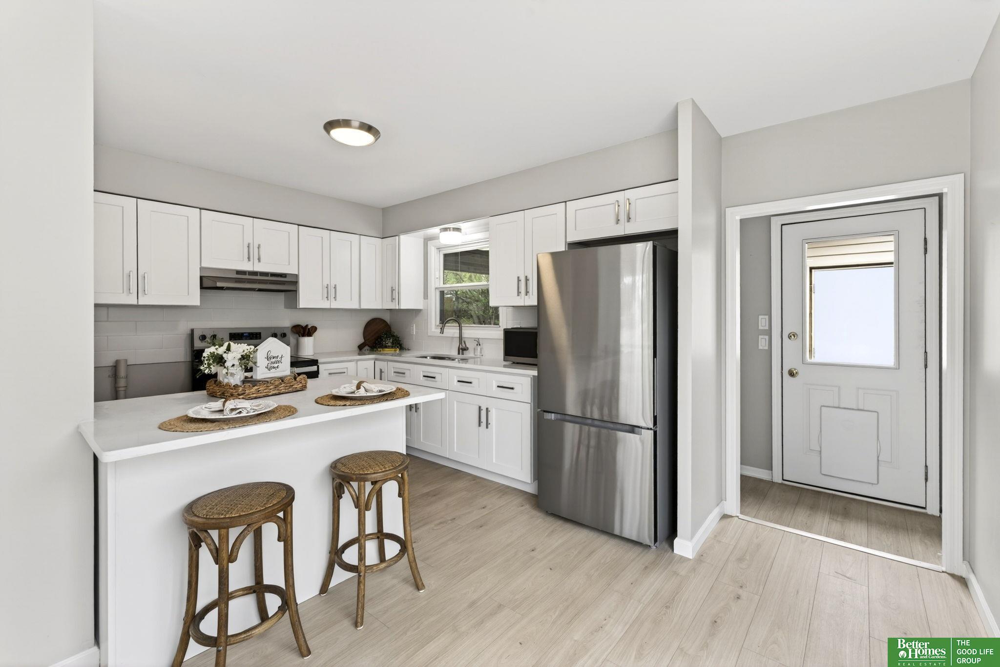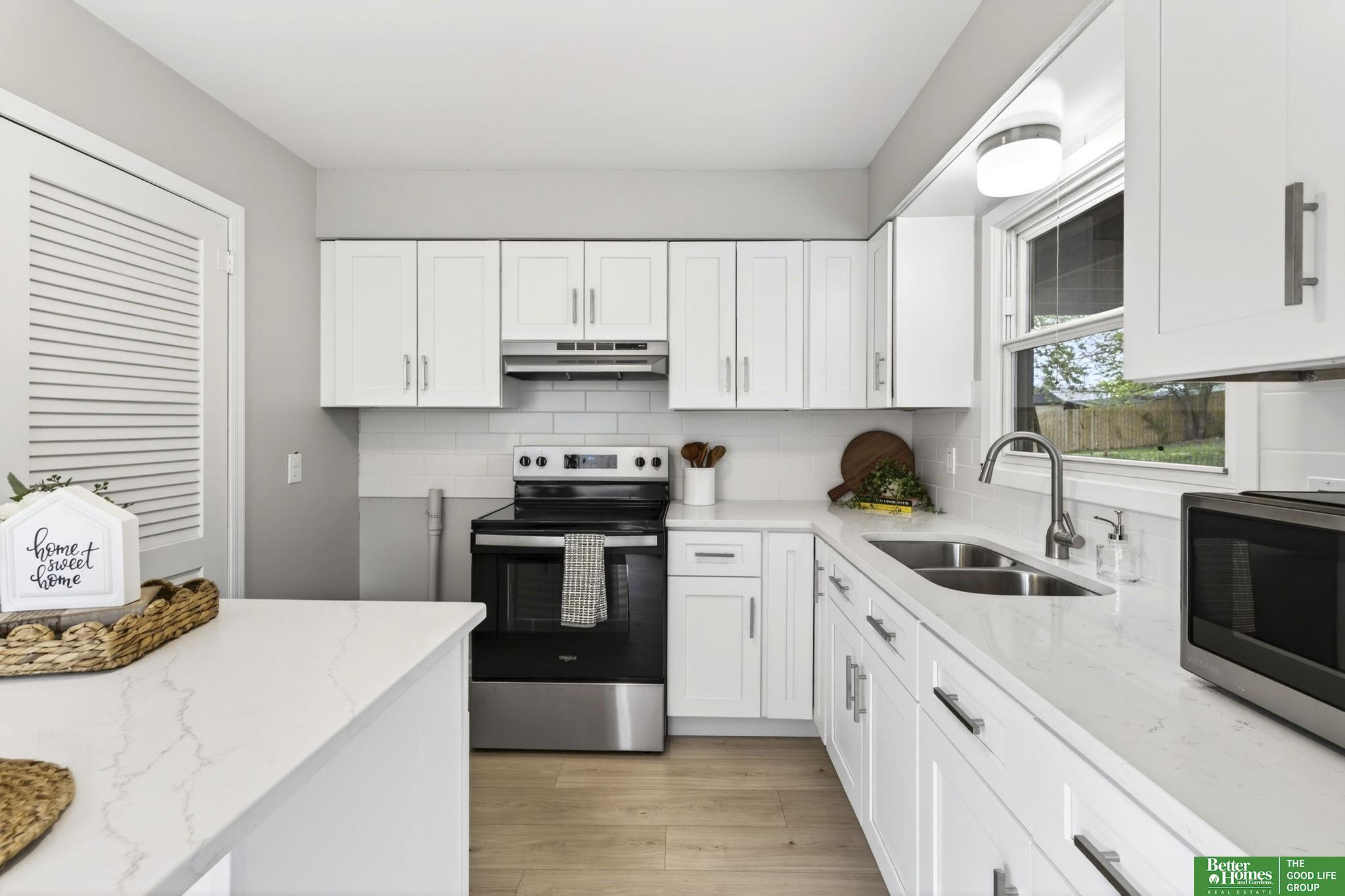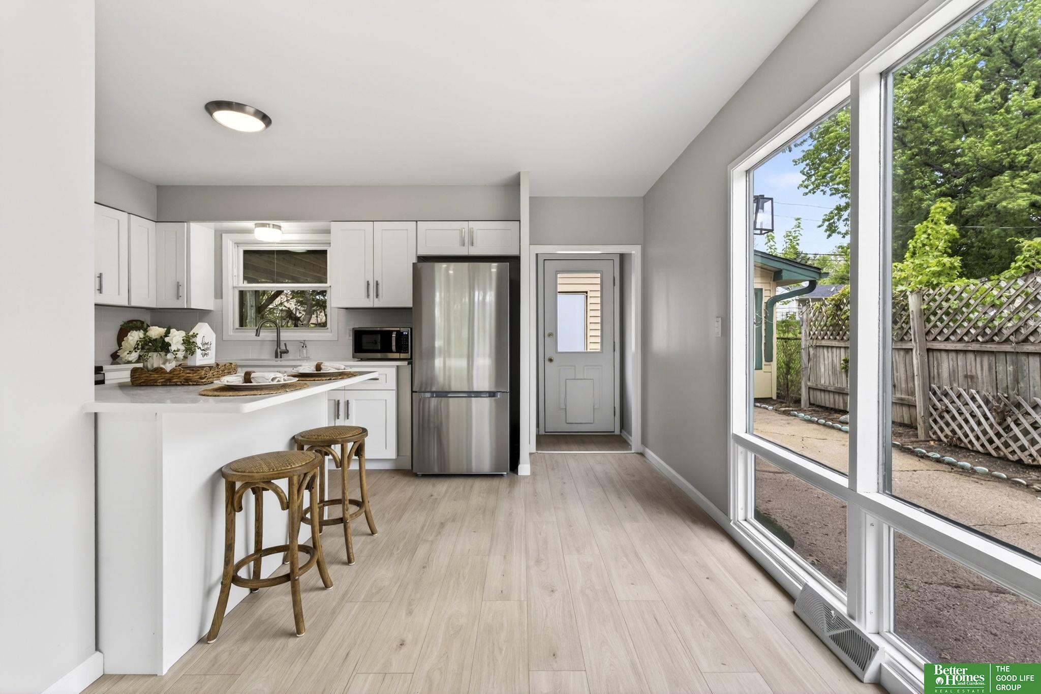 Completely updated and move-in ready, this home features modern finishes and abundant natural light throughout. The fully renovated kitchen offers new cabinetry, quartz countertops, and brand-new appliances, creating a stylish and functional space for everyday living and entertaining. New luxury vinyl plank flooring runs seamlessly throughout the entire home, complemented by a fully updated bathroom and all new interior and exterior lighting, including added can lights in the main living area. Large windows fill the home with natural light, creating a bright and inviting atmosphere. Enjoy the spacious backyard with a covered patio and fully fenced yard, perfect for relaxing, entertaining, or pets. Conveniently located near UNMC, this home offers comfort, style, and convenience. AMA