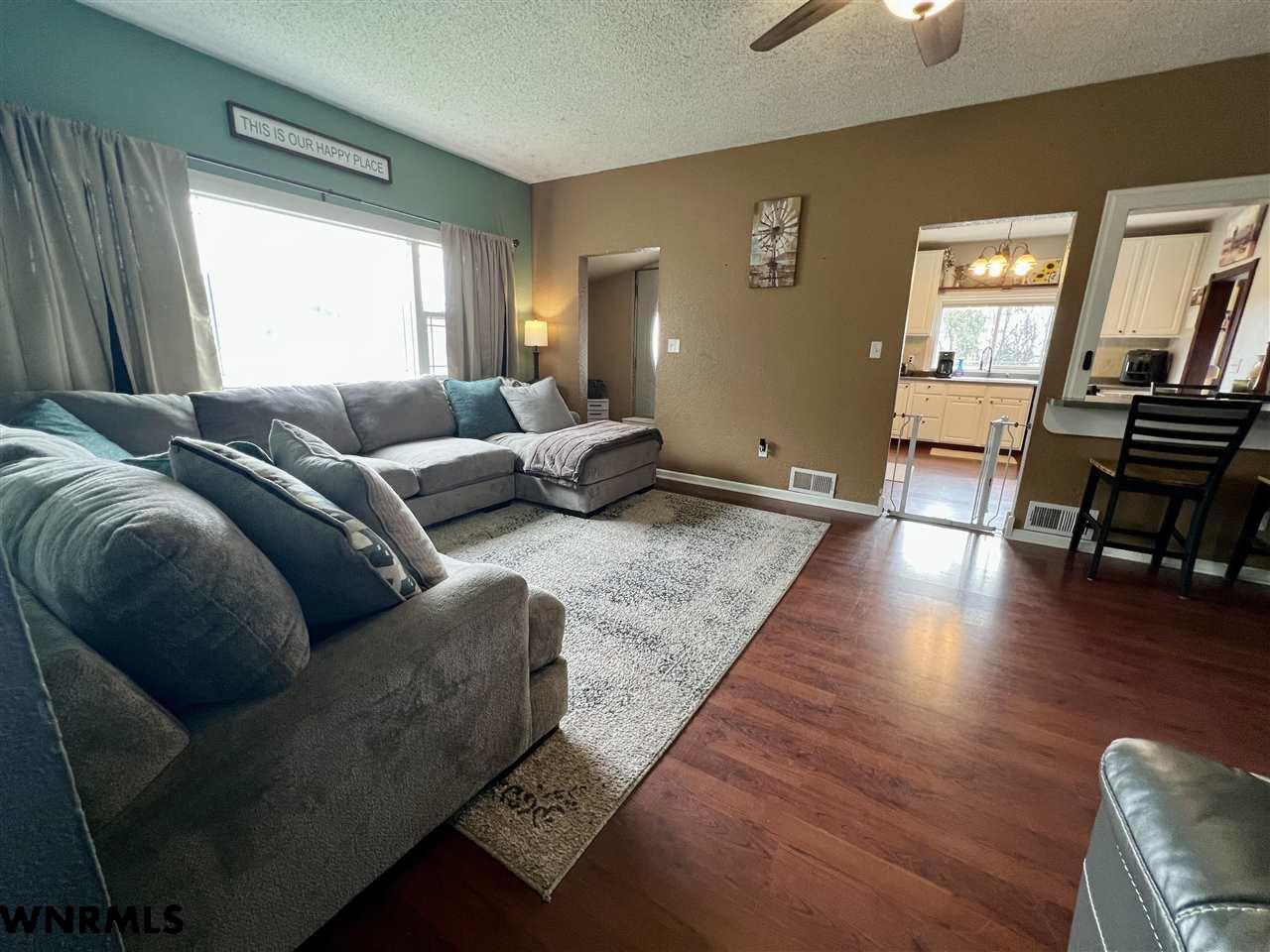 Charming acreage located in between Mitchell & Morill about 1/2 mile off the highway. This property features 3.77 acres, with a 2 car detached garage, one attached garage, loafing shed with electrical, floor drain, cement floors and stalls, and newly seeded pasture. Notice the outdoor space, plenty of parking, relaxing deck, and mature trees. Inside feature a spacious kitchen with a pantry, large living area with a pellet stove, 2 bedroom, and a full bathroom. Basement is perfect for a private living area, large non conforming bedroom with a walk in closet and bathroom with a laundry area. Class 4 shingles. Newer pressure tank and well pump. Make this country home yours today, call for a private tour.
