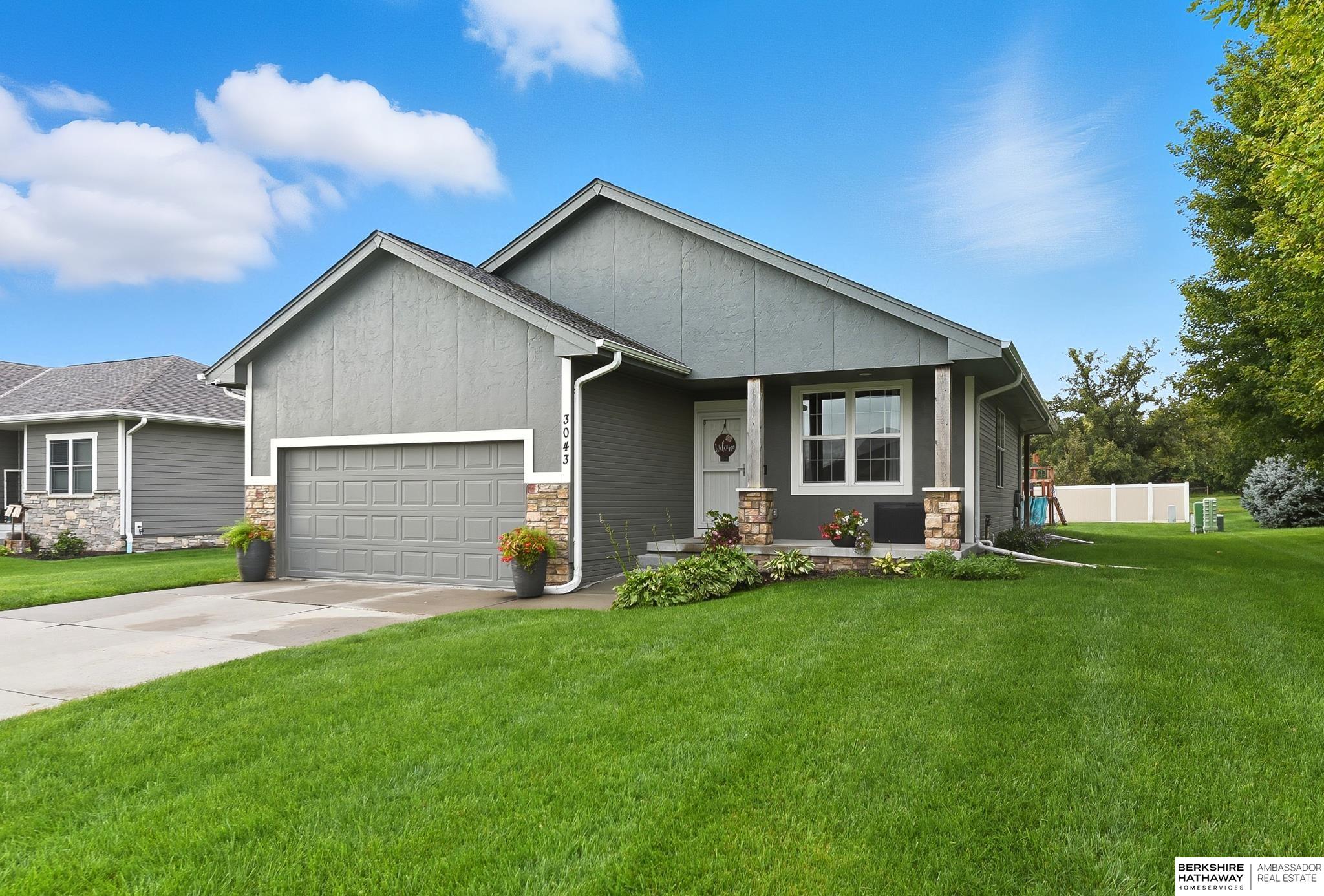Welcome to this beautiful ranch home in Ashland, Nebraska! Featuring 3 bedrooms, 2 bathrooms, and a spacious 2-car garage. Step inside and you are greeted with 9-foot ceilings and an open floor plan that creates a bright, inviting atmosphere. The modern kitchen with white shaker style cabinets, and quartz countertops. The kitchen flows seamlessly into the living and dining areas, perfect for entertaining. Primary bedroom with full bath, and main floor laundry. Enjoy evenings on the covered patio or head downstairs to the awesome finished basement with a large rec room-ideal for games, movie nights, or gatherings. With its prime location, you'll have easy access to both Omaha and Lincoln while enjoying the small-town charm of Ashland.
