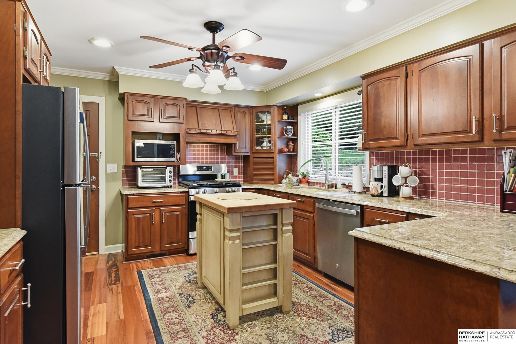 Beautiful Stone Ranch in the Heart of Omaha! Just west of UNO, near Elmwood and Memorial Parks! Built by Kiewit in 1951, this impeccably maintained 4-bedroom, 3-bath home features stunning Brazilian Koa hardwood floors throughout and brand new stainless kitchen appliances! Enjoy the natural stone landscaping, mature trees, and spacious yard with covered patio in front and additional patio in back. The kitchen and bathrooms are upgraded with quartz countertops and new cabinets. Updates include a 2019 roof with Class 4 impact-resistant shingles, new insulated garage doors, siding, and gutters. The lower level offers two bedrooms, a large living area, laundry, and plenty of storage. A perfect blend of comfort, charm, and location.