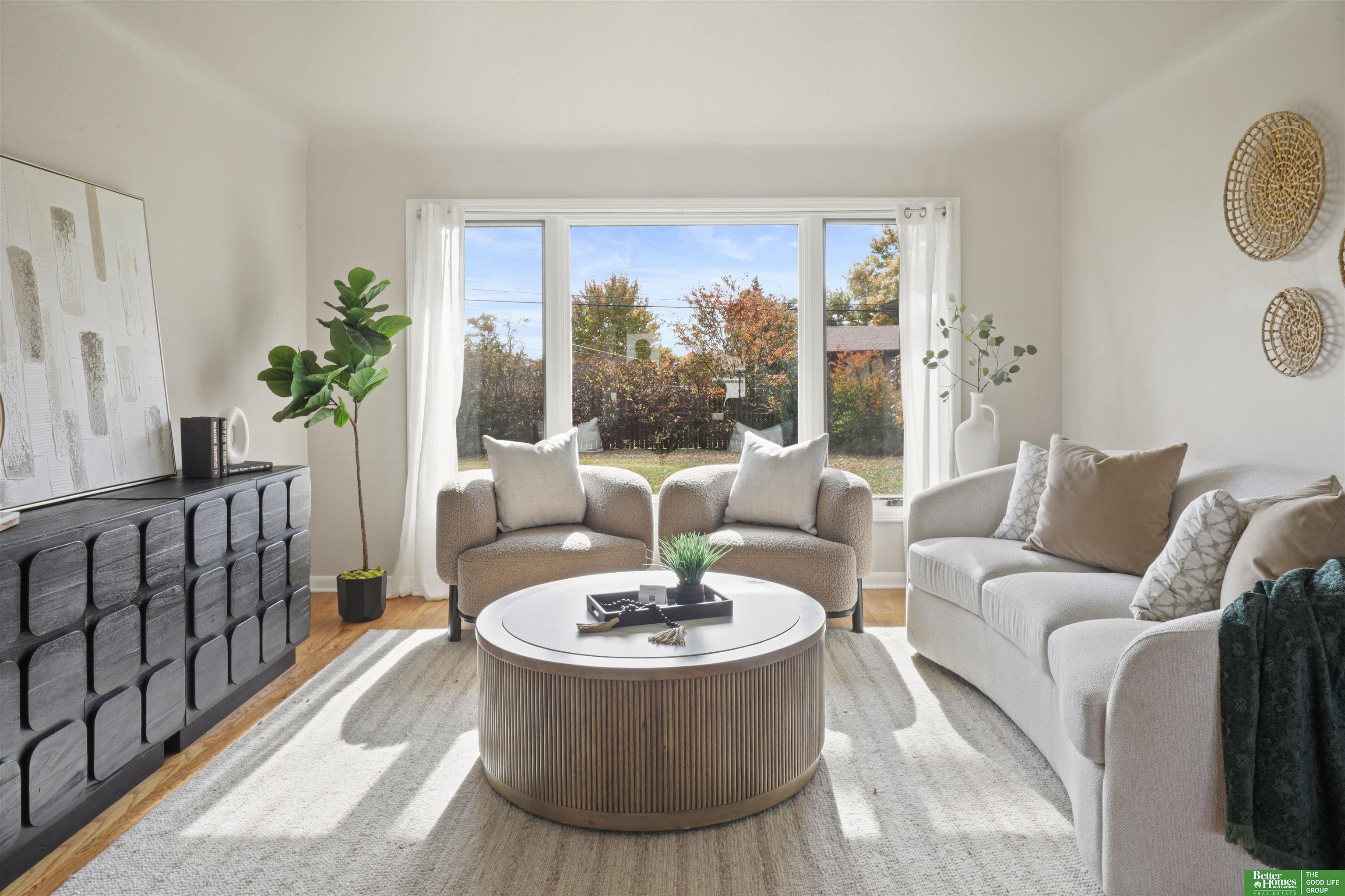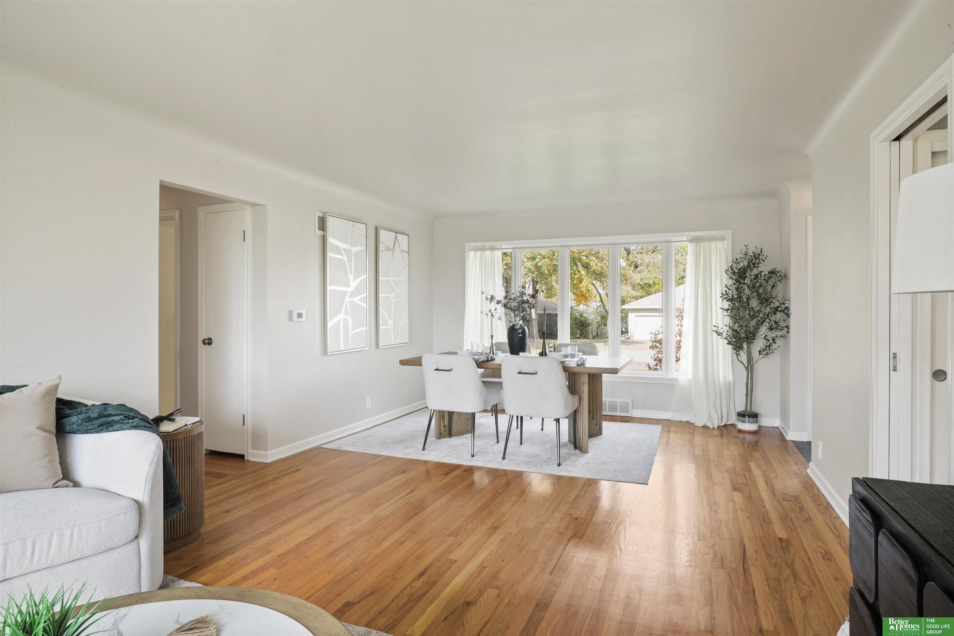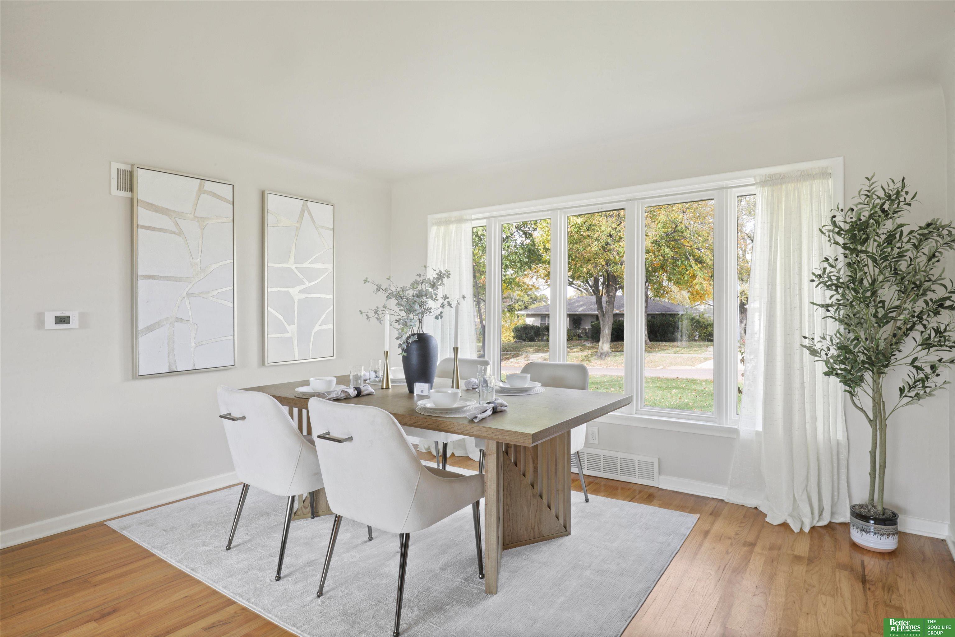 PRE-INSPECTED! Ranch home in Papillion at a hard-to-find price! This home features 1950s charm as you enter, greeted by beautiful hardwood flooring and tons of natural light. Main level offers two dining spaces, perfect for entertaining, or use the 2nd dining space as an extra sitting area instead! Home features 3 spacious bedrooms, all with ceiling fans. In the kitchen, you'll find a pantry closet and newer 5-burner gas range. Rest-easy with important upgrades done for you, including newer vinyl windows, newer Class 3 Impact-Resistant roof (transferable warranty), newer water heater, BRAND NEW furnace and AC with UV light filtration and humidifier, and upgraded attic insulation for lower utility bills. This home has been truly maintained and updated in all the right ways. Don't miss the extra concrete parking pad! Backyard is a fully-fenced oversized, flat yard. Beautiful landscaping surrounds home with oversized covered back patio. Washer/dryer stay.