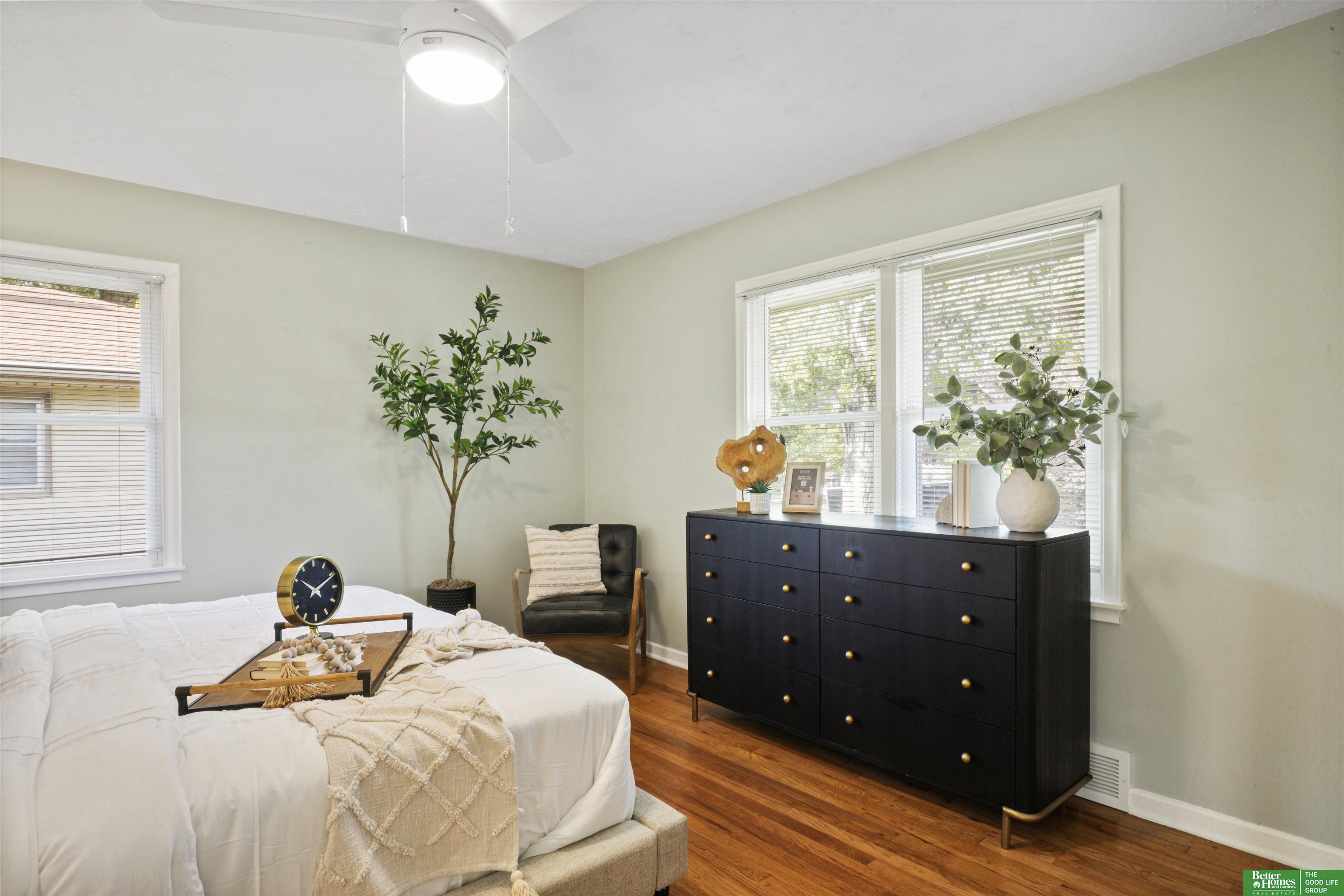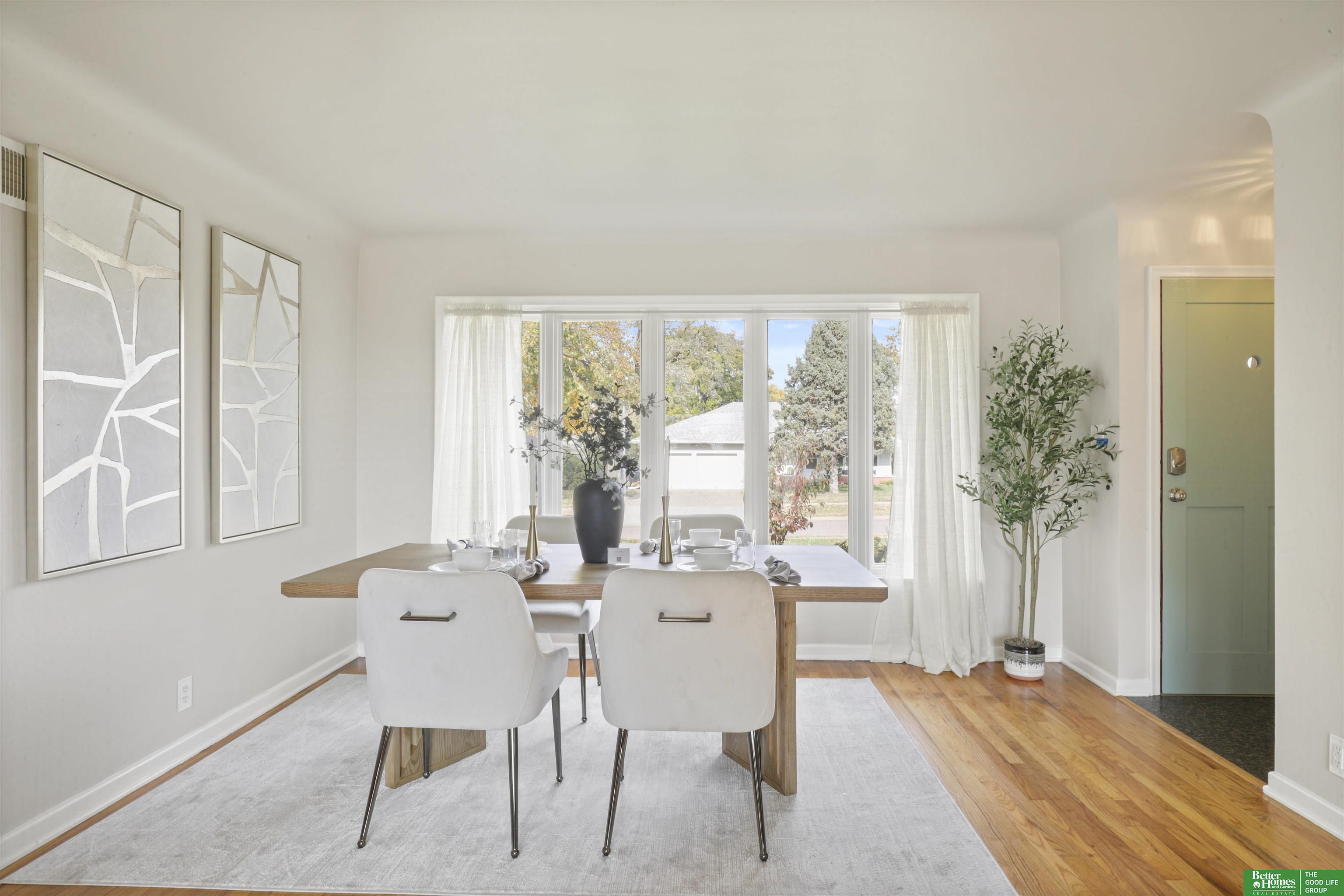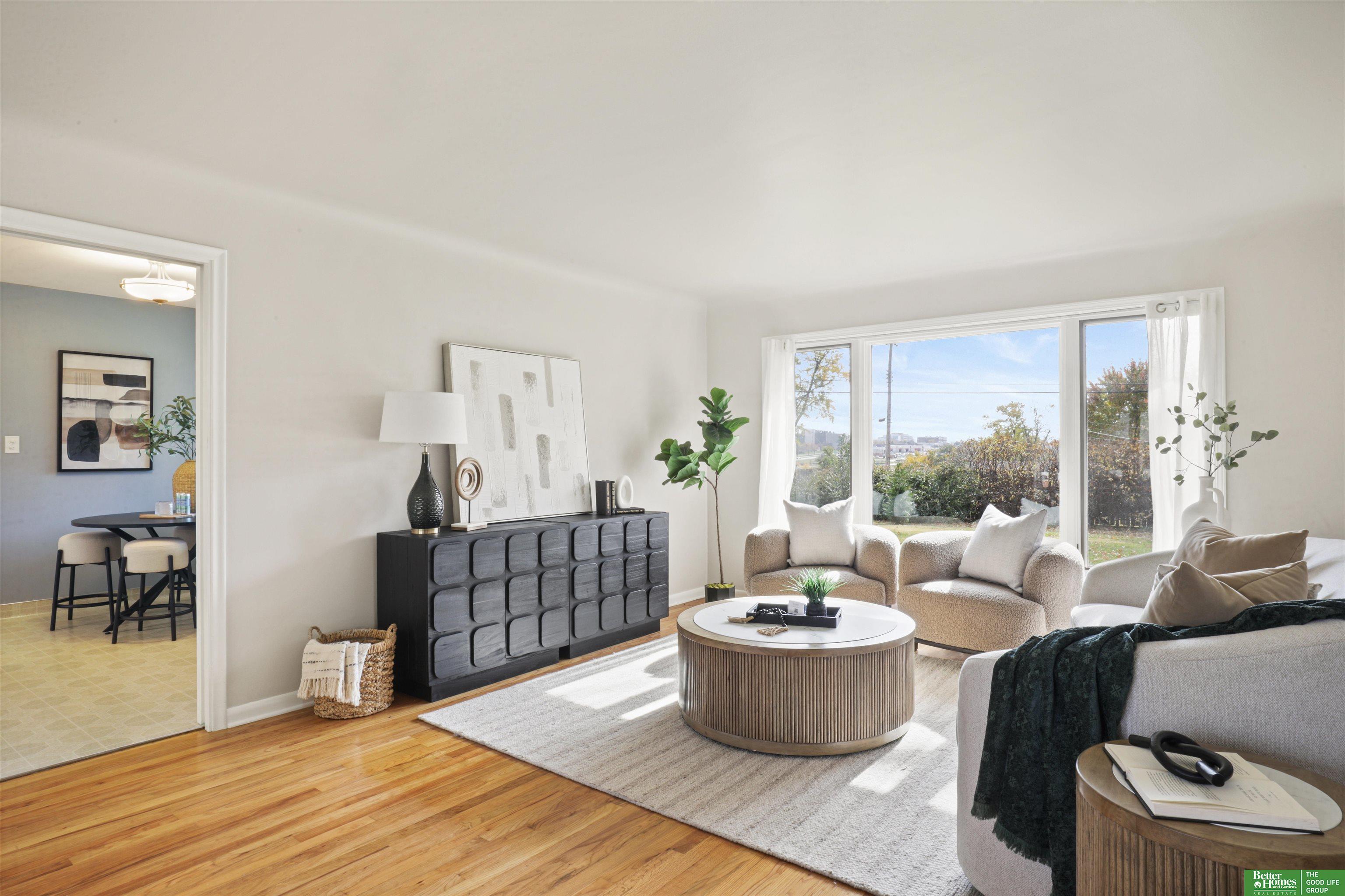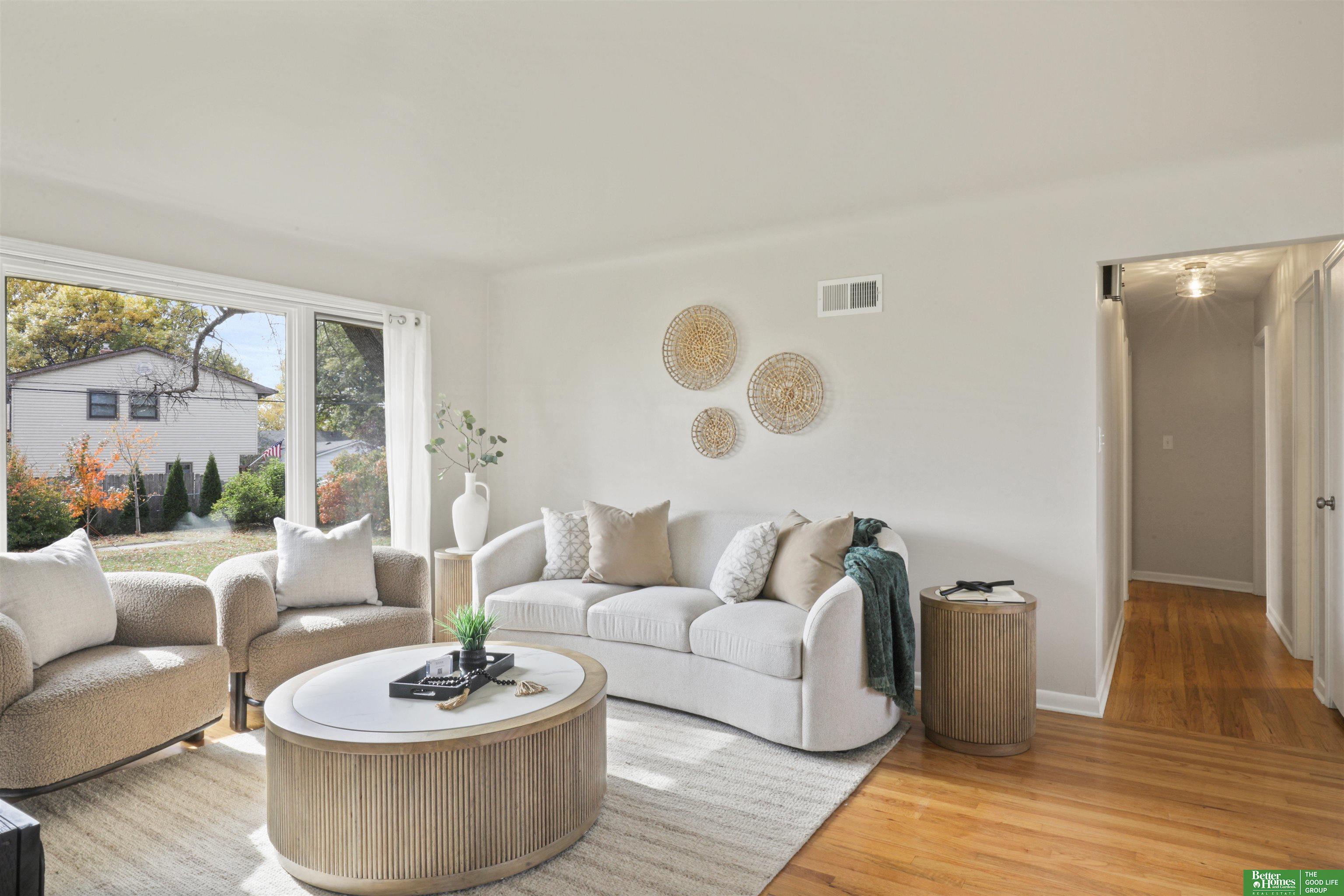 PRE-INSPECTED! Ranch home in Papillion at a hard-to-find price! This home features 1950s charm as you enter, greeted by beautiful hardwood flooring and tons of natural light. Main level offers two dining spaces, perfect for entertaining, or use the 2nd dining space as an extra sitting area instead! Home features 3 spacious bedrooms, all with ceiling fans. In the kitchen, you'll find a pantry closet and newer 5-burner gas range. Rest-easy with important upgrades done for you, including newer vinyl windows, newer Class 3 Impact-Resistant roof (transferable warranty), newer water heater, BRAND NEW furnace and AC with UV light filtration and humidifier, and upgraded attic insulation for lower utility bills. This home has been truly maintained and updated in all the right ways. Don't miss the extra concrete parking pad! Backyard is a fully-fenced oversized, flat yard. Beautiful landscaping surrounds home with oversized covered back patio. Washer/dryer stay.