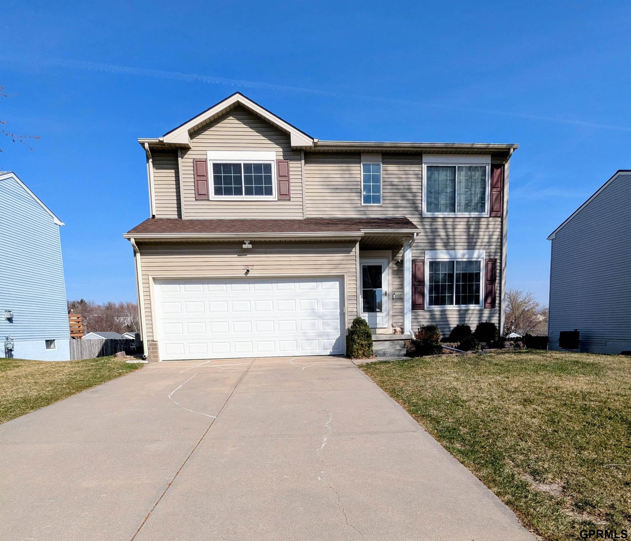Showings start 3/21/26. This well-maintained two-story home is located in an established Bellevue neighborhood with easy access to Highway 75 and Offutt AFB. The main floor features a bright living room with a cozy fireplace, a dining area that opens to a deck, and a nicely appointed kitchen with a large pantry and a powder room. The oversized laundry closet includes stacked full-size units and organized storage. The second floor houses all four bedrooms, including a master suite with a walk-in closet and an updated spa-like shower. One bedroom features a built-in bunk bed, and all guest rooms include closet organizers. A full bathroom and linen closet complete this level. The walk-out basement provides additional living and entertaining space with new LVP flooring, leading to a patio, fire pit, and tiered backyard. All measurements m/l. Schedule your appointment today!