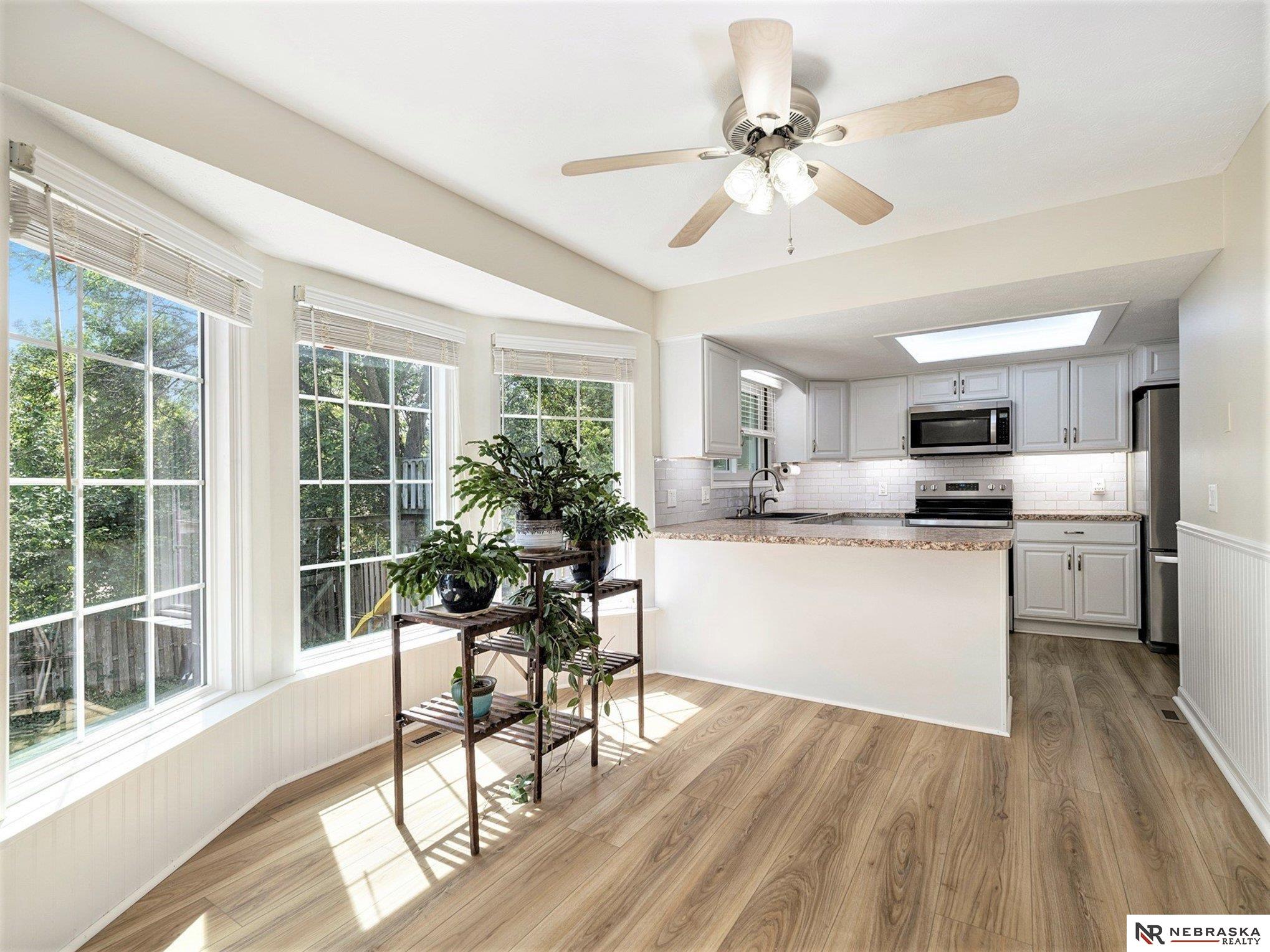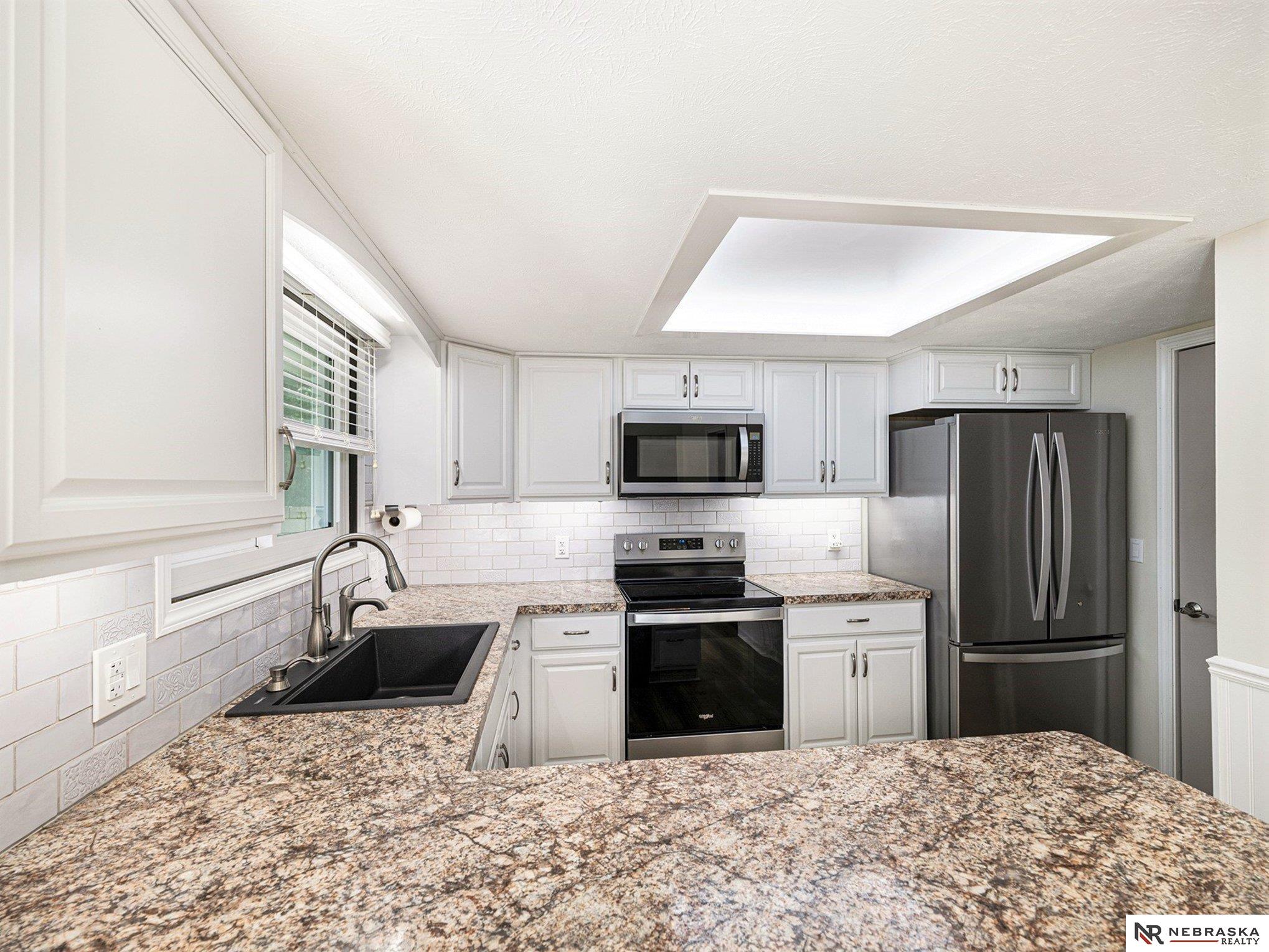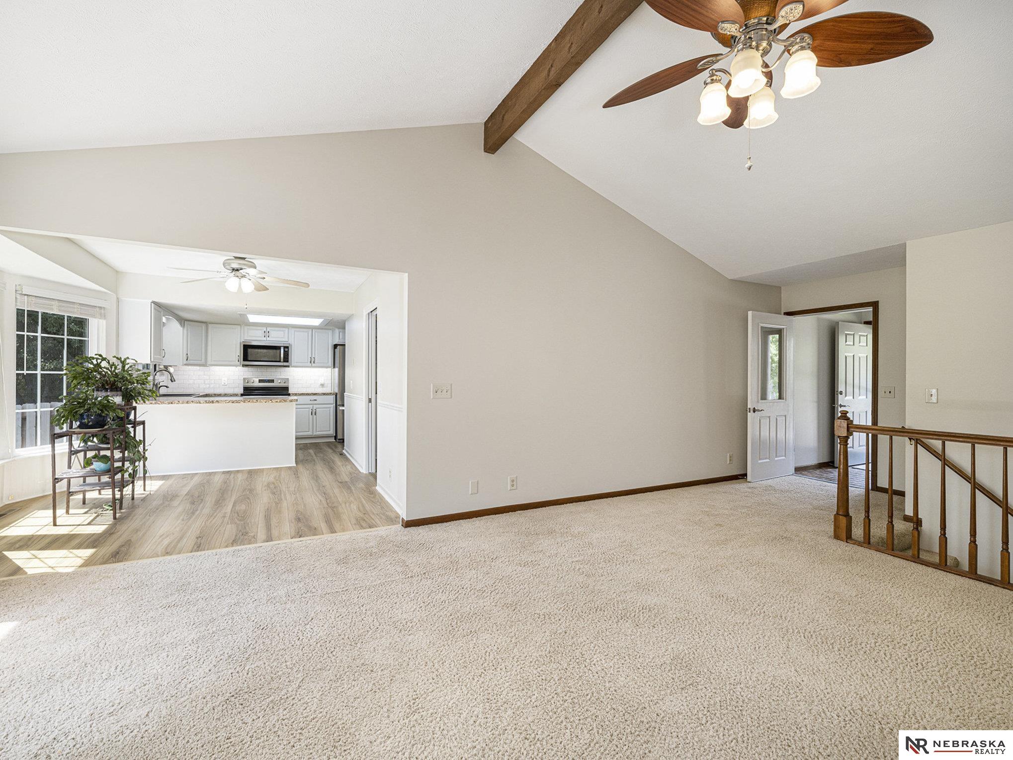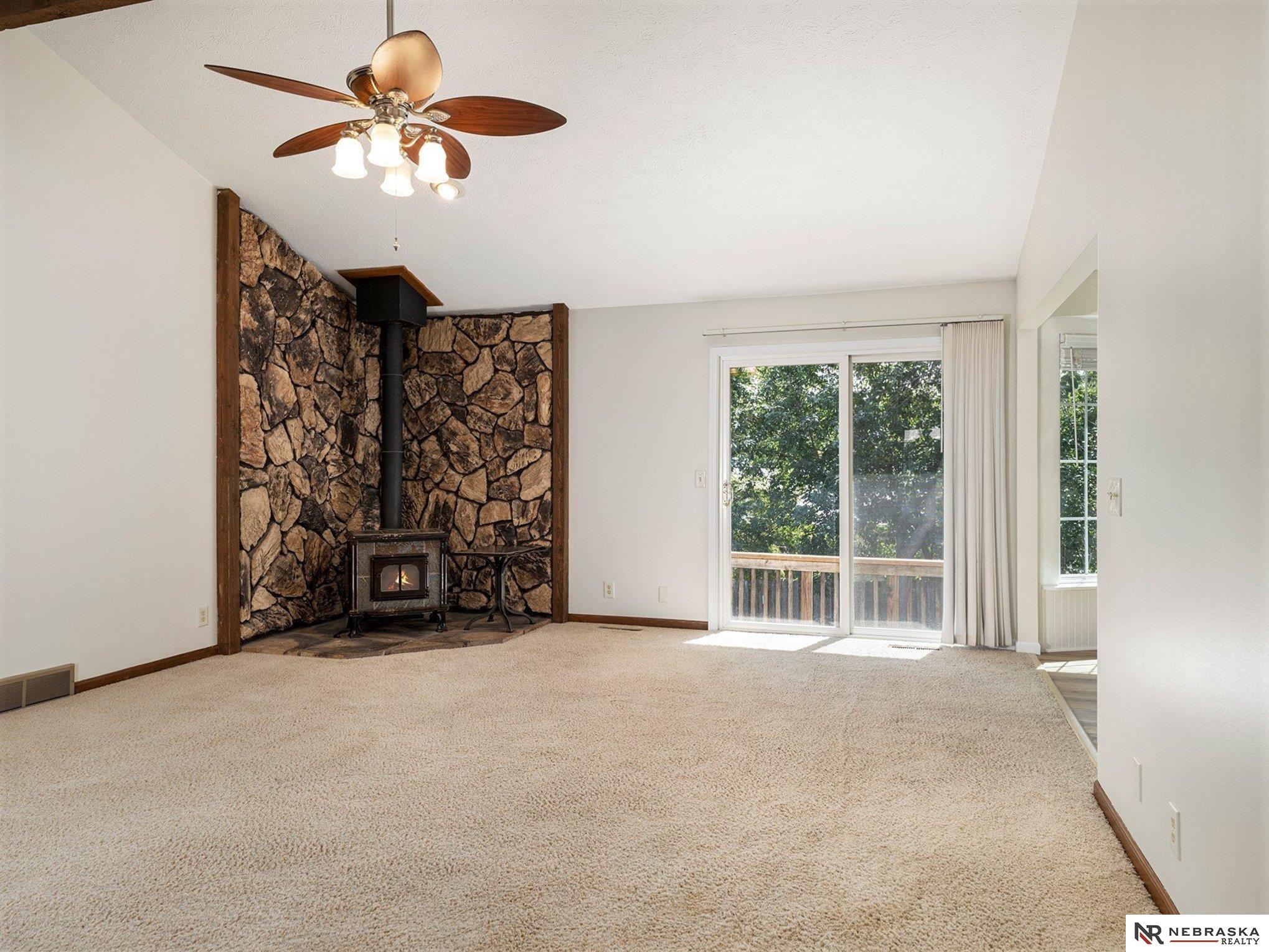 OPEN SAT 1-2:30. PRE-INSPECTED and move-in ready! Freshly painted inside and out with a one-year-old roof, this inviting ranch is ready to welcome you home. Step into the vaulted, beamed great room where sunlight pours in and a cozy wood-burning stove sets the mood. The open kitchen, beautifully updated in 2022, shines with stainless appliances, under-cabinet lighting, and plenty of space to cook and gather. Main floor laundry adds convenience, while triple-pane windows and a new split-view storm door keep things quiet and efficient. Downstairs, you’ll find a flexible space with a 4th non-conforming bedroom, ¾ bath, workshop, tons of storage, and a handy mini kitchenette—perfect for guests or hobbies. Tucked on a quiet street near parks, trails, schools, and Offutt AFB, this lovingly maintained home is both spotless and full of potential. Come see it—you’ll feel right at home!
