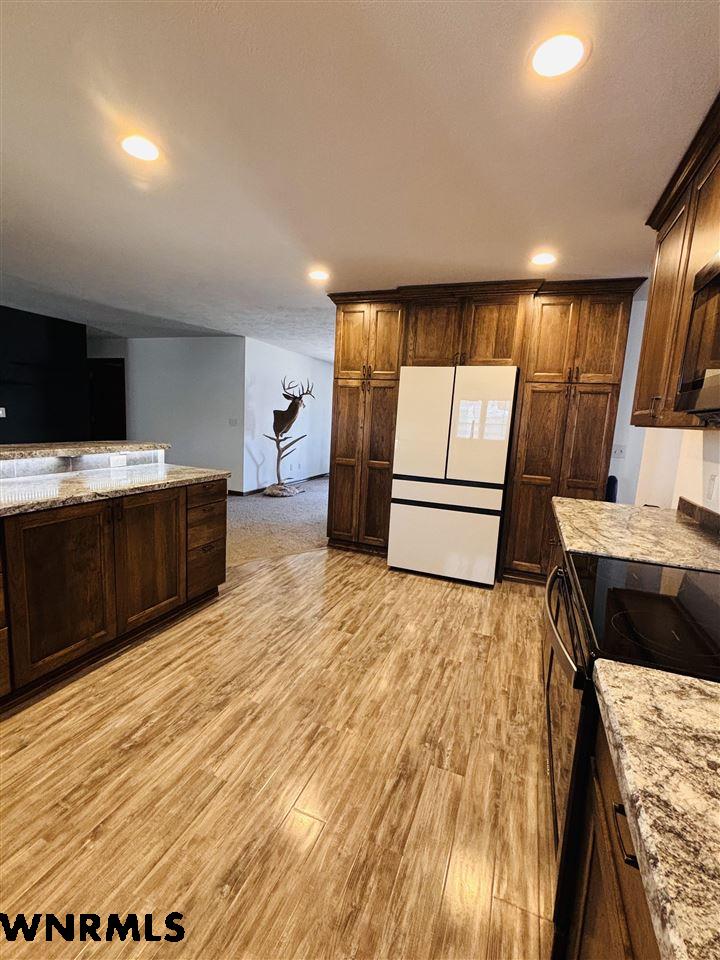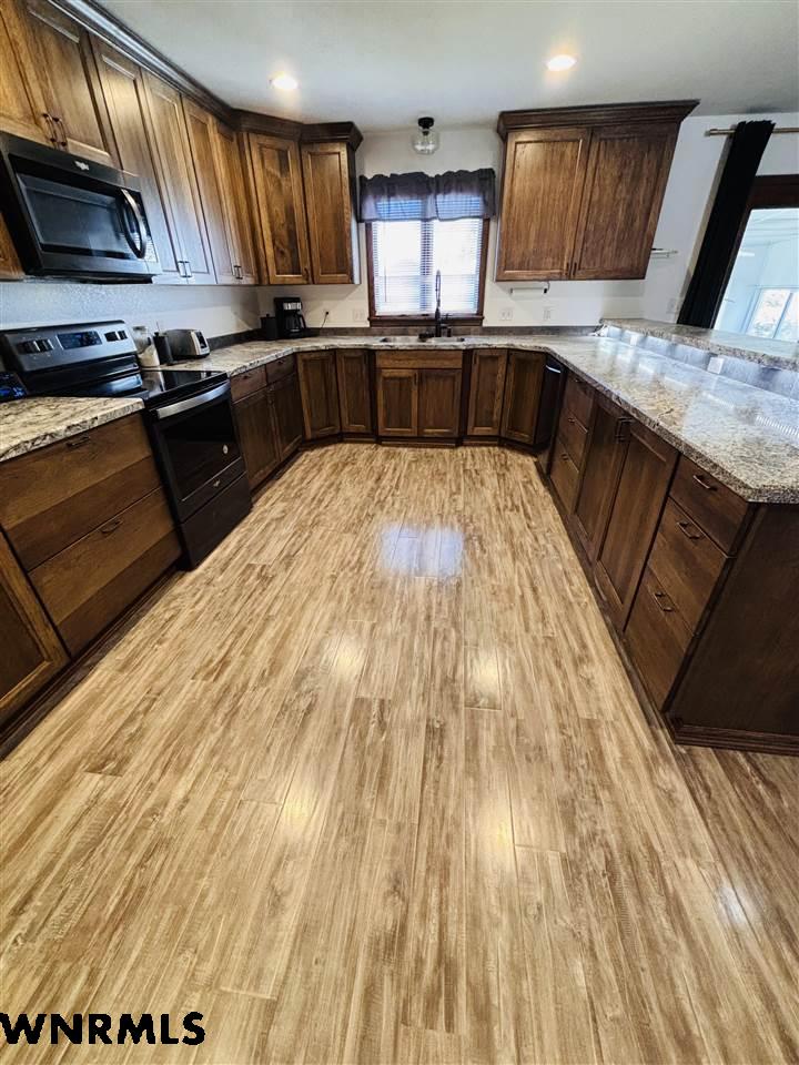 This stunning 6 bedroom, 3 bathroom ranch style home located in Dalton, Nebraska sprawls with over 2100 square feet on both the main floor and the basement. The open floor plan of the main floor features a large dining room with electric fireplace, open to the updated kitchen with newer appliances and cabinets with soft close drawers. 3 bedrooms on the main floor, complete with one being a master suite with spa-like attached bath and walk in closet. The home has main floor laundry. Walking downstairs, you will find an additional bathroom, an enormous family room and walk in storage area with pantry space for all the canned goods! The home includes a sunroom, complete with a fully functioning hot tub. Stepping outside, the yard is fenced with a wood fence and has a 24x36 detached stop with attached carport, plus a 770 sq ft attached garage to the house for all the toys! Do not miss out on this spacious, beautiful home!! Call for more information.