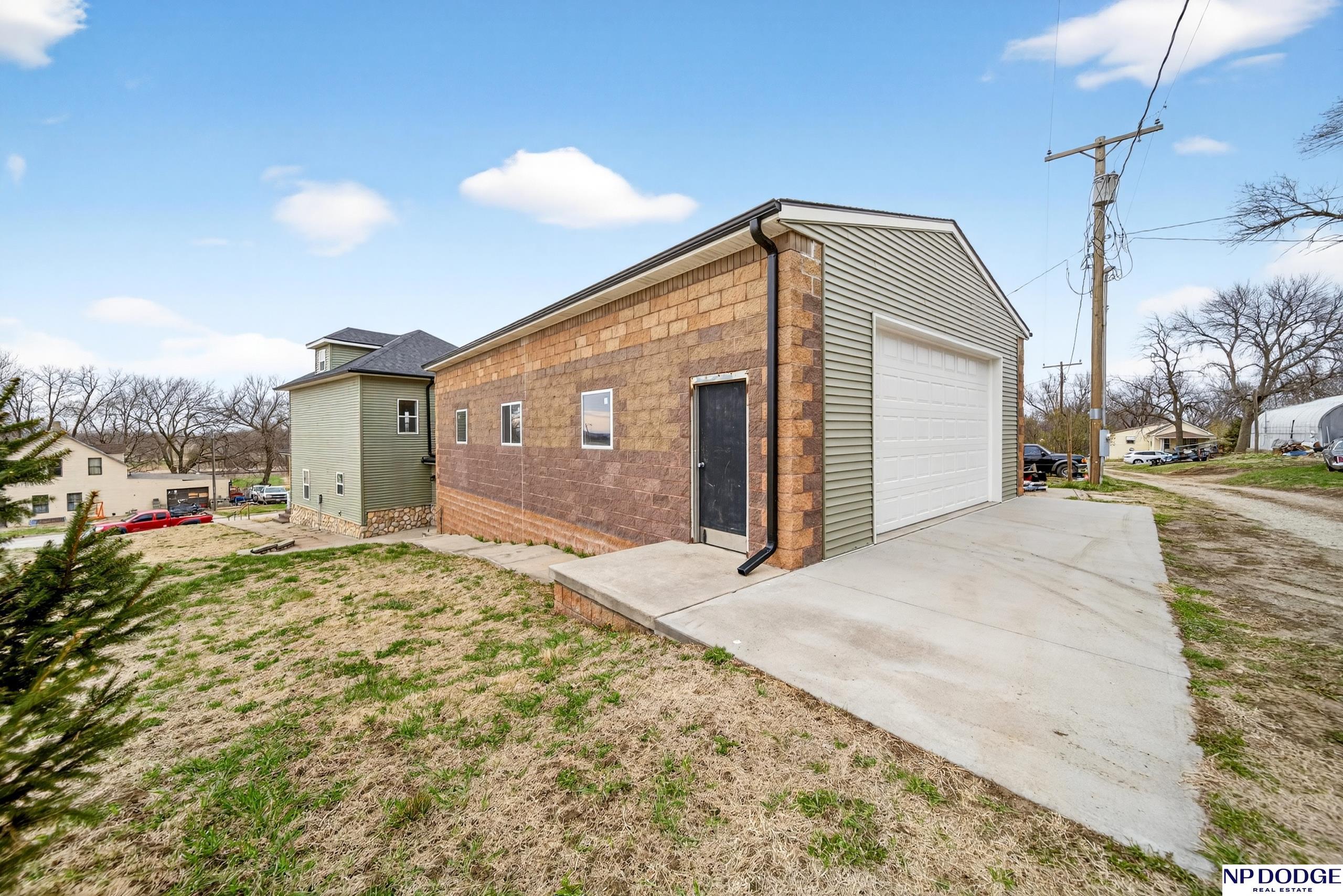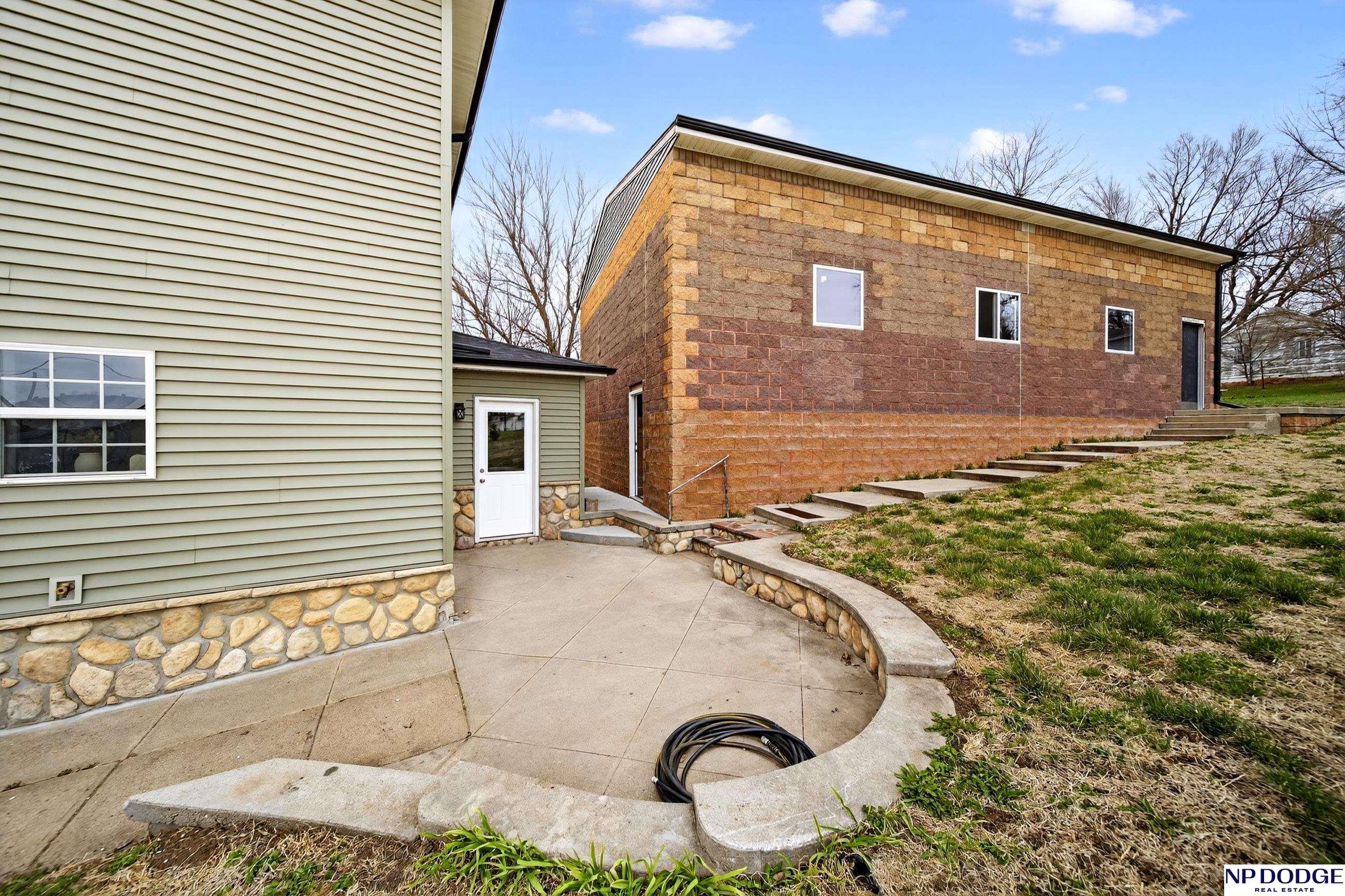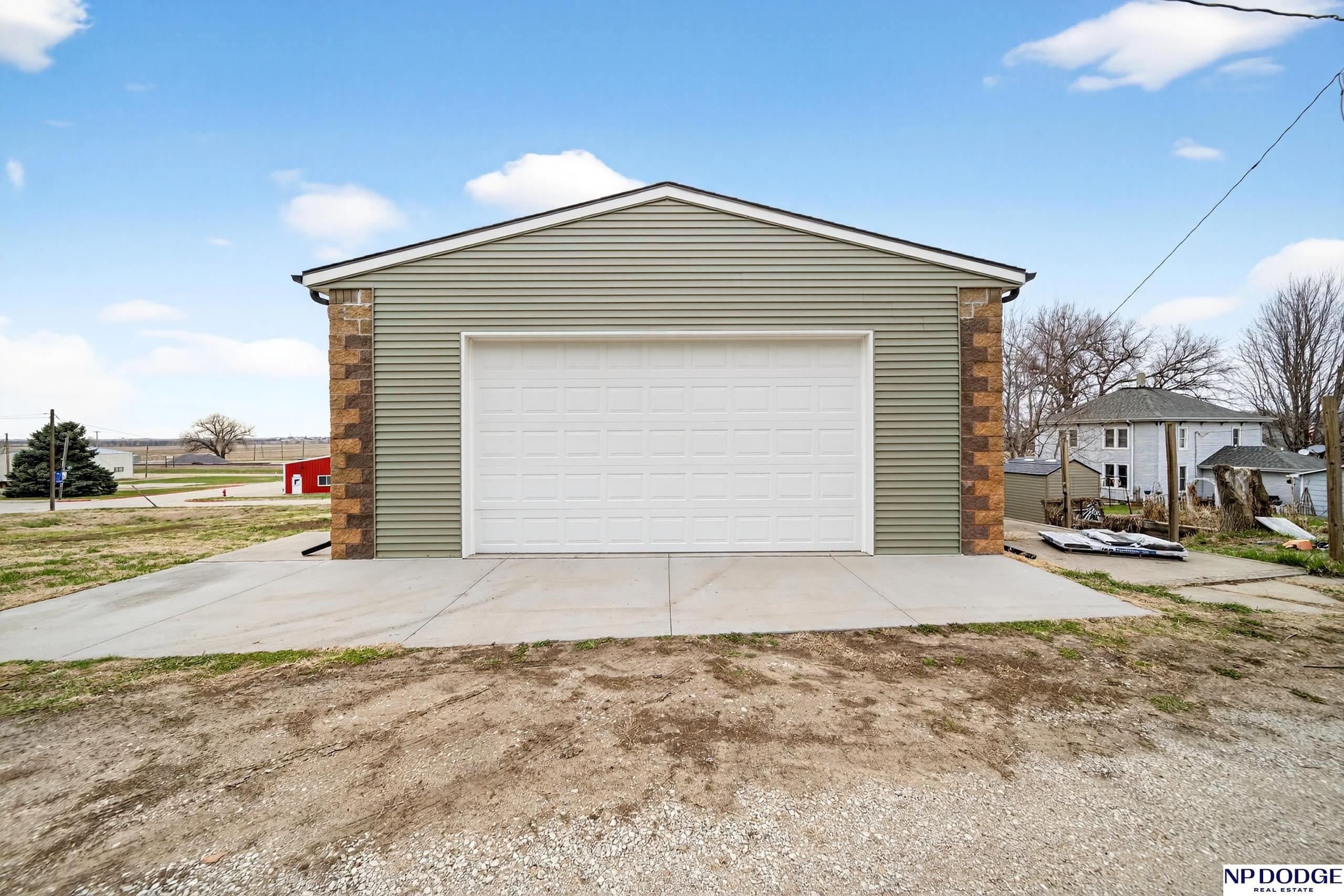 Perched atop a hill near downtown Uehling, this fully remodeled 1907 2-story with beautiful with modern updates. Taken down to the studs, the home features new plumbing, insulation, drywall, and main floor electrical. The main level offers brand new LVP flooring, updated trim, a completely new kitchen with space for an island, main floor laundry, and a flexible dining/office area. The main floor bath includes a one-piece shower unit. Upstairs you’ll find spacious bedrooms, new carpet, and a large full bath. Exterior improvements include vinyl siding with brick veneer, newer house wrap/insulation & vinyl windows plus a newer roof, gutters and fascia. Enjoy the front porch and poured patio, plus a massive detached block garage with concrete floor, electrical access, and alley entry. Move-in ready with major updates already done.
