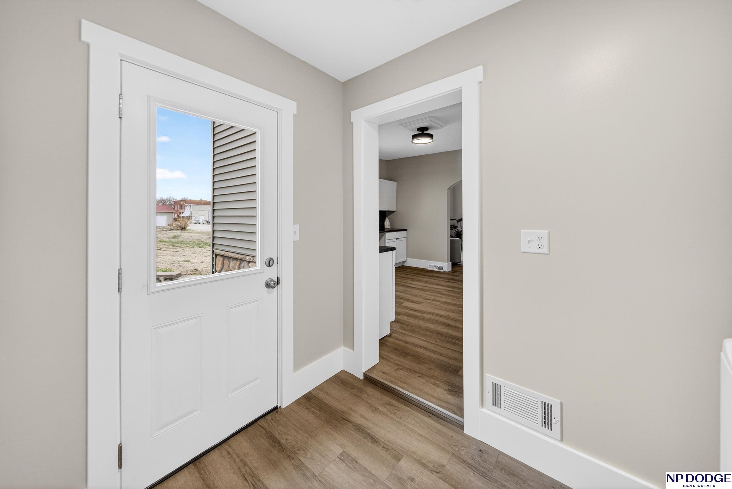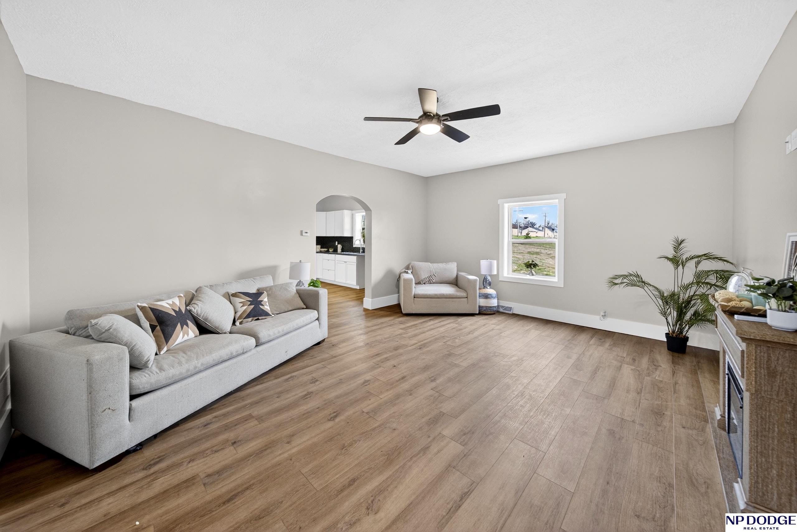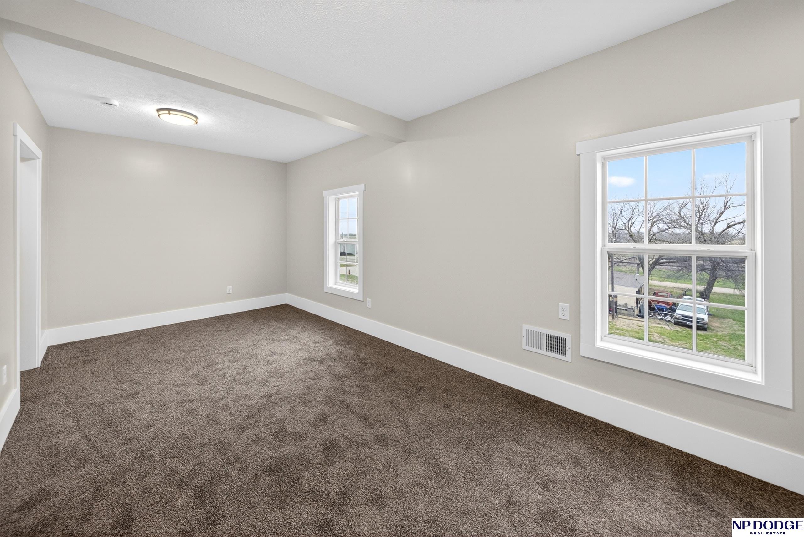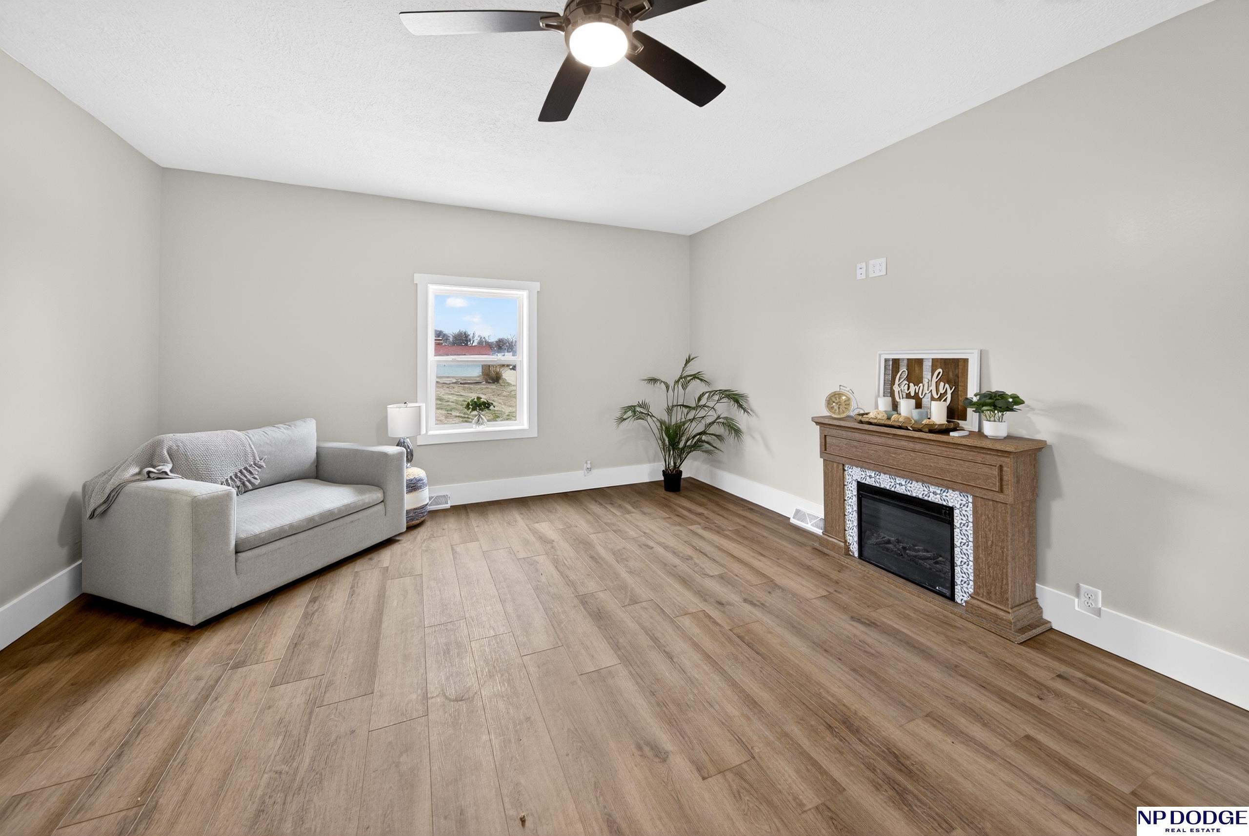 Perched atop a hill near downtown Uehling, this fully remodeled 1907 2-story with beautiful with modern updates. Taken down to the studs, the home features new plumbing, insulation, drywall, and main floor electrical. The main level offers brand new LVP flooring, updated trim, a completely new kitchen with space for an island, main floor laundry, and a flexible dining/office area. The main floor bath includes a one-piece shower unit. Upstairs you’ll find spacious bedrooms, new carpet, and a large full bath. Exterior improvements include vinyl siding with brick veneer, newer house wrap/insulation & vinyl windows plus a newer roof, gutters and fascia. Enjoy the front porch and poured patio, plus a massive detached block garage with concrete floor, electrical access, and alley entry. Move-in ready with major updates already done.