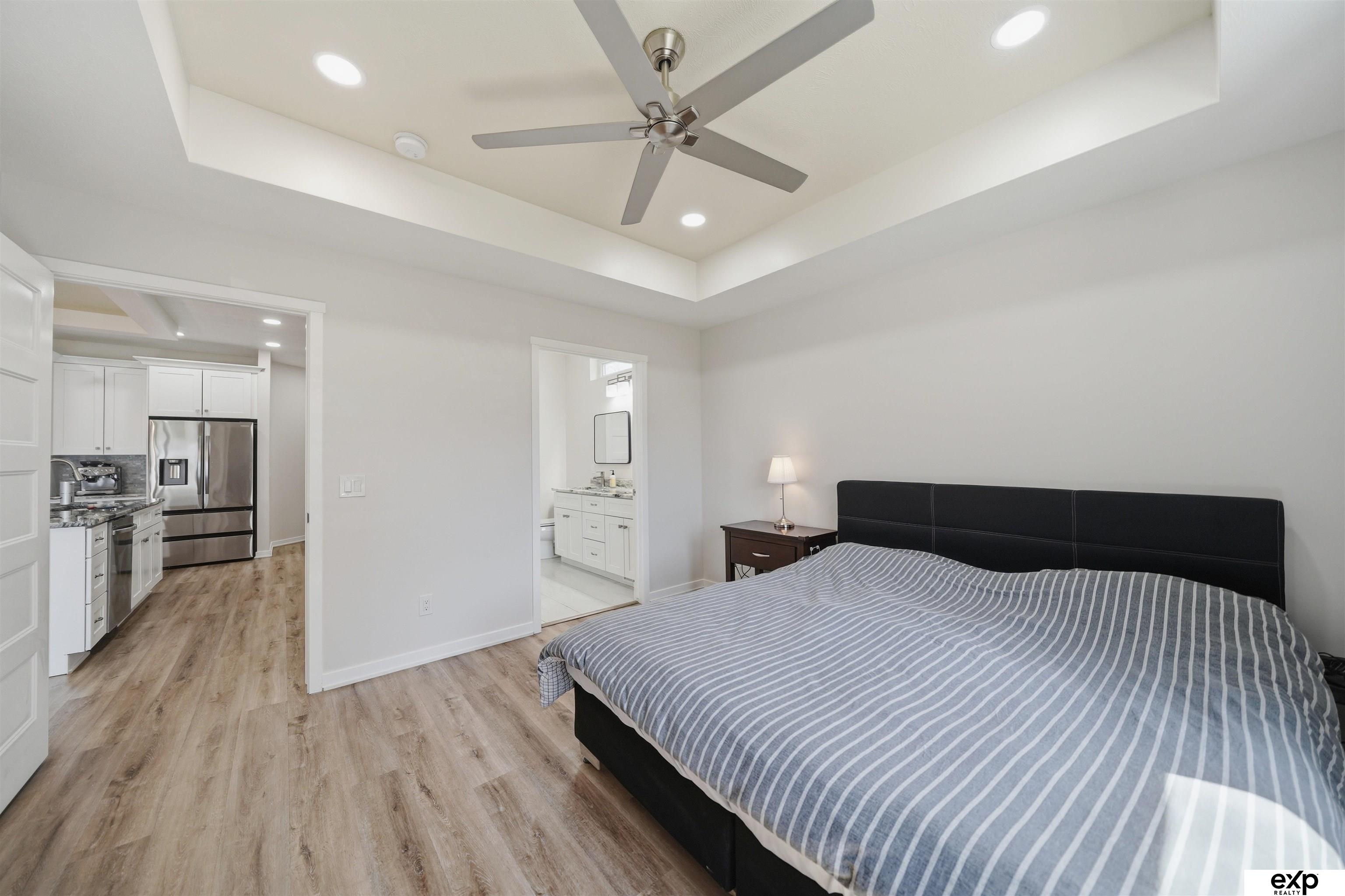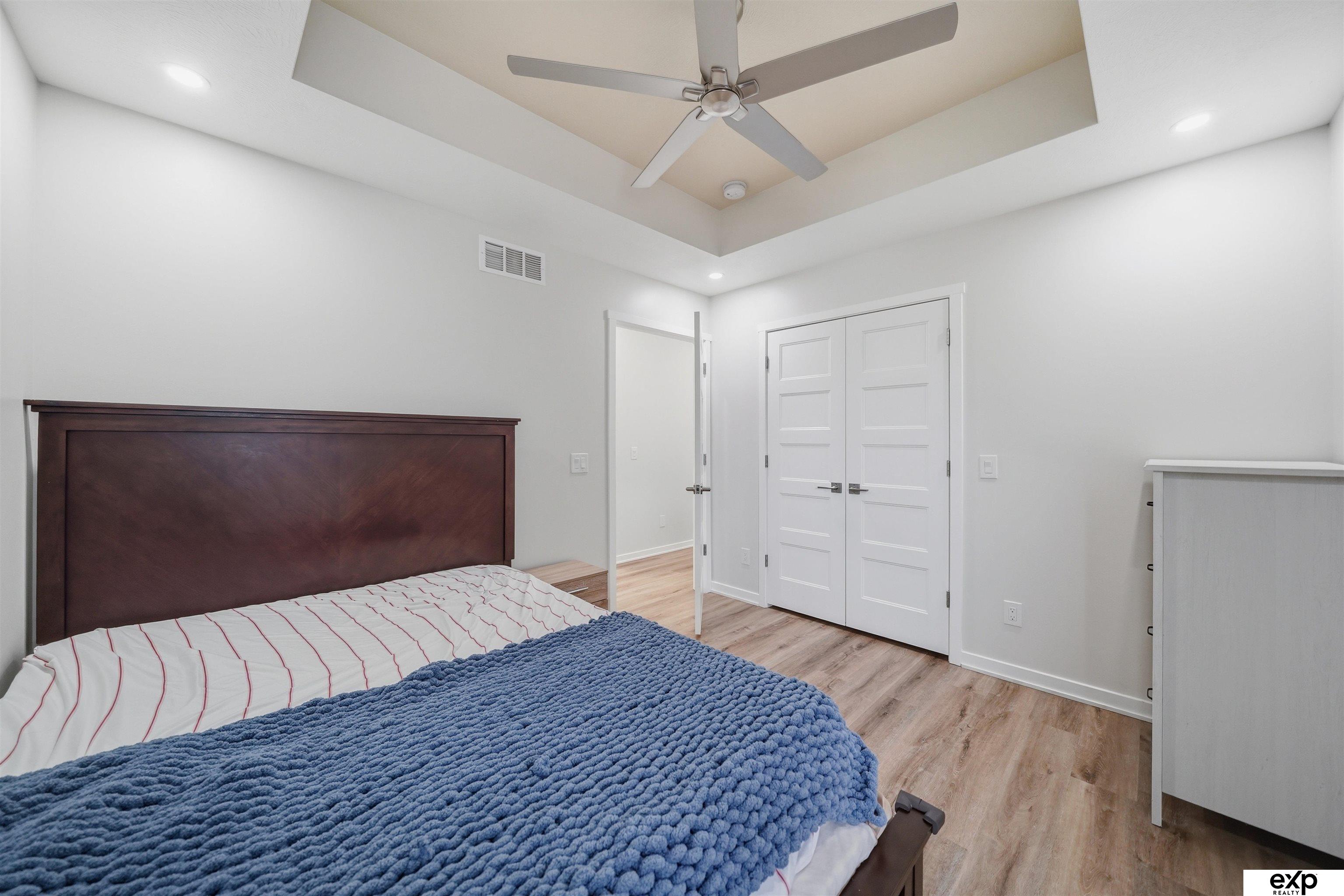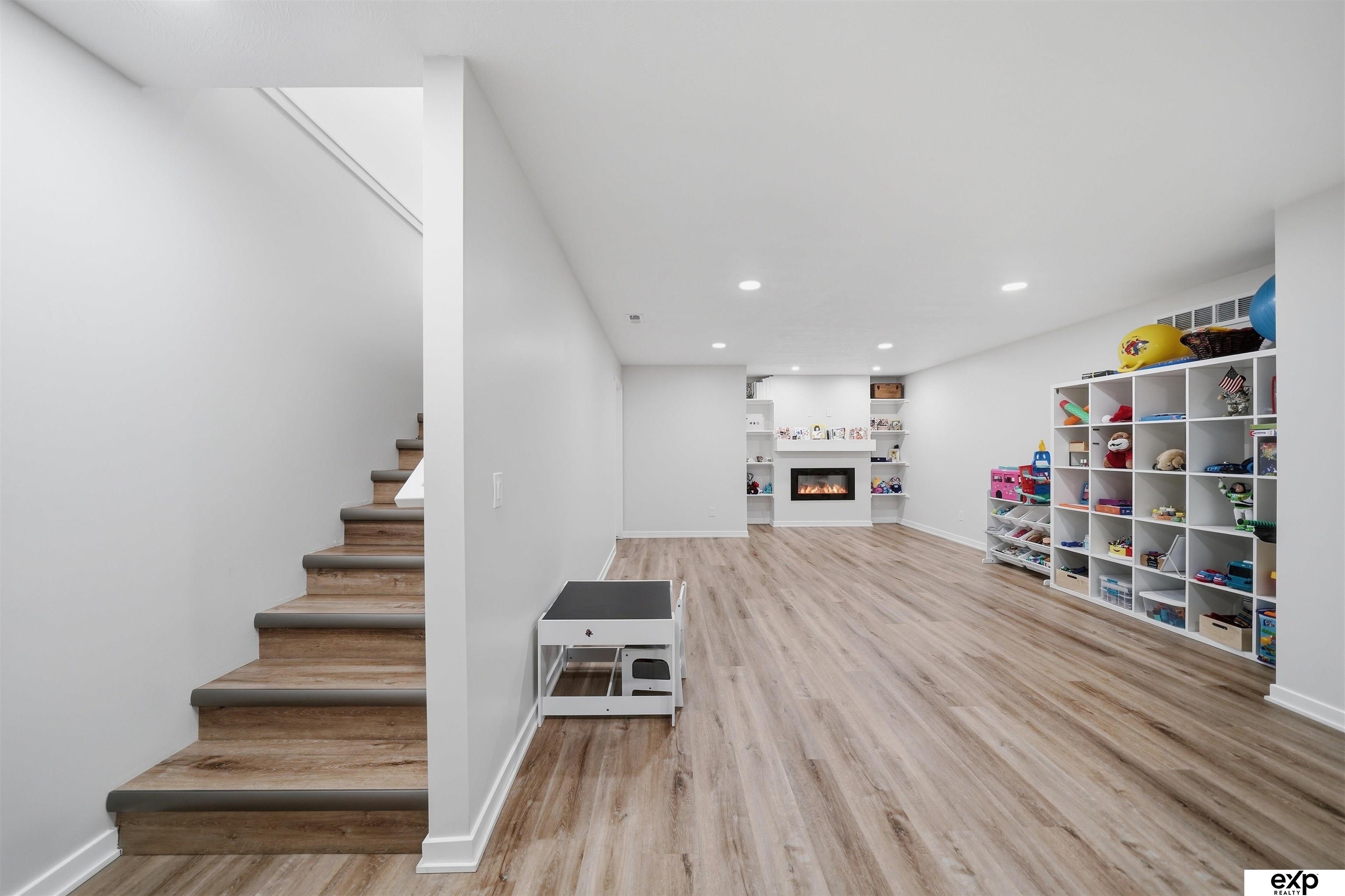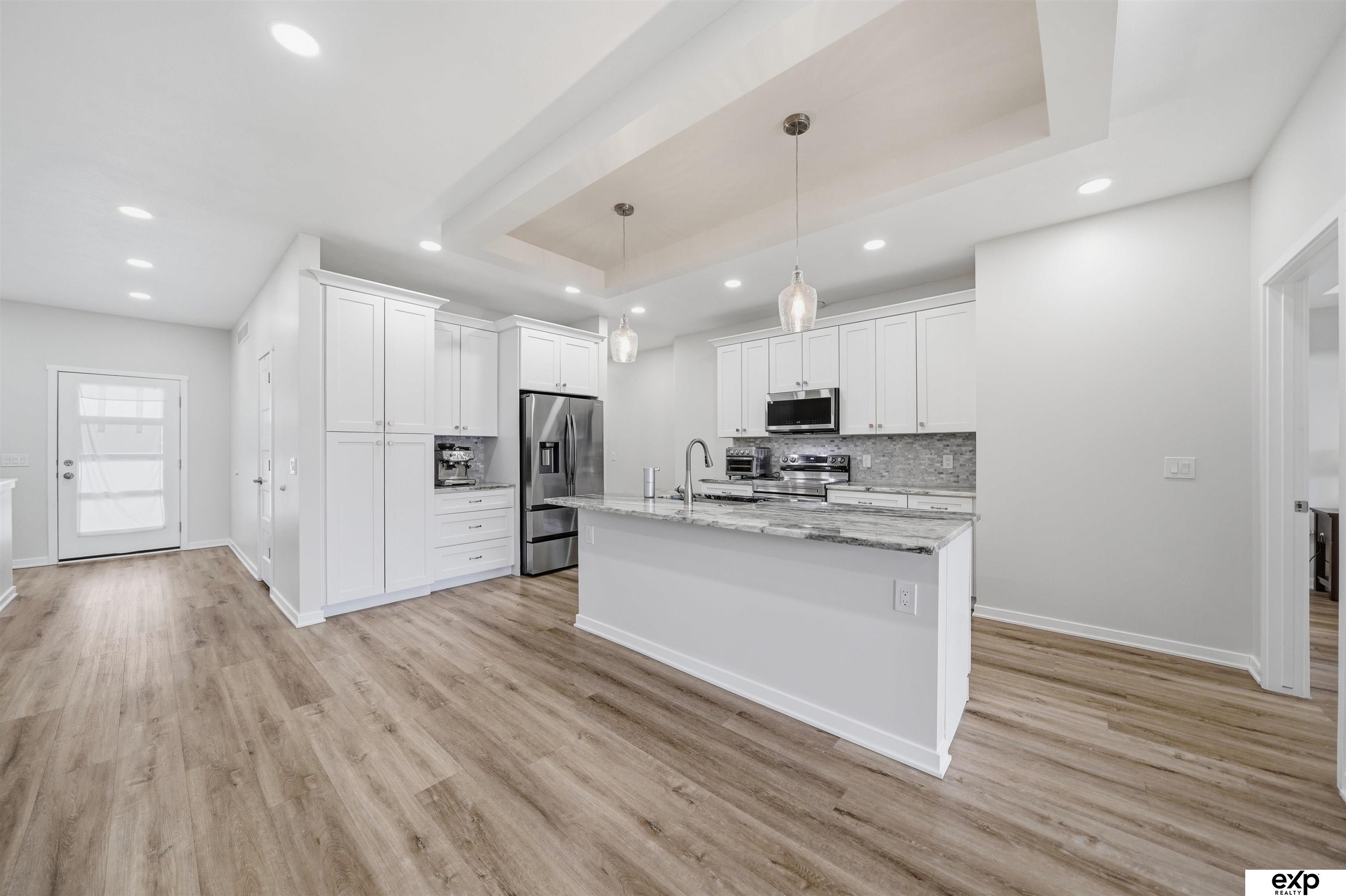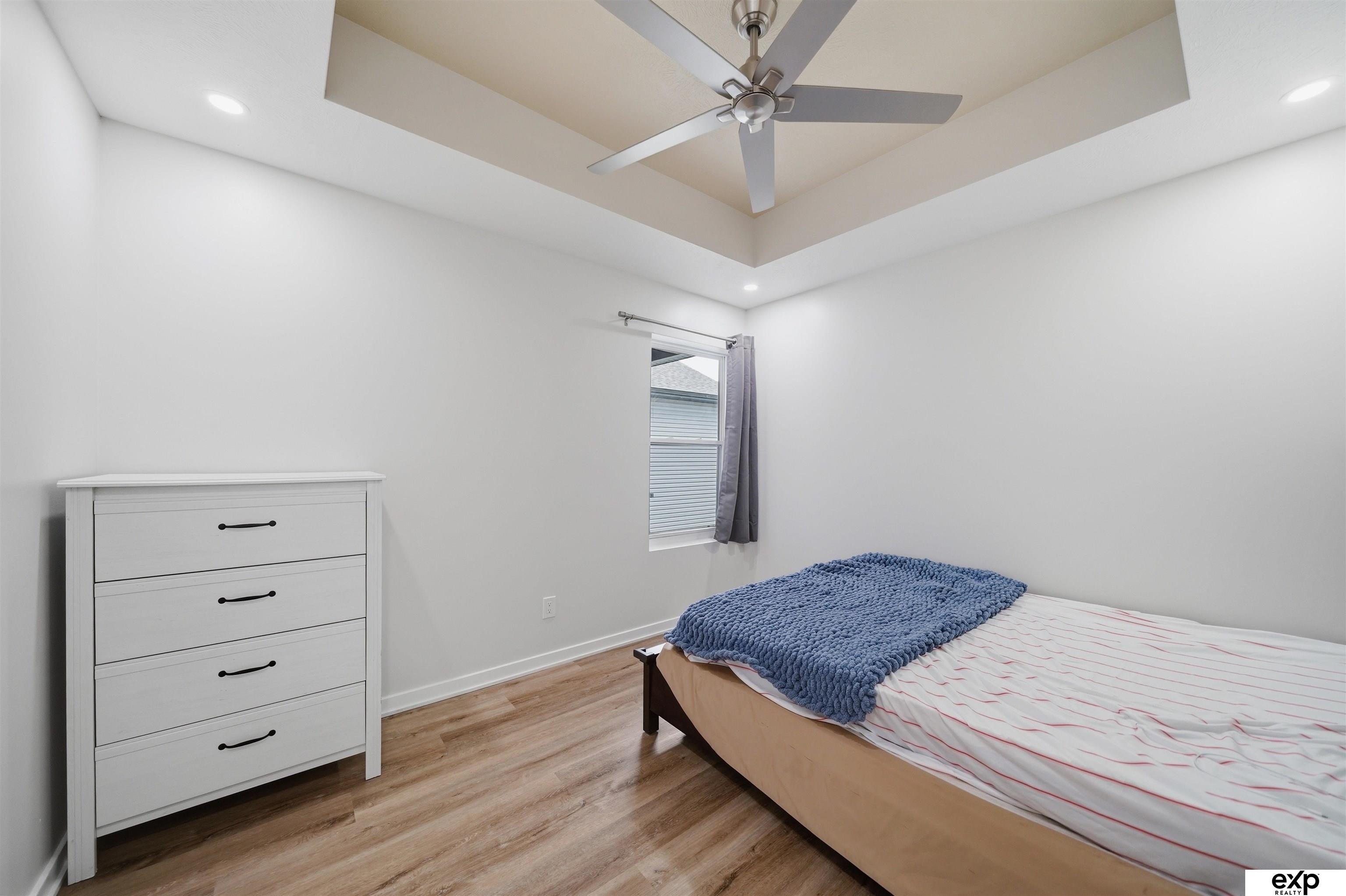 Spacious 4 bedroom, 3 bath, 2-stall, open concept newer home, beamed vaulted ceiling, quartz countertops, coffered ceiling, main floor laundry, primary suite and 2nd bedroom. Downstairs are 2 more large bedrooms with egress windows and a large family room, fireplace, and storage area. All the new systems in this 2023 built home, like passive radon, new HVAC, new appliances, new everything. Privacy fenced yard and mature trees in a developed area, which means no new construction noise, no going around truck traffic, and no dodging debris in the street. No HOA. Very accessible near I-80 and downtown, street scene is a quiet location with no through traffic, home is by a cul-de-sac & dead-end which overlooks greenspace and park area (homeowners love this hill for sledding as well as the friendly community surrounding their home). Large windows, lightly colored interior, covered entrance and covered patio. Appt required to show.