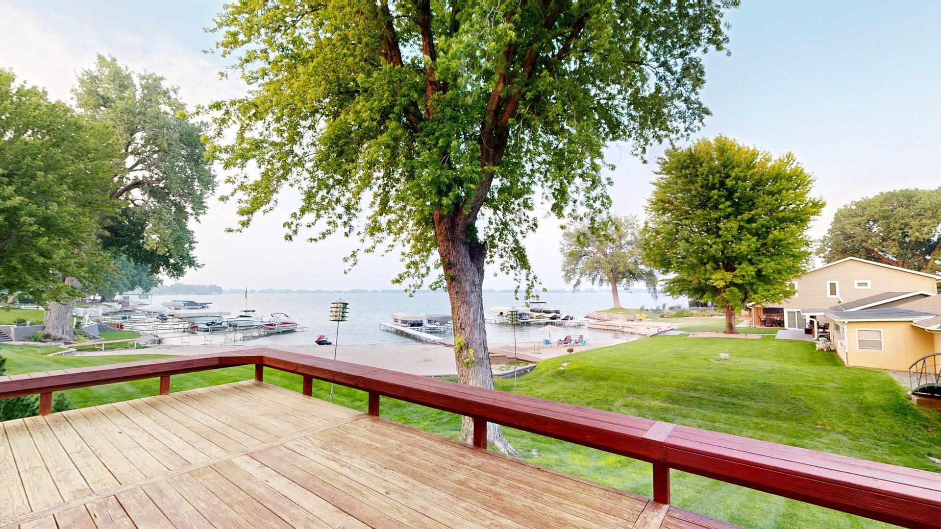 Exceptional Waterfront Living at 33 Mallard Cove Dr19A, Johnson Lake Welcome to your dream retreat on Johnson Lake. This one-of-a-kind property offers more than 8,000 square feet of thoughtfully designed living space, high-end amenities, and an exceptional lakefront setting—designed for entertaining, relaxing, and making the most of every season. Inside, enjoy an open layout with a chef’s kitchen, spacious living and dining areas, and an entertainment room with hot tub, sauna, and private bath. The main level also features a sunroom, guest bedroom, full bath, laundry/office combo, and a mudroom with dog wash and access to a storm shelter. Upstairs, find three additional bedrooms, two baths, and a sunroom with deck. The lower level offers a cozy living area, bath, and generous storage. Outside, relax on the freshly stained deck or walk down to the zero-entry sand shoreline with shared dock and your own ShoreStation. Two garages, one attached, one detached, complete this exceptional package.